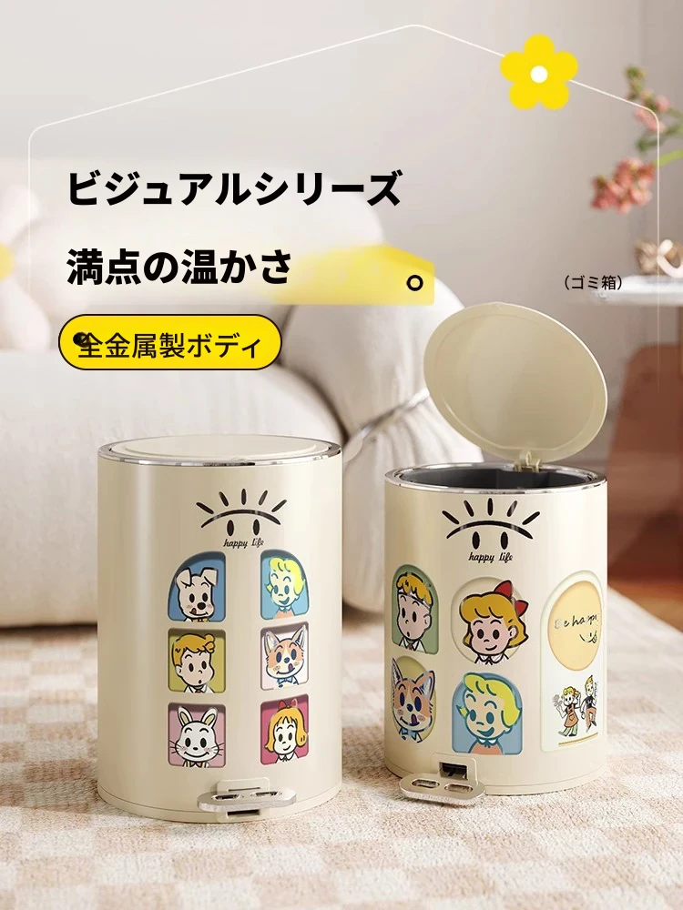 美世达のダイナミックなデザイン!2025年新作・高品質の可愛いカートゥーンゴミ箱。リビングやバスルームにぴったりの大容量・蓋付きで、インテリアにも馴染む魅力的なアイテムです。