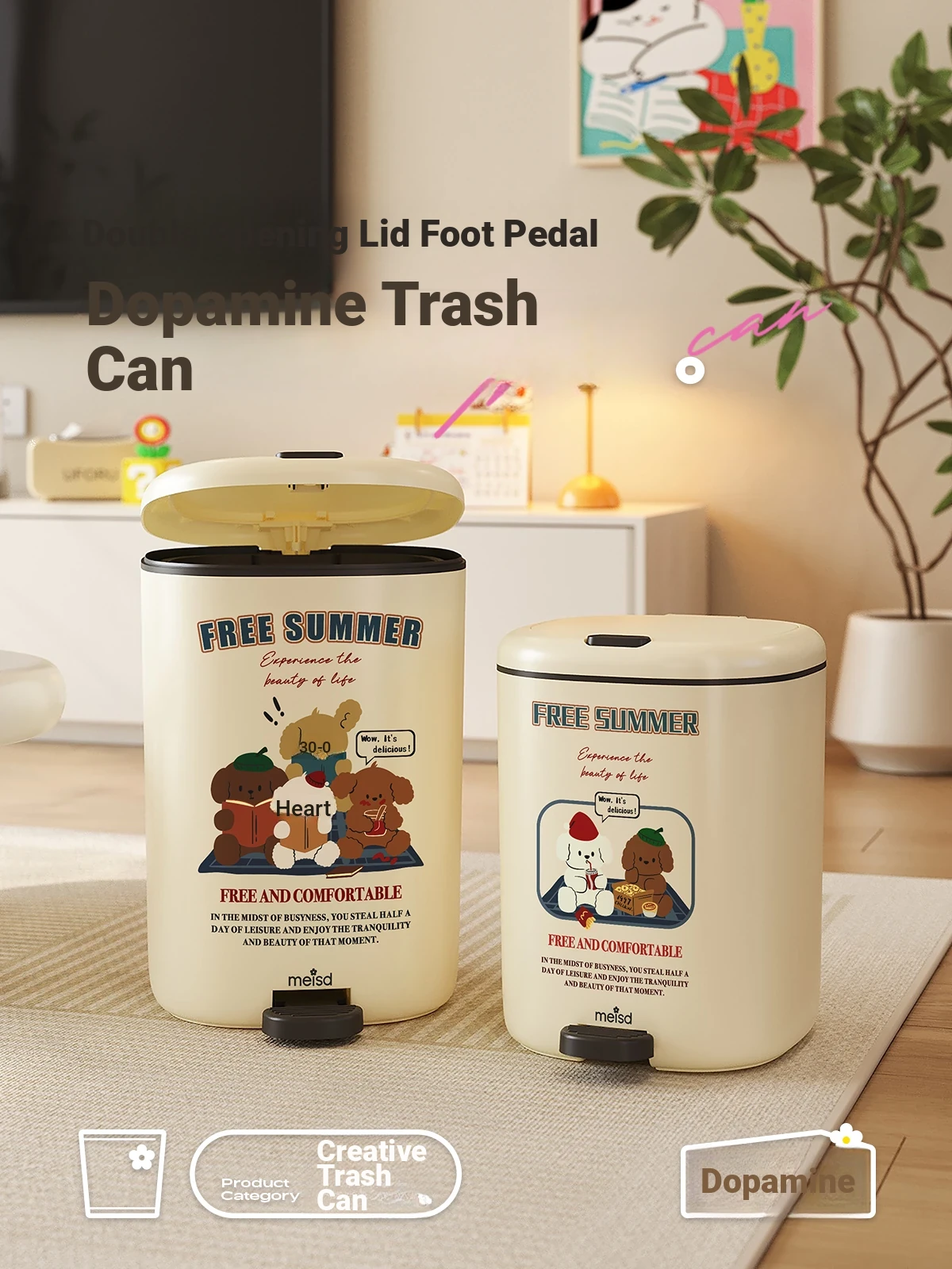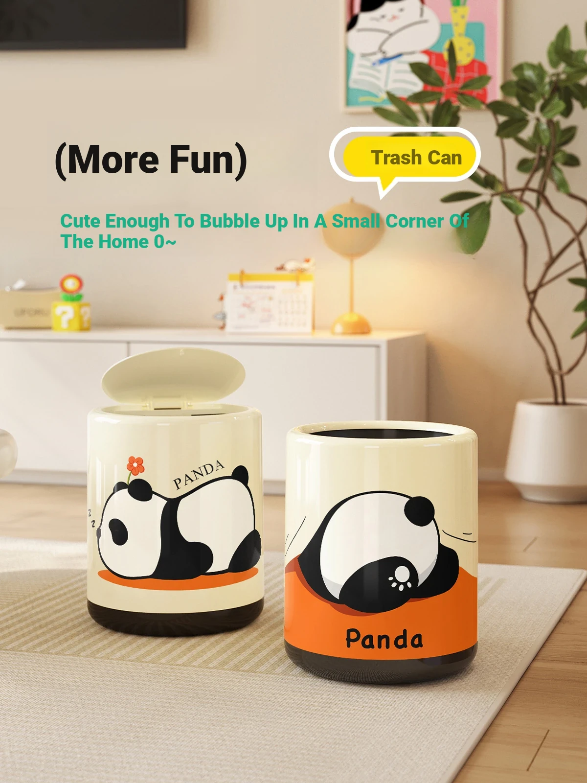 Meisida Stylish Cream Trash Can - 2025 New Design for Home Use, Elegant Panda Style for Living Room, Bedroom, and Bathroom - Perfectly Combines Functionality and Aesthetics!