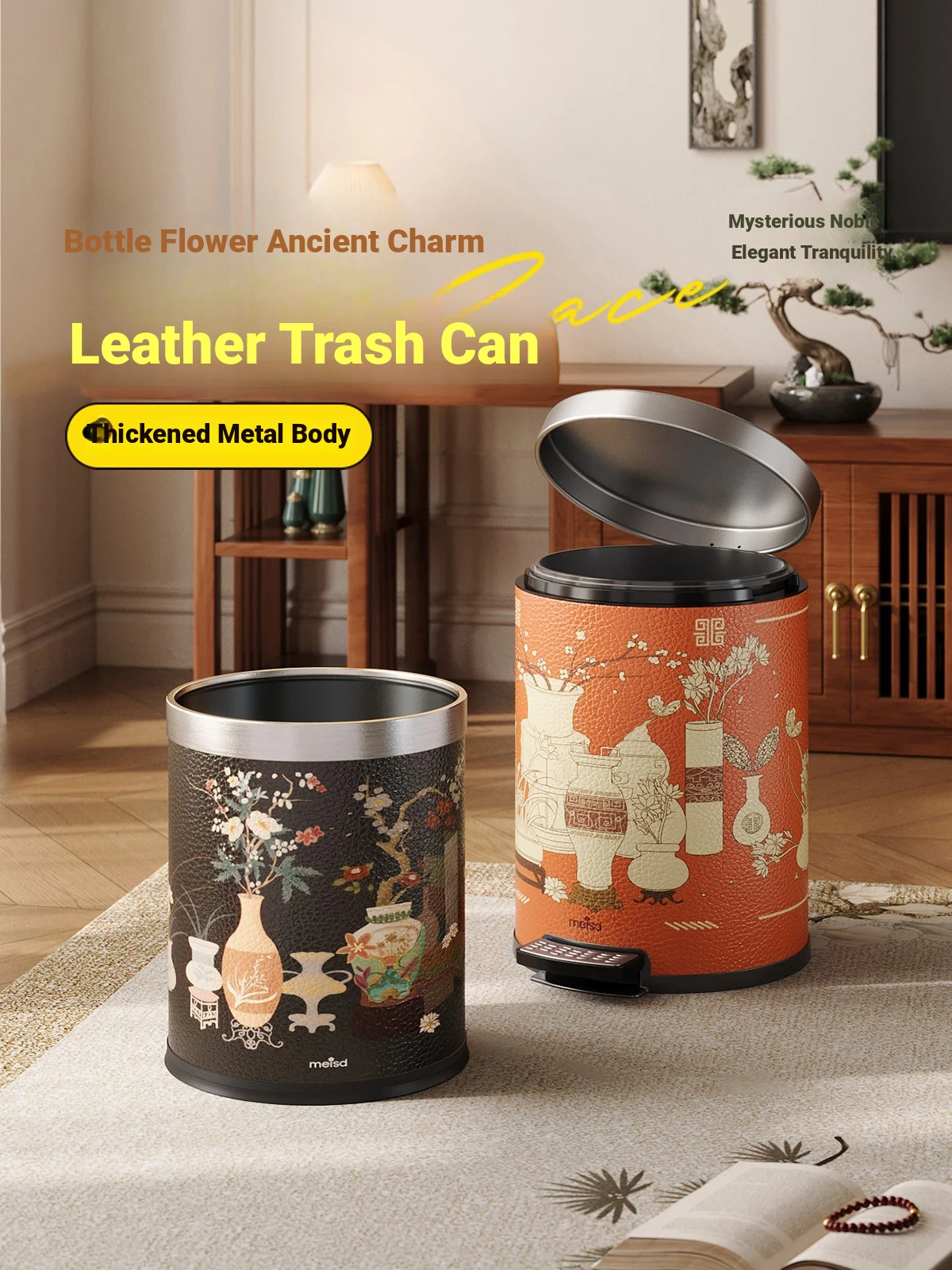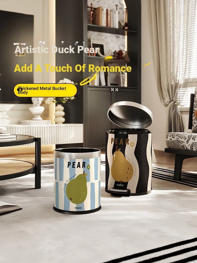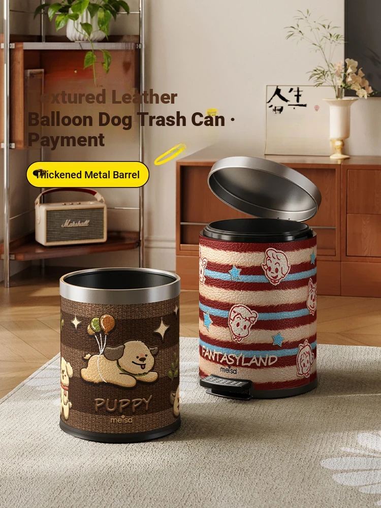 Stylish Covered Trash Can by Meishida - Large Capacity Vintage Design for Home Use, Perfect for Living Room and Bedroom, High-End Hygiene Solution