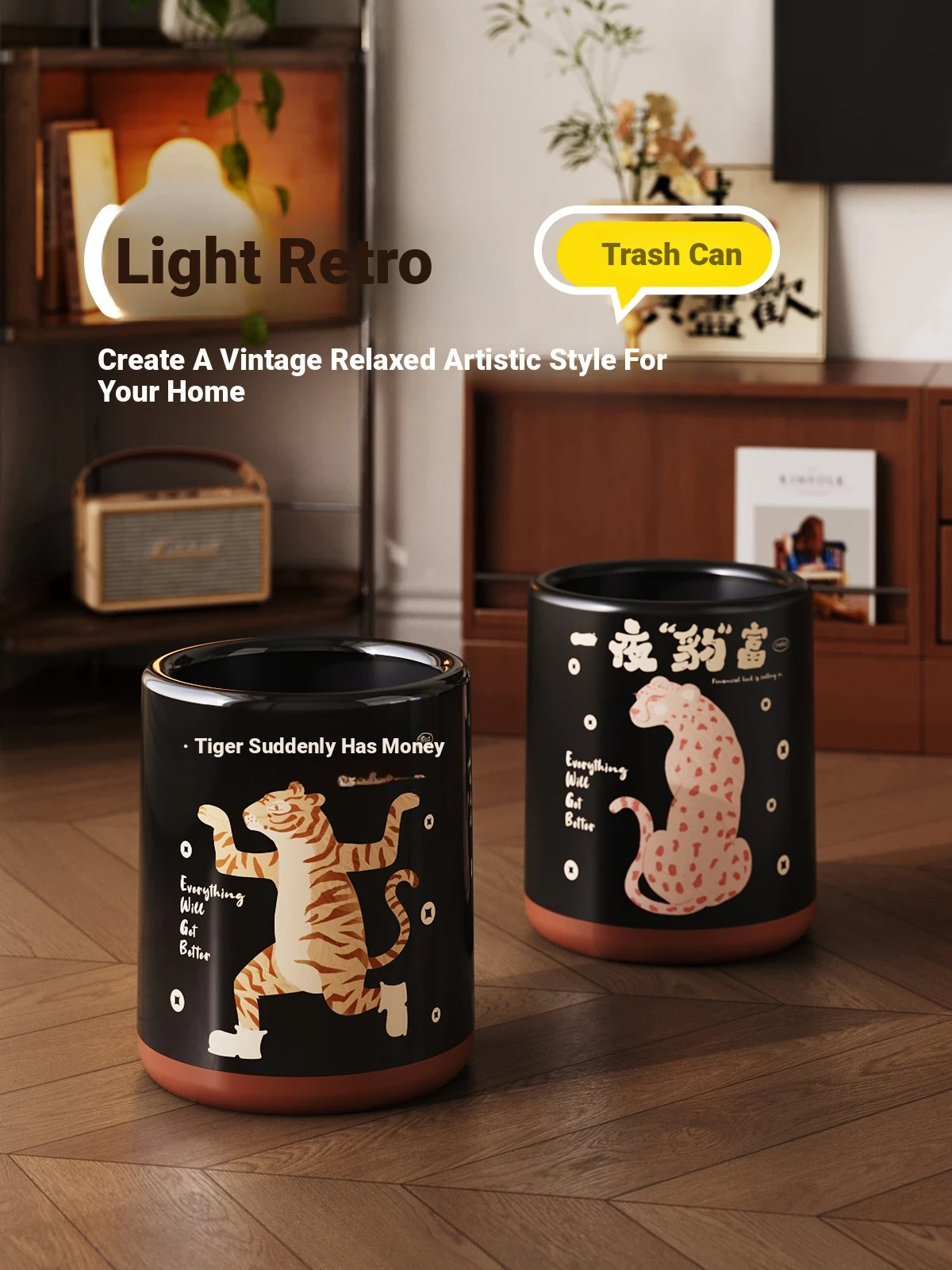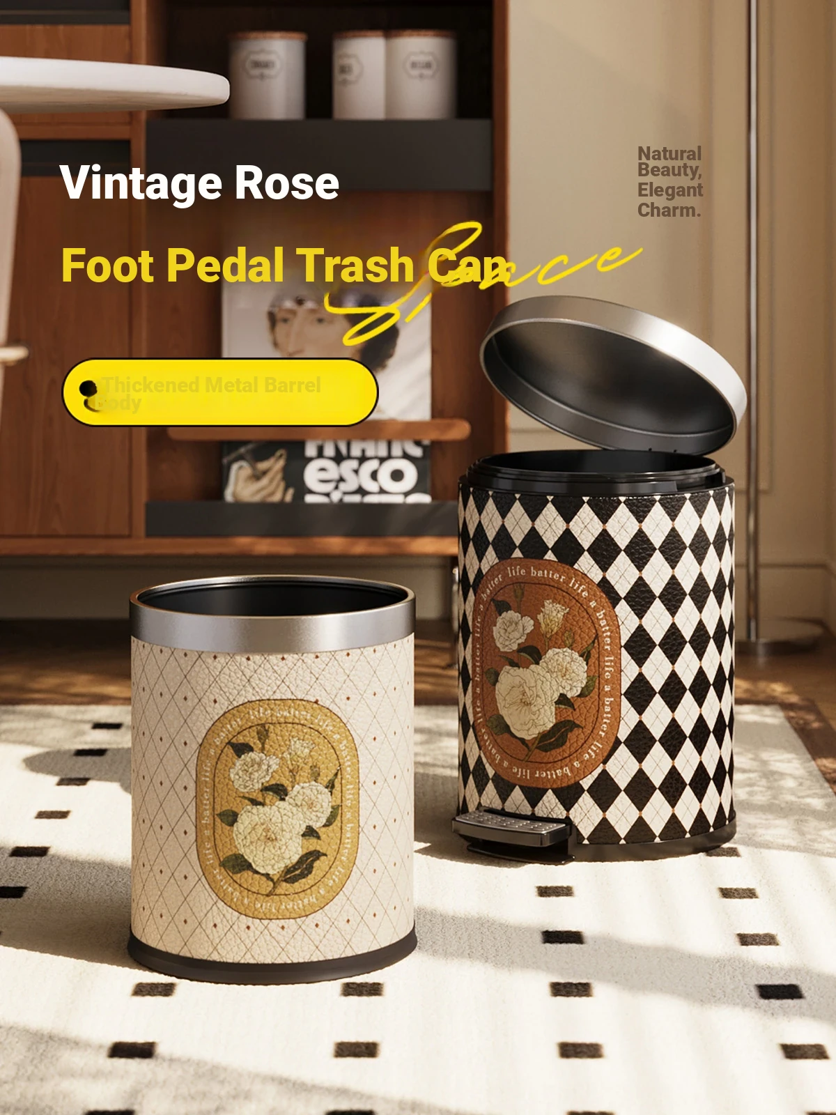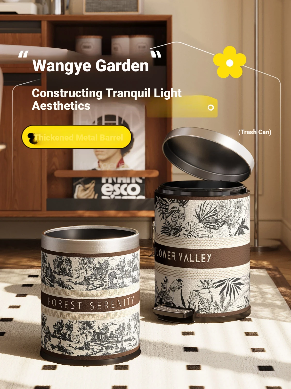 Stylish Covered Trash Can by Meishida - Large Capacity Vintage Design for Home Use, Perfect for Living Room and Bedroom, High-End Hygiene Solution