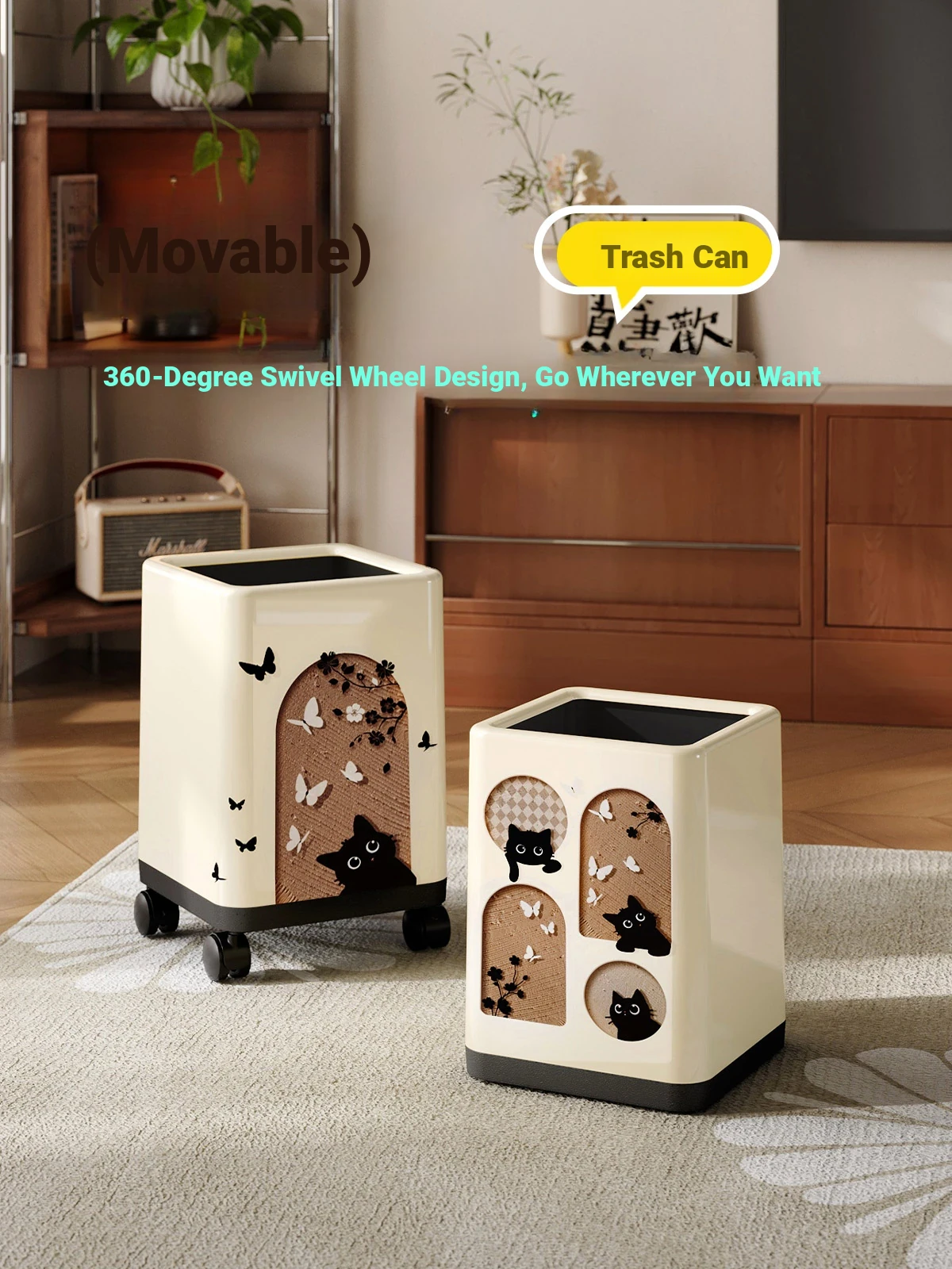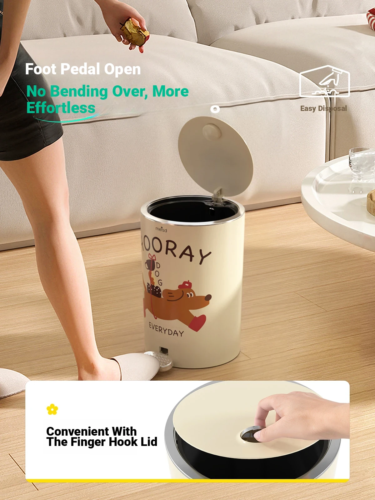 Meisida Stylish Household Trash Can - Elegant Mid-Century Modern Design, High-Quality Portable Waste Bin with Wheels for Living Room and Kitchen, Perfect for Your Chic Home Decor!