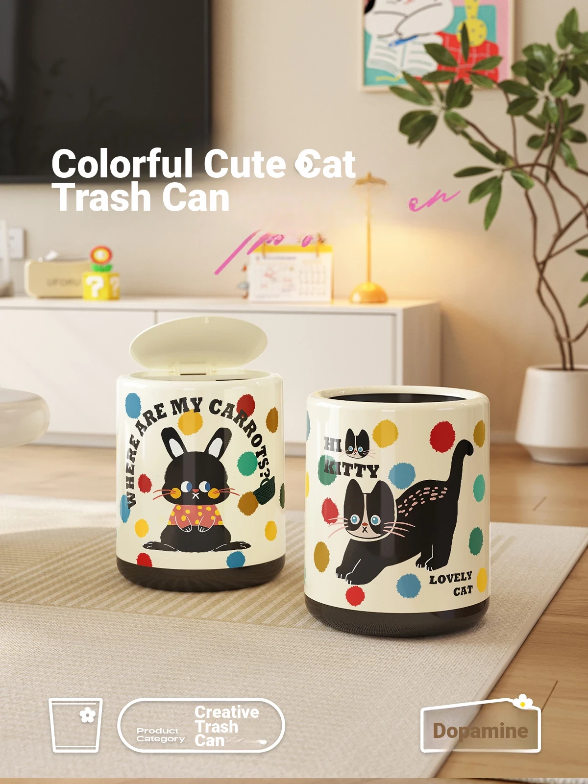 Meisida Stylish Dopamine Dot Rabbit Trash Can 2025 New Model - Premium Pop-Up Lid Waste Bin for Elegant Bathrooms