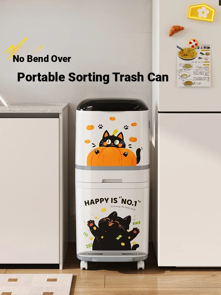 Meisida Portable Kitchen Trash Can - Dual-Layer High Design, No-Bend Wet and Dry Separation, Large Capacity for Home Use