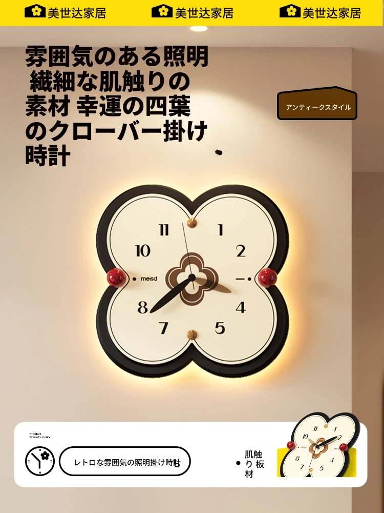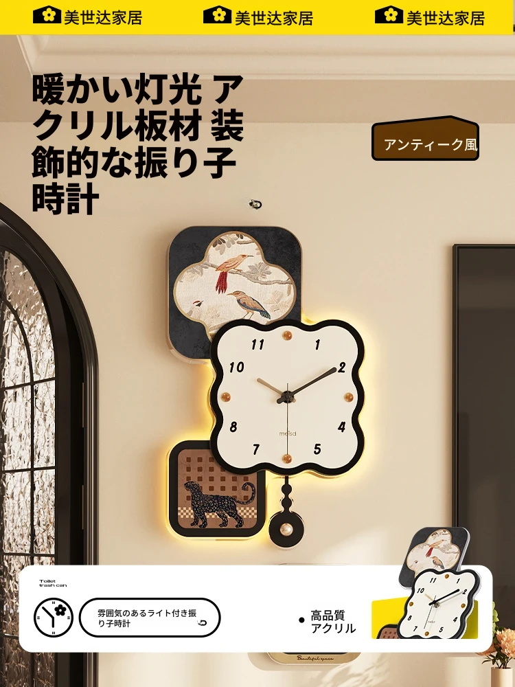 美世达のアンティーク風壁掛け時計 - シンプルで洗練されたデザイン、リビングルームに最適なインテリアアクセント。人気のクリエイティブなスタイルで、温かみのある光を放つ壁掛けライト付き!