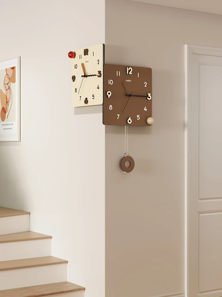 メイシーダ 2025年新作 ダブルフェイスコーナークロック - クリエイティブな角型壁掛け時計、おしゃれなリビングに最適!