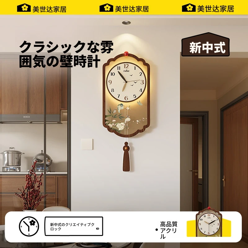 美世达新中式スタイルのリビングルーム用掛け時計 - 創造的で洗練されたデザイン、家庭用ダイニングにぴったりのレトロな壁時計。高級感あふれるインテリアを演出し、心地よい時間をお届けします。