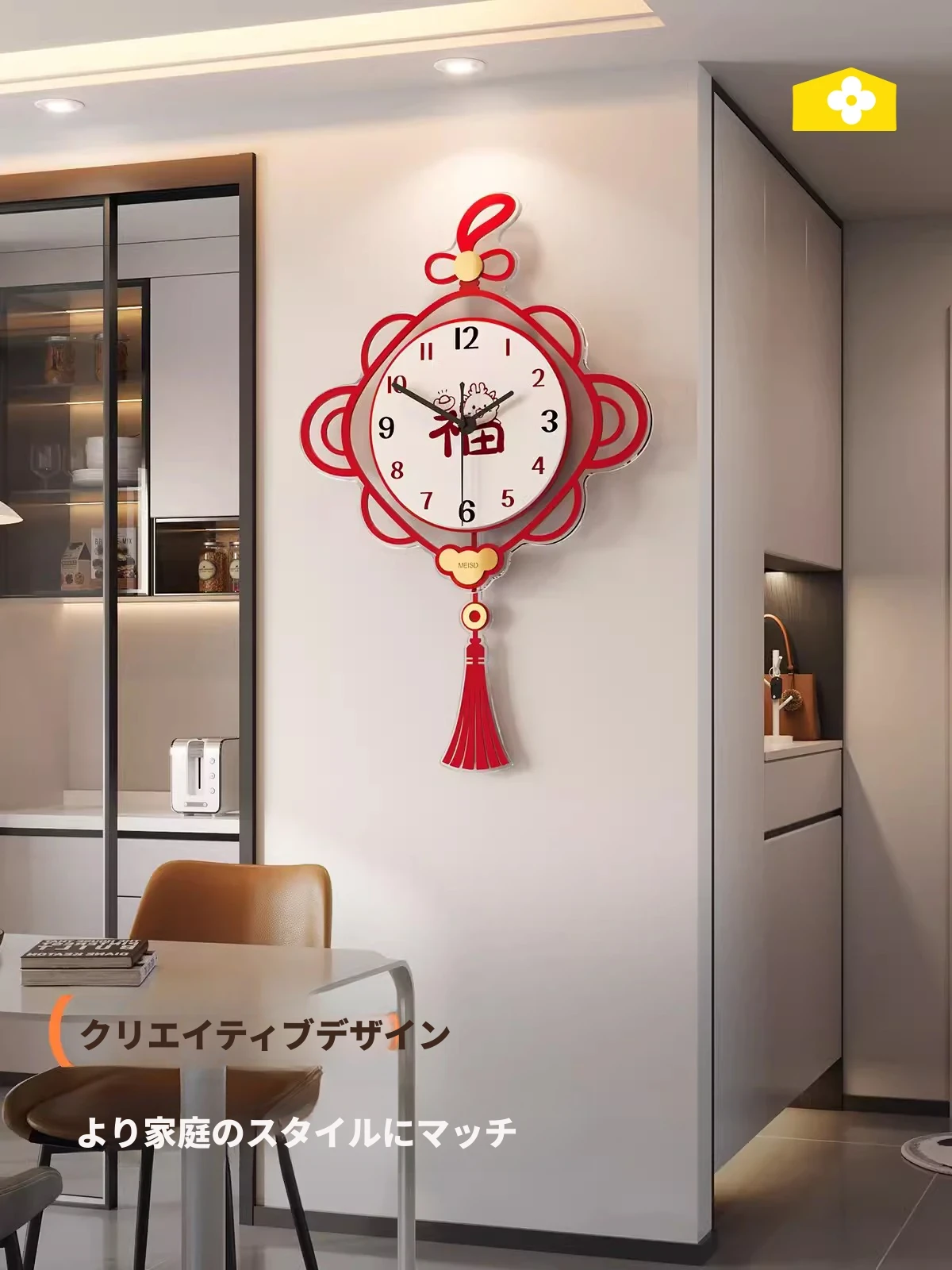 美世达中華結デザインの壁掛け時計 - 2024年新作!シンプルでスタイリッシュなリビング用装飾時計、創造的なデザインでお部屋を引き立てる!