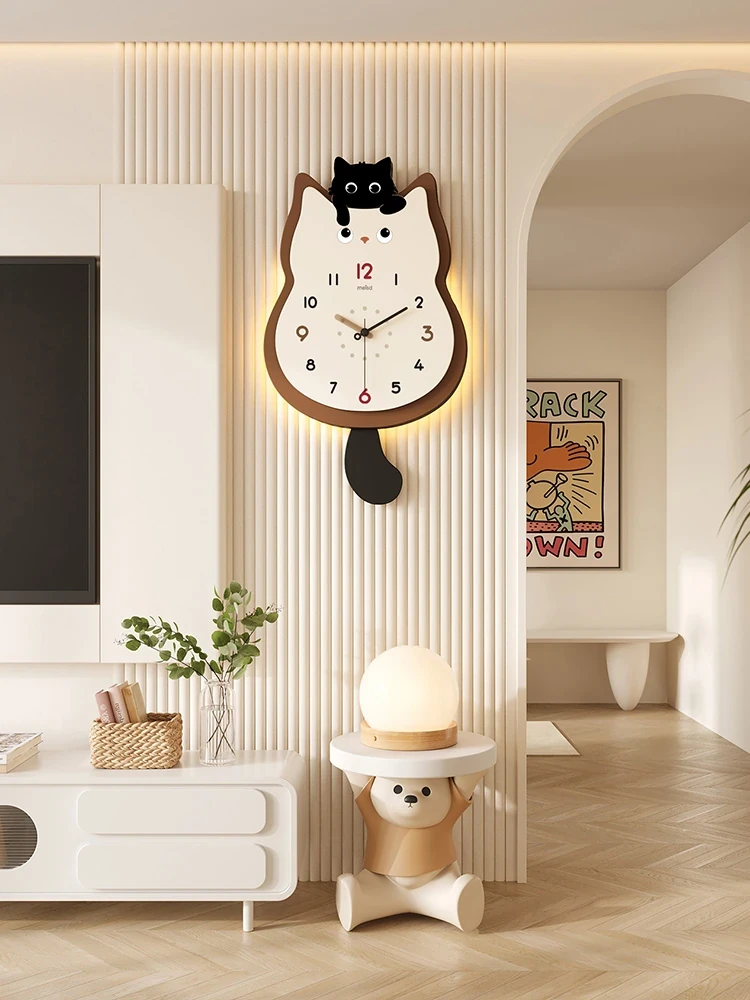 ミスタキャット 2025年新作 壁掛け時計 - シンプルでモダンなデザイン、リビングにぴったりなアート時計!おしゃれで大人っぽい雰囲気を演出し、毎日を特別に彩ります。