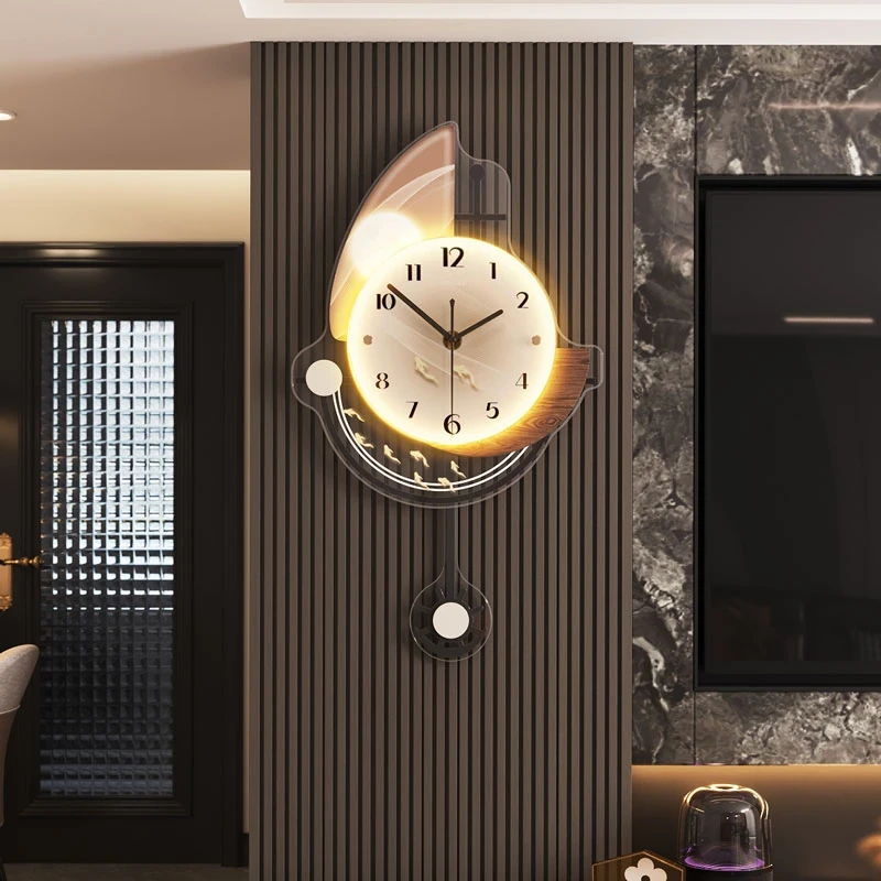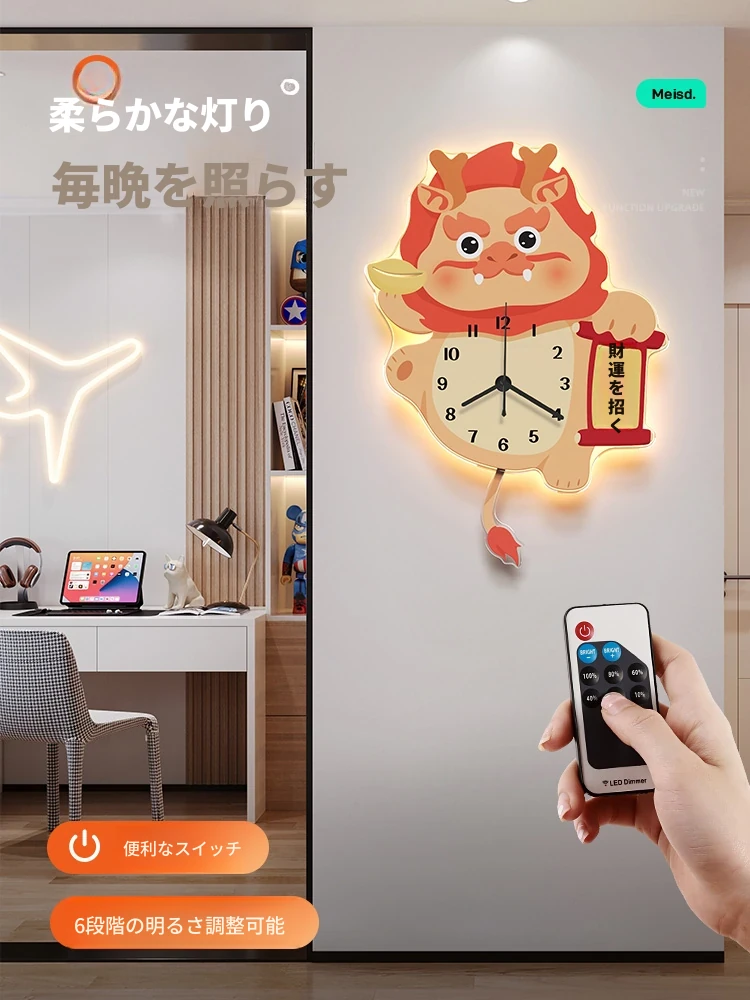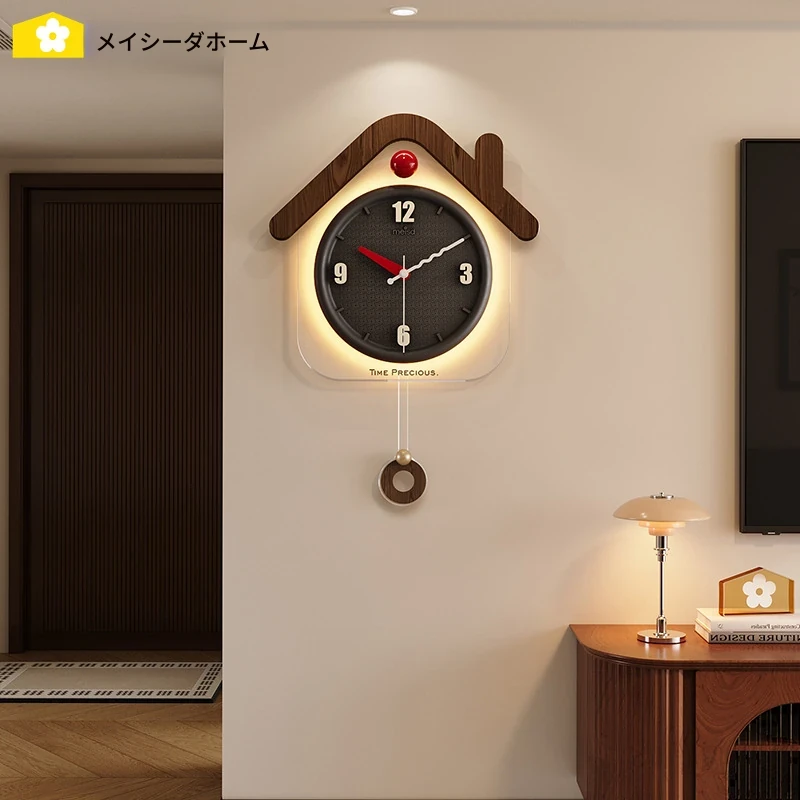 美世达の中華風クリエイティブ掛け時計 - 2025年新作!リビングにぴったりな高級感溢れるウォールクロック、壁掛けライト付きでお部屋を明るく演出。おしゃれなデザインで、あなたの空間を特別に彩ります!