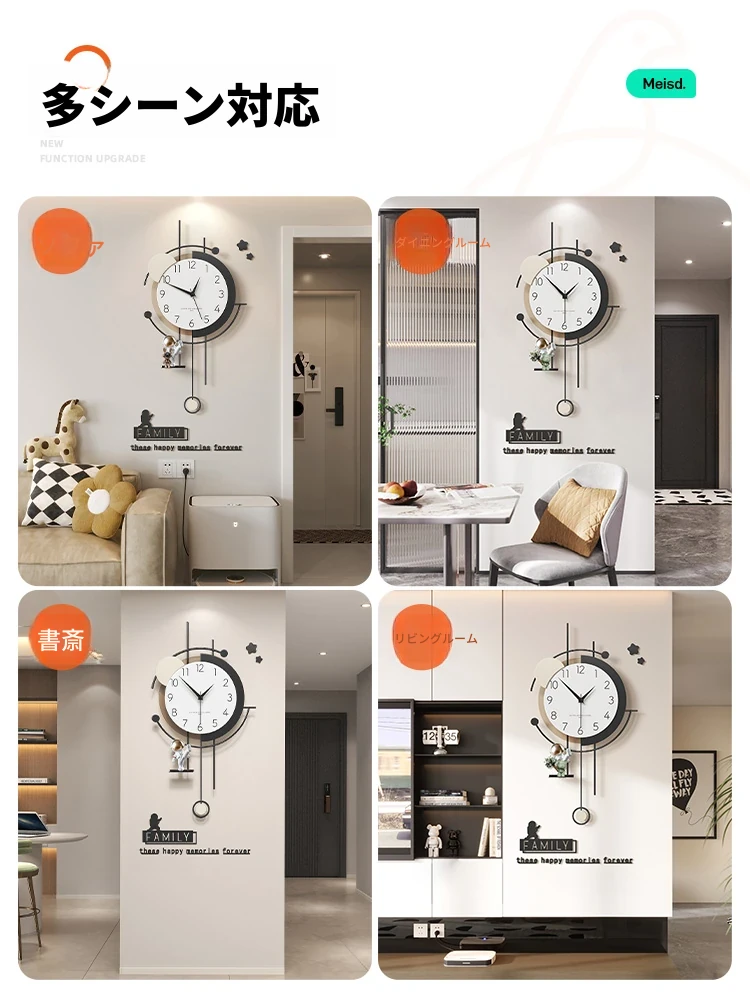 美世达2024年新作!軽奢でモダンなデザインのリビング用掛け時計。高級感溢れる創造的な壁時計で、あなたの空間を一新!
