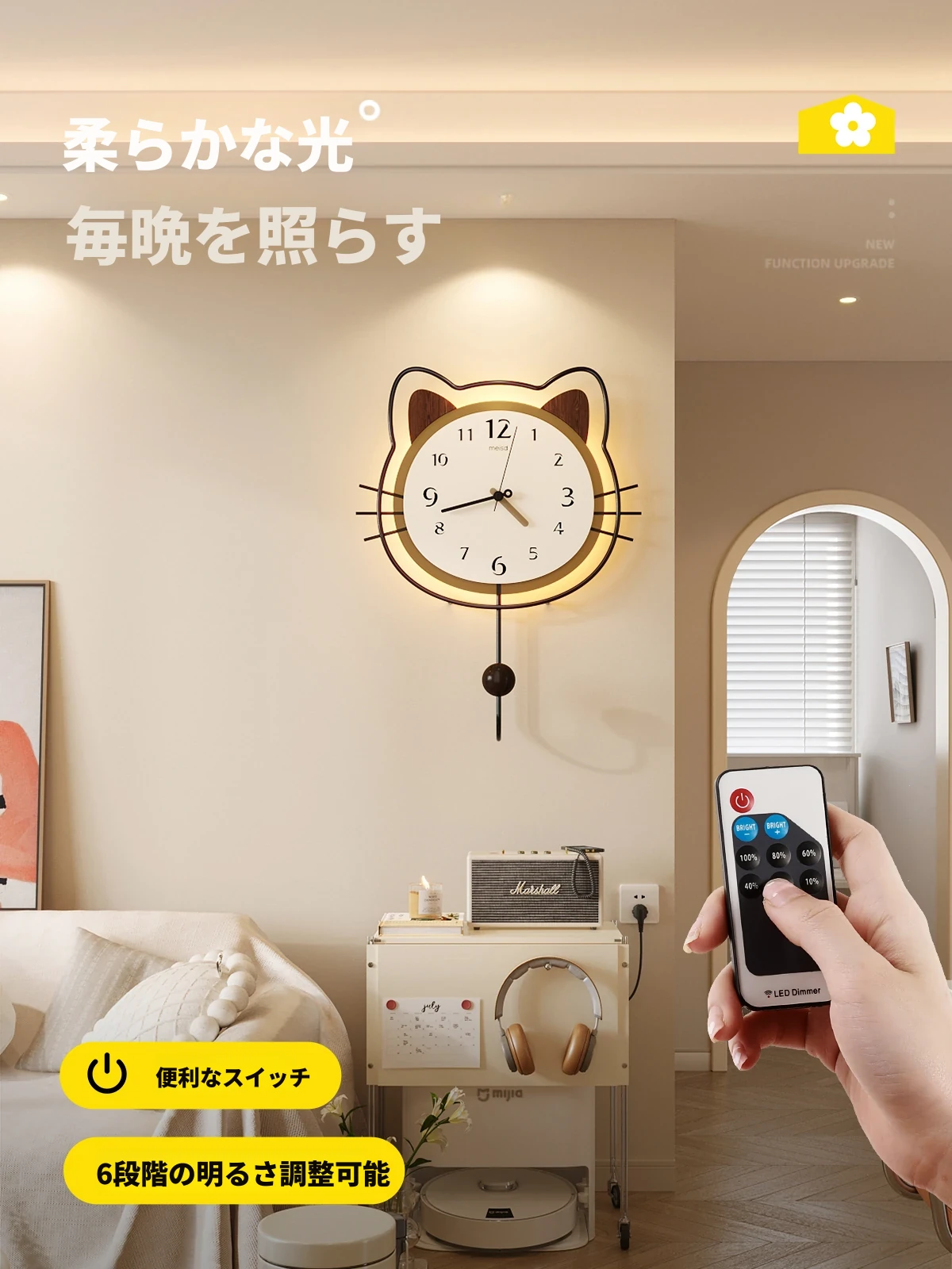 美世达ドット猫インフルエンサー掛け時計 - シンプルでモダンなデザイン、最新のクリエイティブなリビングルーム用ウォールクロック。家庭用に静音設計、スタイリッシュな空間を演出します!