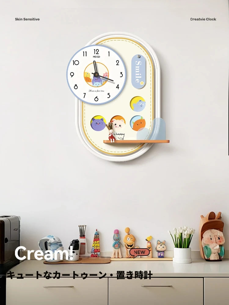 美世达クリエイティブリビングウォールクロック - シンプルでモダンなデザイン、子供部屋にもぴったりのかわいいカートゥーンスタイル。静音設計で快適な睡眠をサポートするおしゃれな掛け時計。