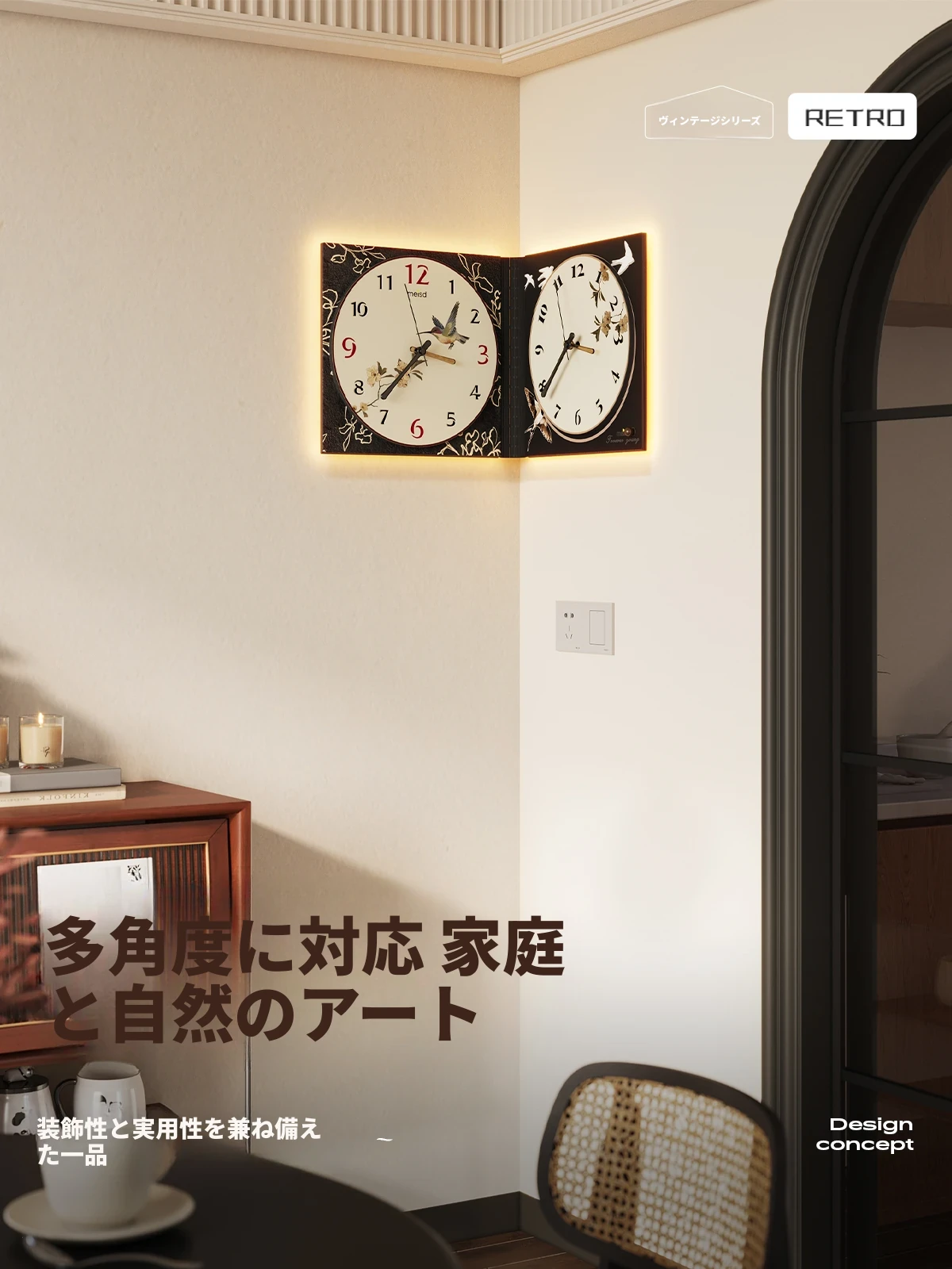 メイシダのクリエイティブレトロコーナークロック - リビングにぴったりな2025年新作ダブルフェイス時計、クリーミーな雰囲気で角に華やかさをプラスする壁掛け時計です!