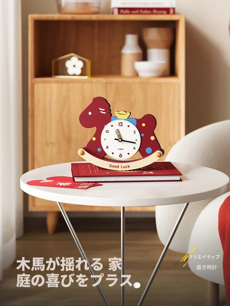 メイシーダ創意小馬デスククロック - おしゃれでユニークなインテリアアクセサリー、リビングや玄関を華やかに彩る卓上時計!あなたの空間に個性をプラスします。
