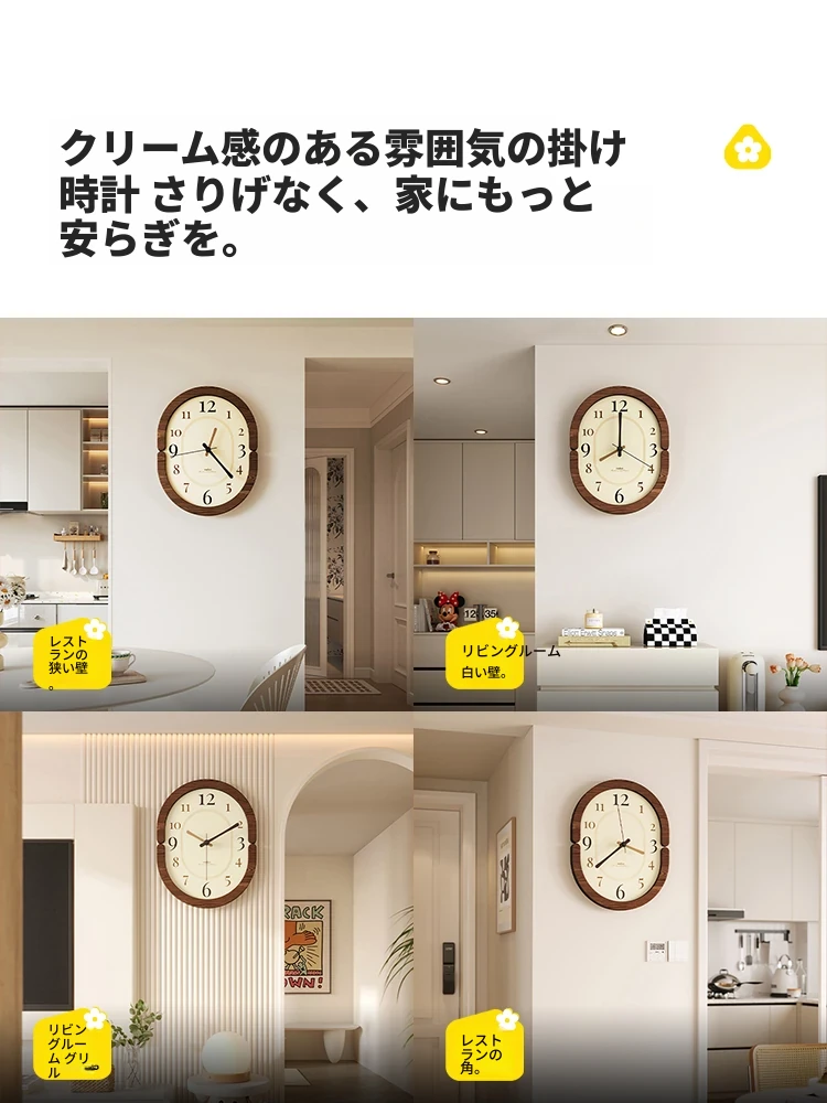 ミスターデコレーションのクリエイティブなクリーム風シンプル掛け時計 - 2024年新作、静音設計でリビングにぴったり!おしゃれな壁掛け時計で家の雰囲気を一新。