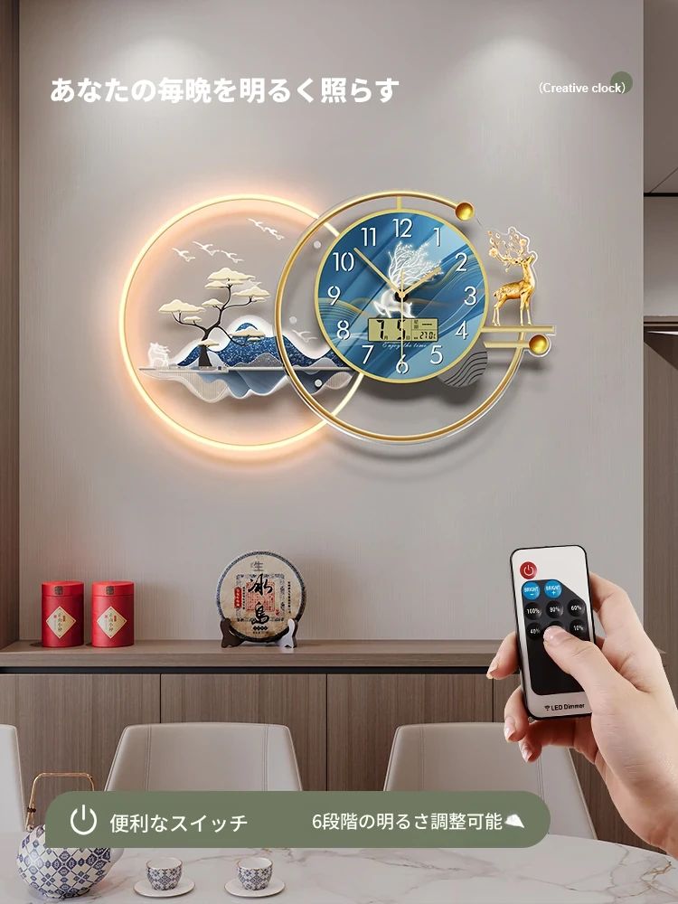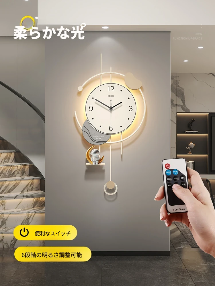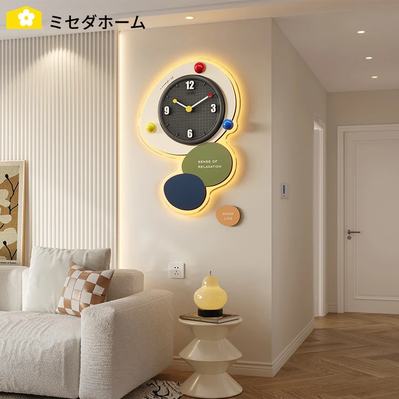 美世达2025年最新デザインの玄関装飾アート!モダンな家のためのクリエイティブな掛け時計。リビングルームを華やかに彩る壁掛け時計&ライトのセットで、スタイリッシュな空間を演出!