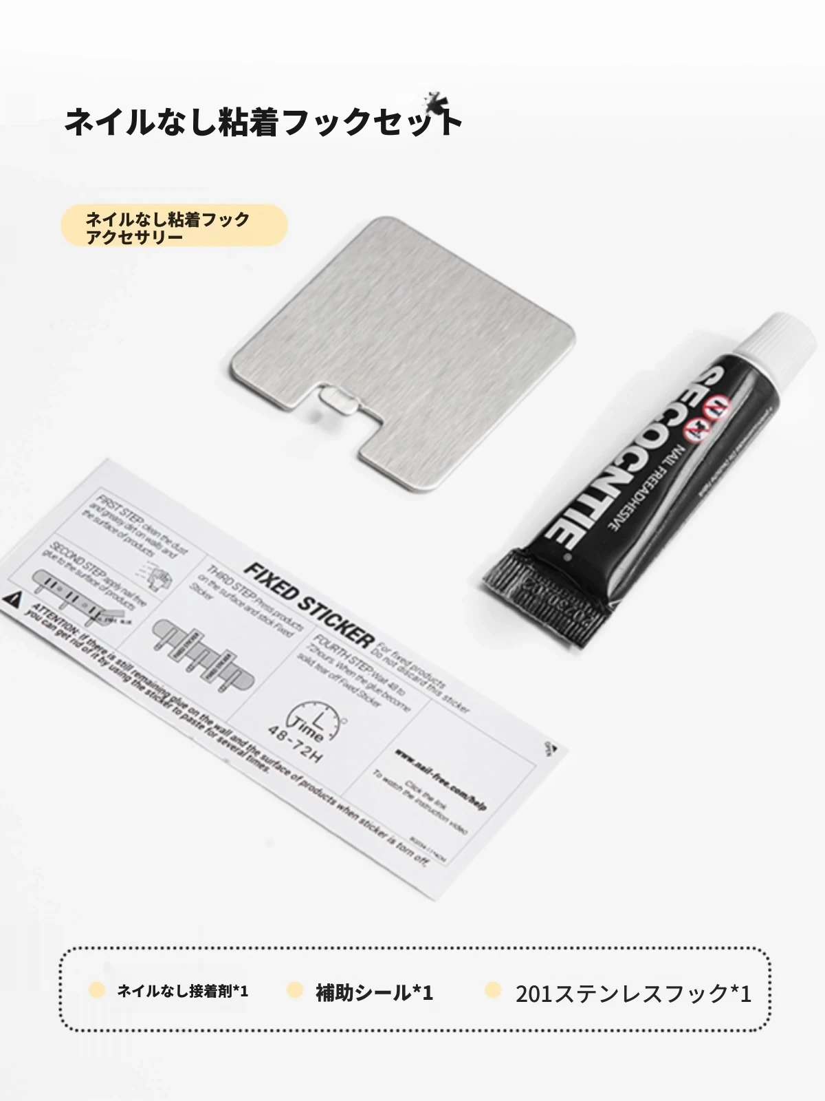 ノー釘フックセット、タイルや大理石の壁専用!塗装した壁には使用禁止!強力粘着力で簡単取り付け、壁を傷めずにおしゃれな収納を実現!