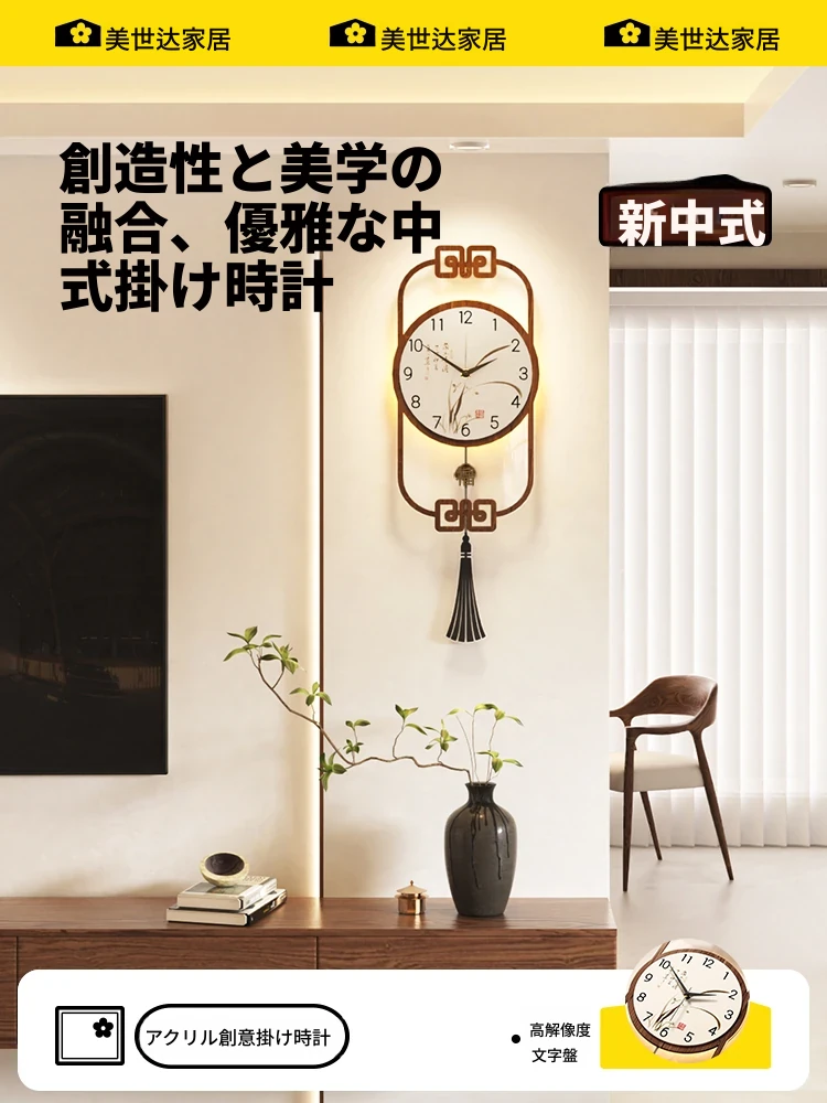 美世达新中式掛け時計 2024年新作!シンプルでモダンなデザイン、創造的なレストラン用の大気を演出する家庭用時計。おしゃれな空間を演出し、時間を美しく刻む一品です。