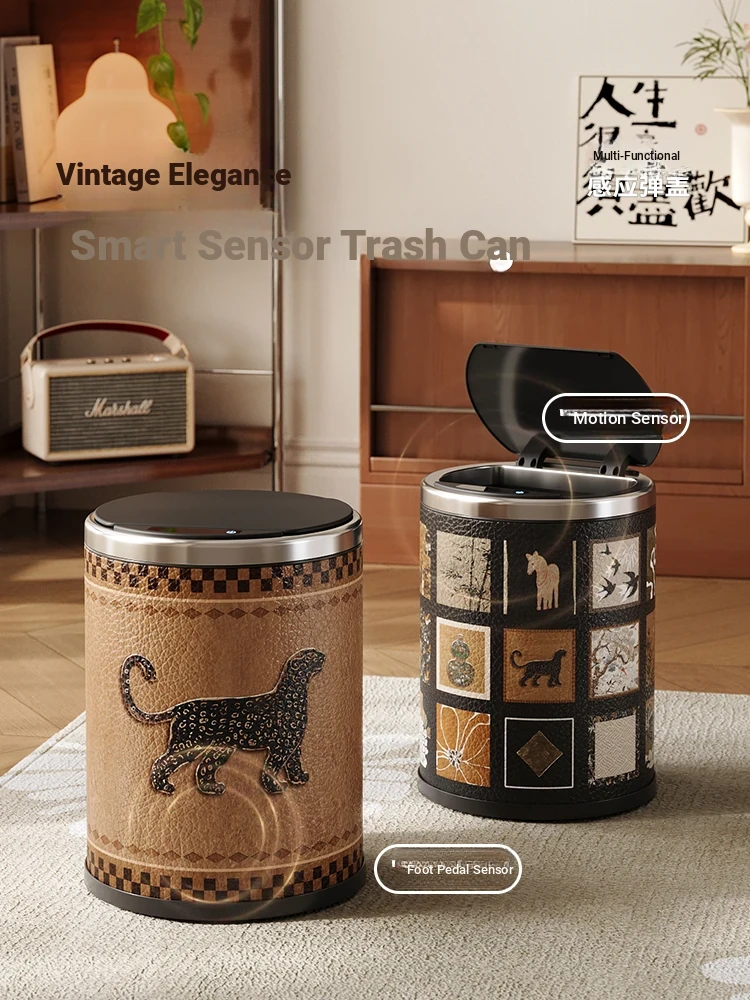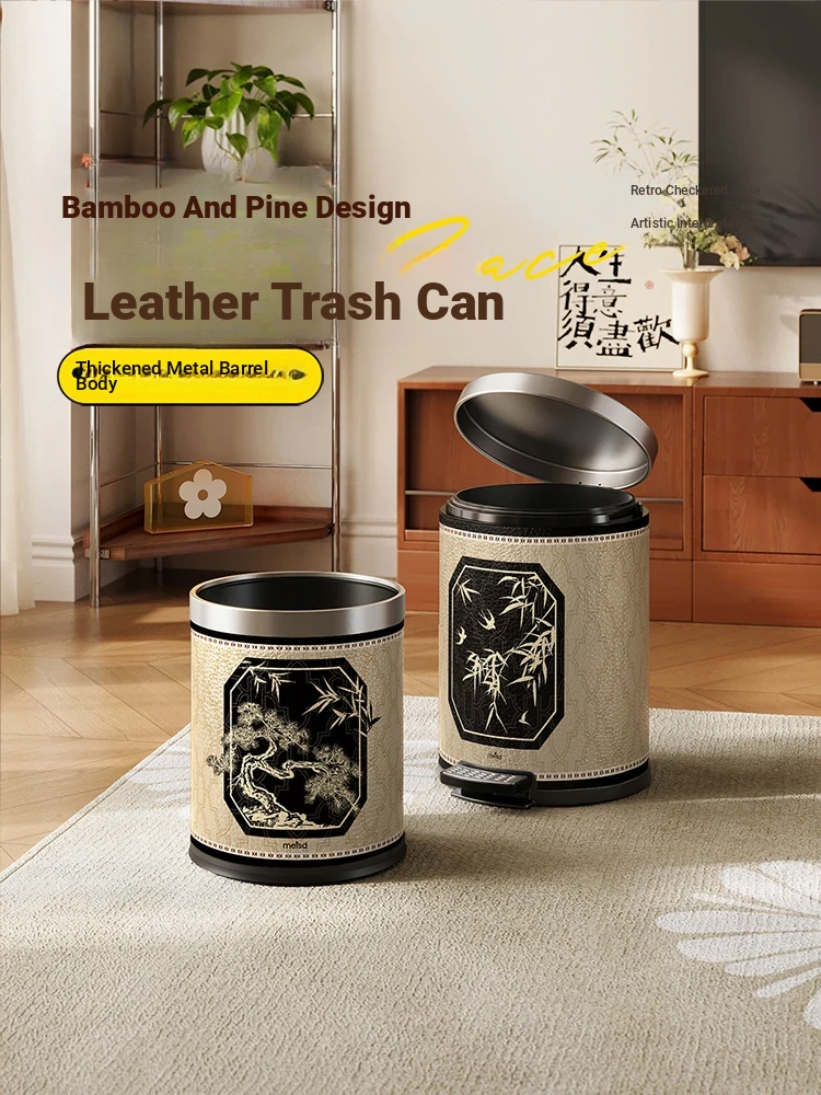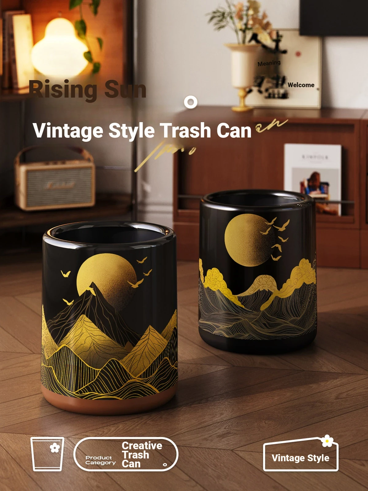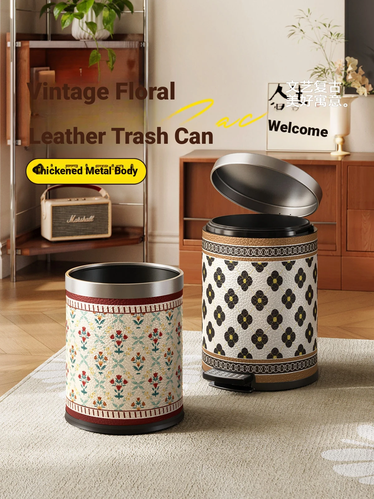 Stylish Vintage-Style Household Trash Can - 2025 New Design for Living Room, Bedroom, and Bathroom, Large Capacity, High Aesthetic Appeal
