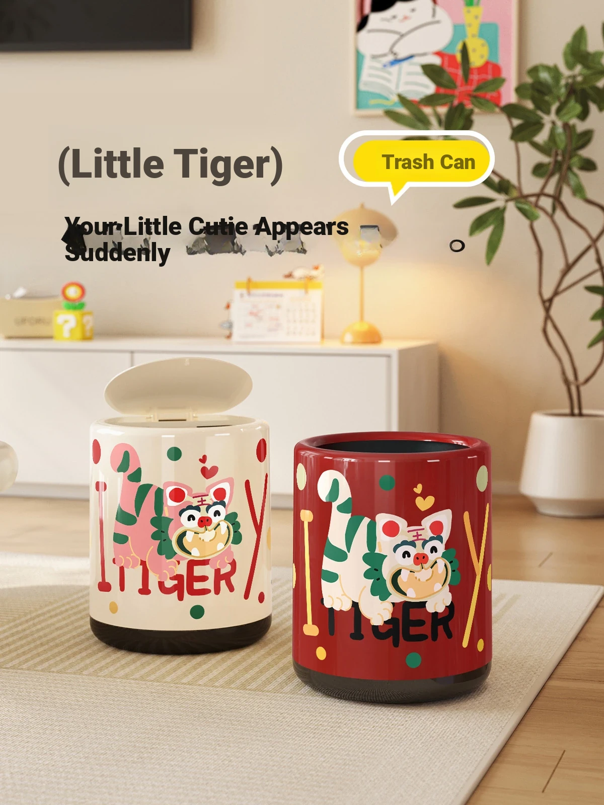 Stylish Miesta Trash Can for Home - Valentine's Day High-Style Dopamine Love Tiger Design, Perfect for Living Room and Bedroom with Lid for Easy Storage