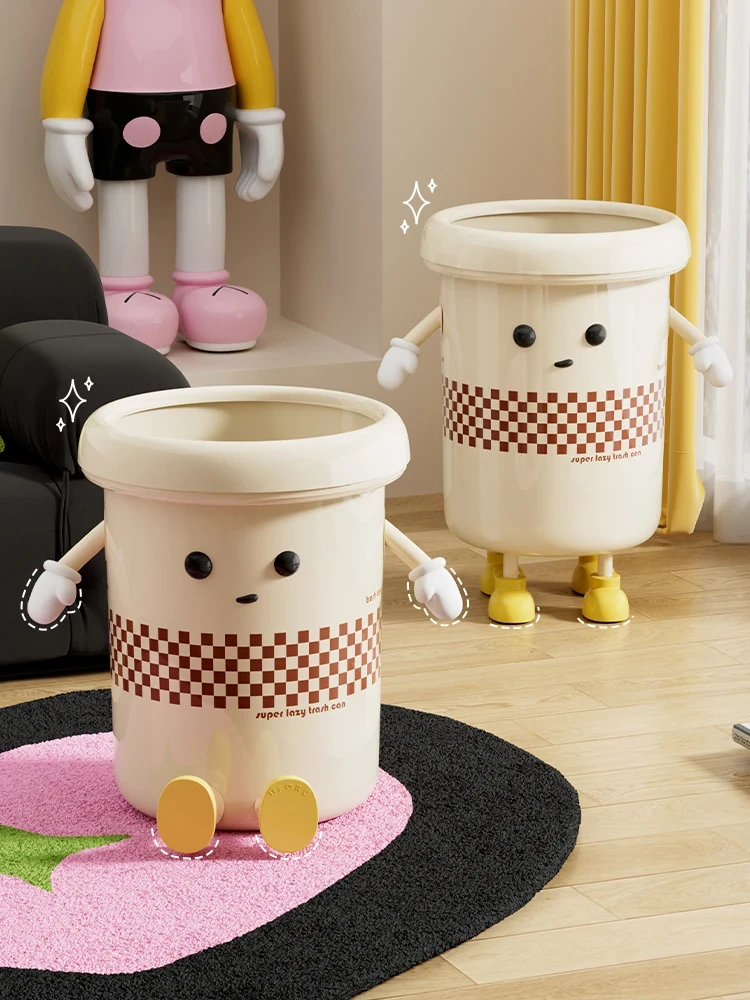 Stylish Large-Capacity Cartoon Trash Can for Home – Perfect for Bedroom, Living Room, and Bathroom – Adorable Design with Wide Opening for Easy Disposal