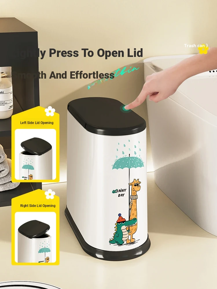 Meisida Cute Cartoon Slim Bathroom Trash Can - Stylish High-Capacity Lid Bin for Narrow Spaces, Perfect for Modern Bathrooms