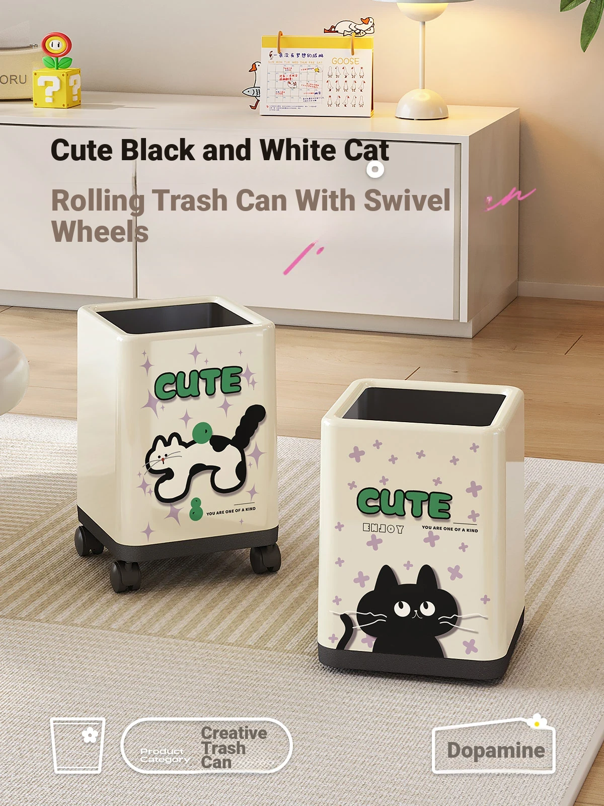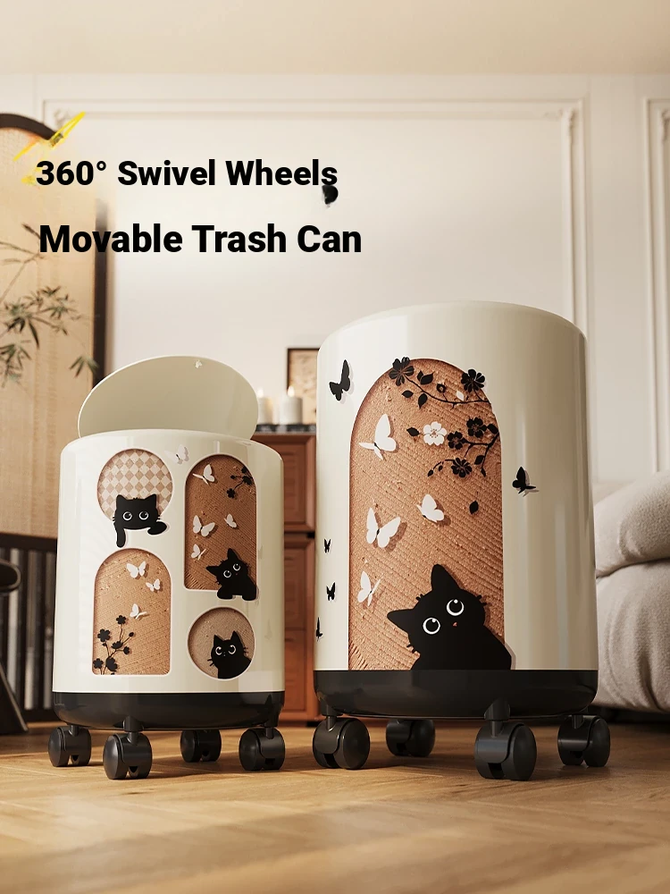 Stylish Meisida Trash Can - 2025 New Cute INS-Style Household Waste Bin with Wheels for Living Room and Bedroom