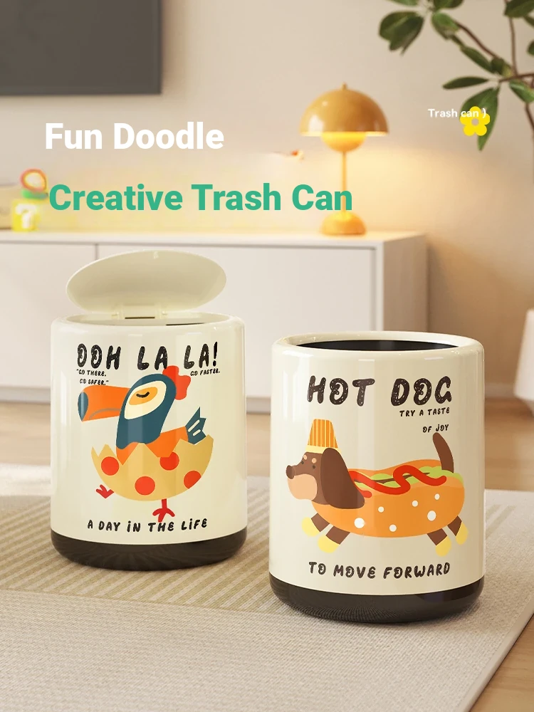 Creative High-Quality Cartoon Cream Trash Can for Home - Large Double-Layer Covered Bin for Living Room and Bathroom