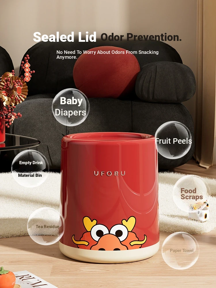 Meisida Dragon Year Special Edition Large Capacity Trash Can – Stylish & Functional with Lid for Living Room, Bedroom, and Bathroom Use