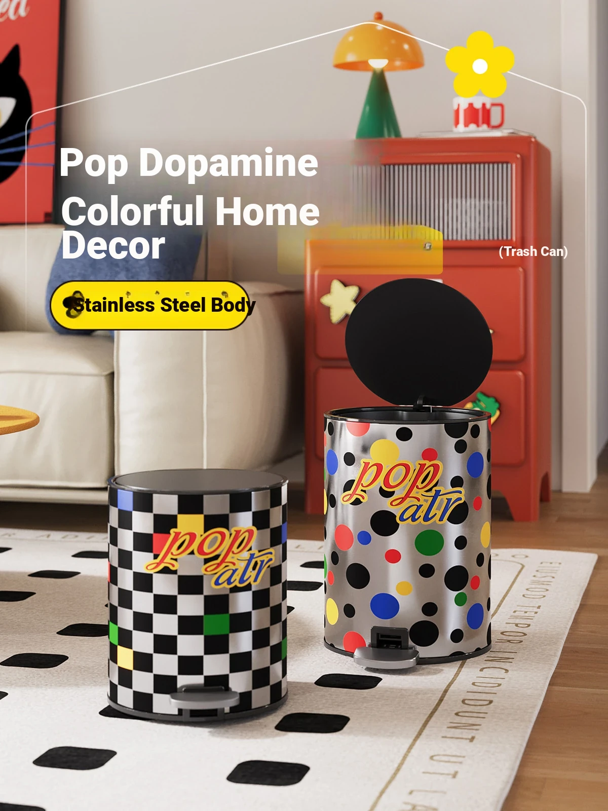 Stylish Stainless Steel Trash Can - Black and White Checkered Design for a Chic Living Room, Foot Pedal Lid, Perfect for Home Storage