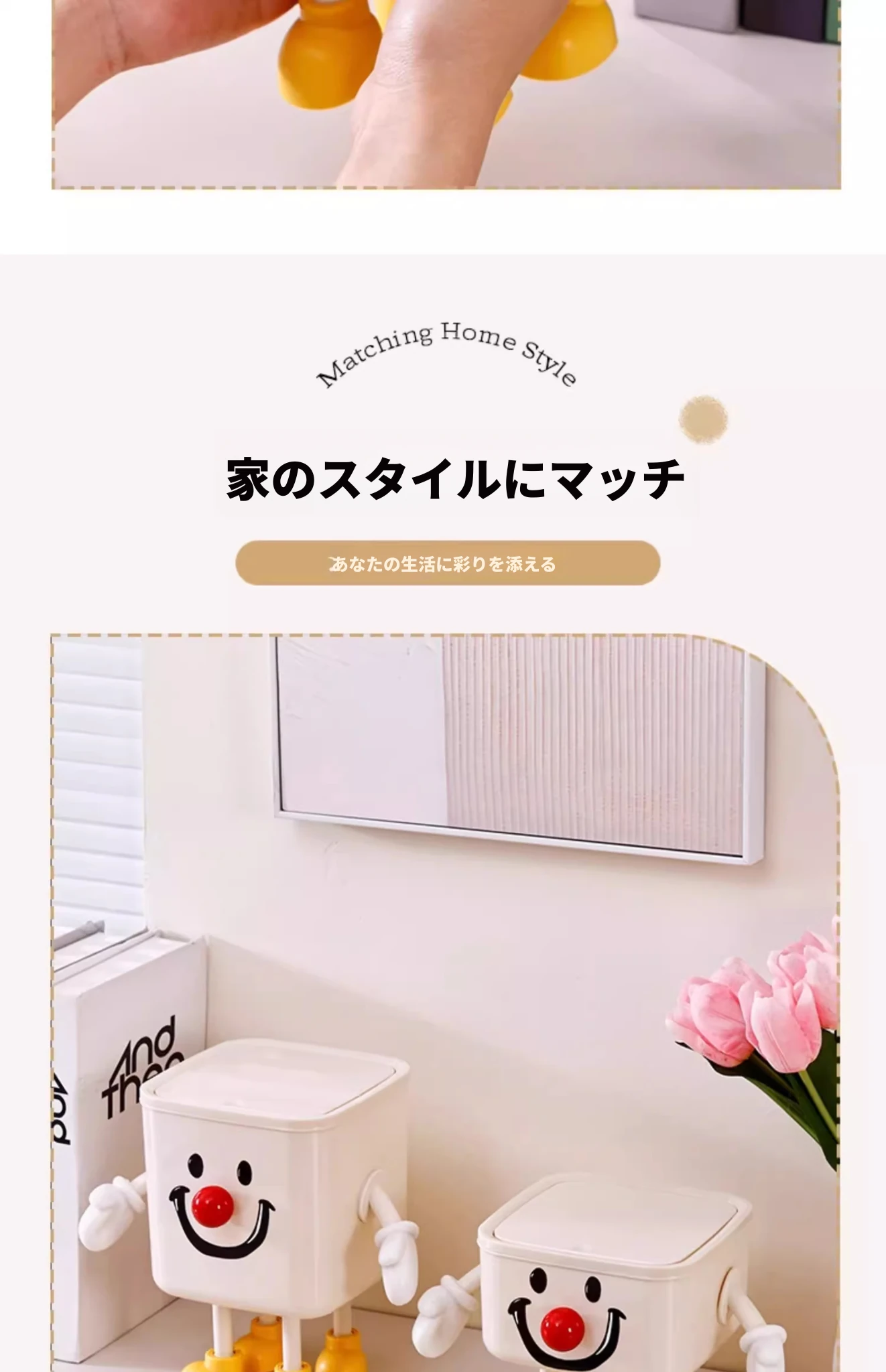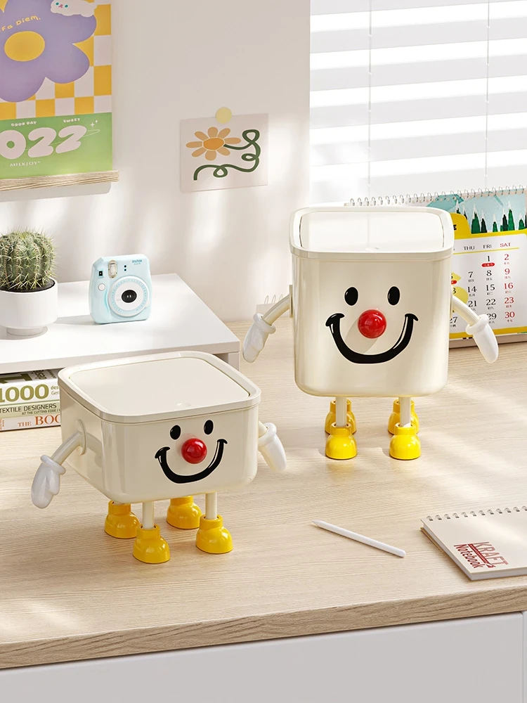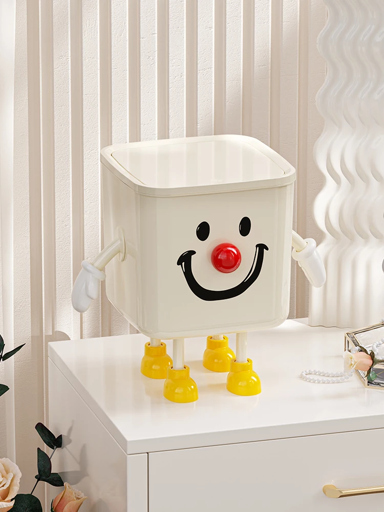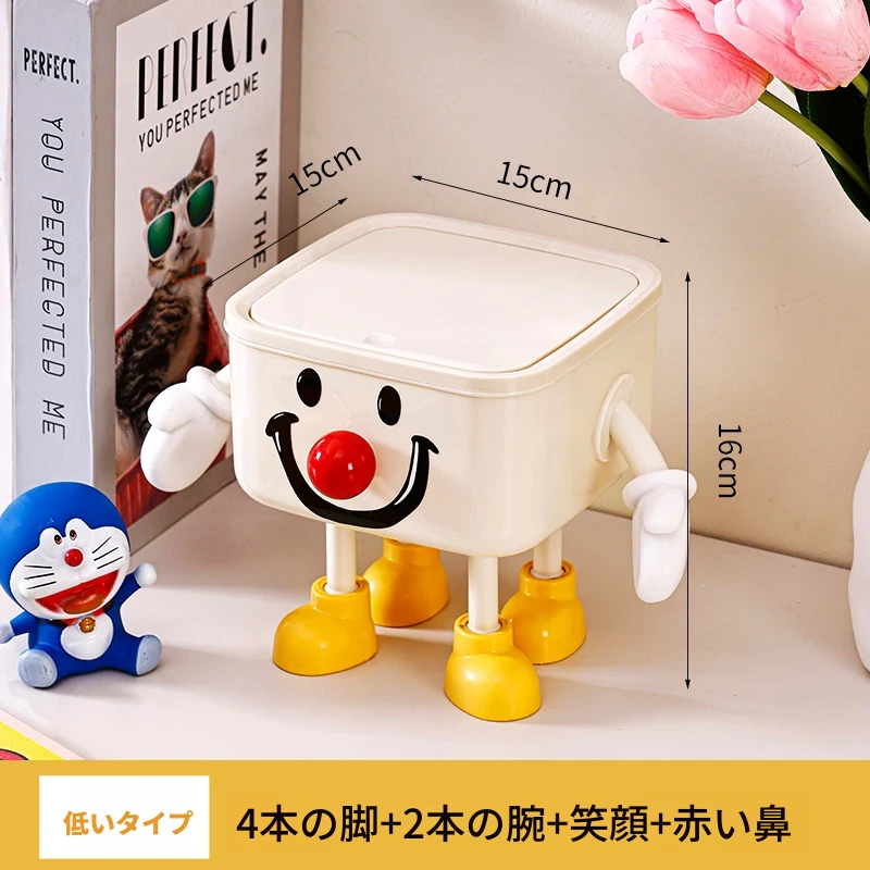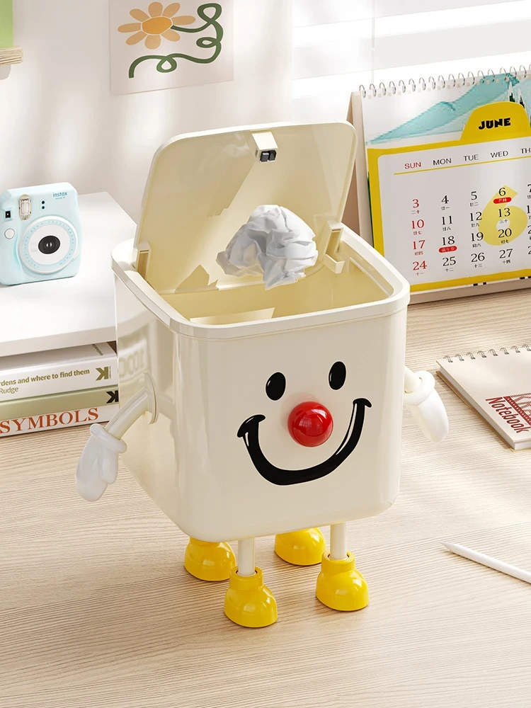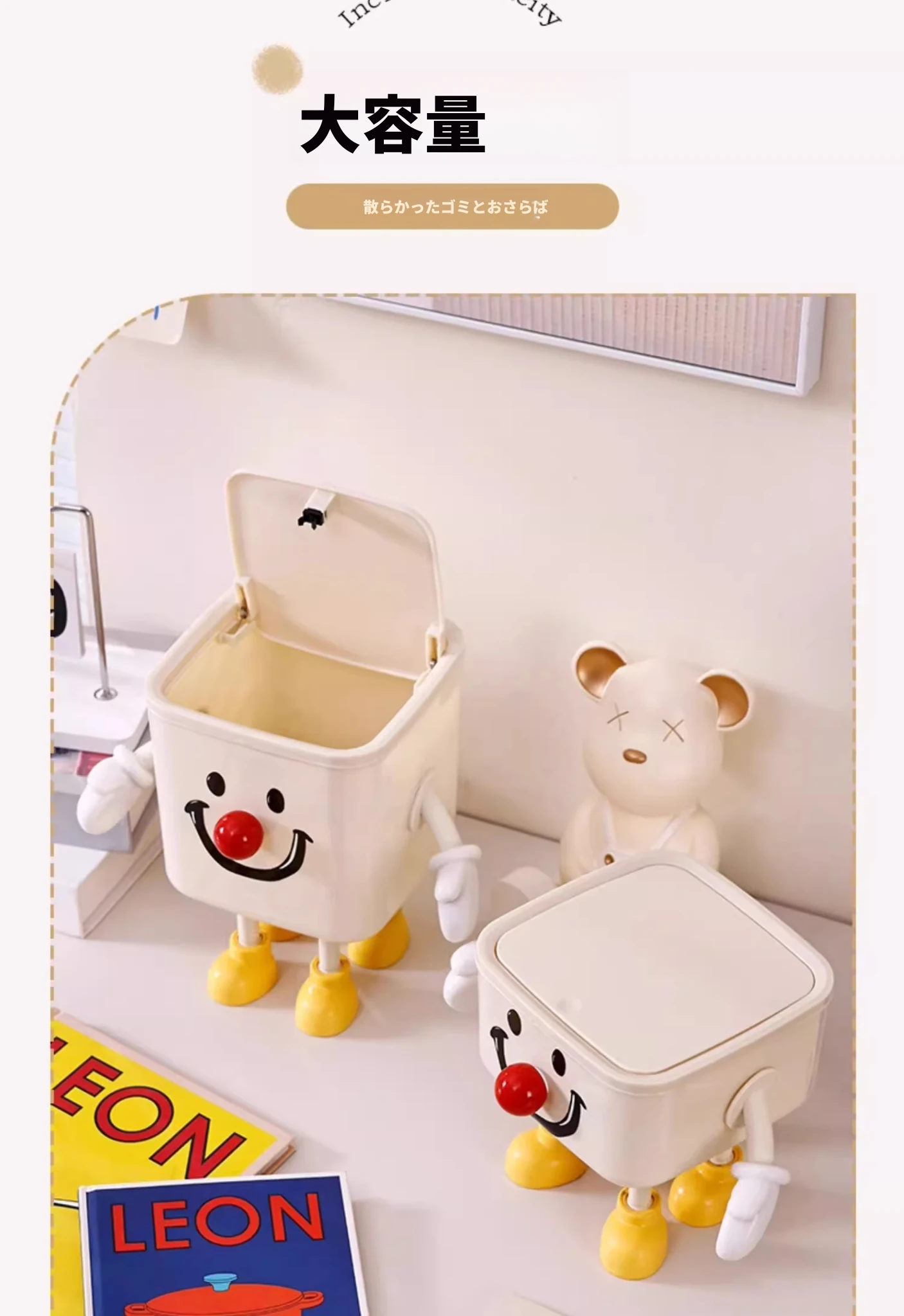 ミスターデザインのかわいいカートゥーンミニデスクゴミ箱!DIYで楽しむ、プッシュ式のふた付きペーパーバスケット。おしゃれで機能的なインテリアアイテムで、あなたのテーブルをスッキリ!