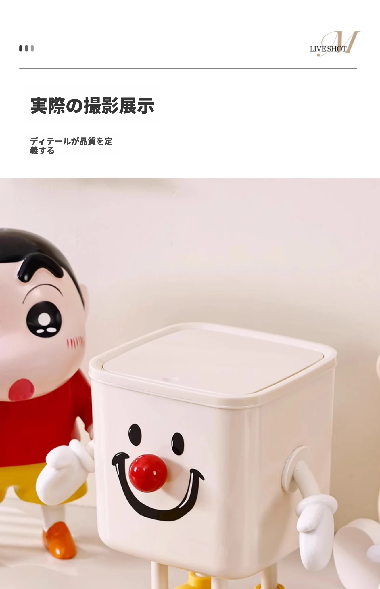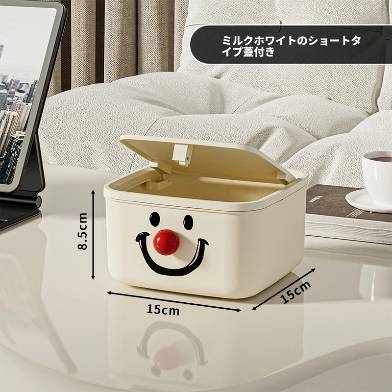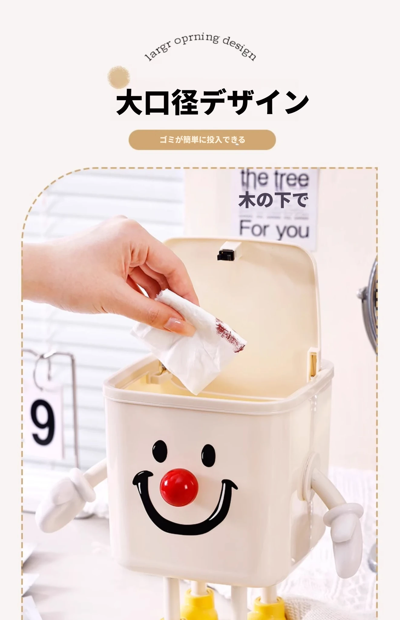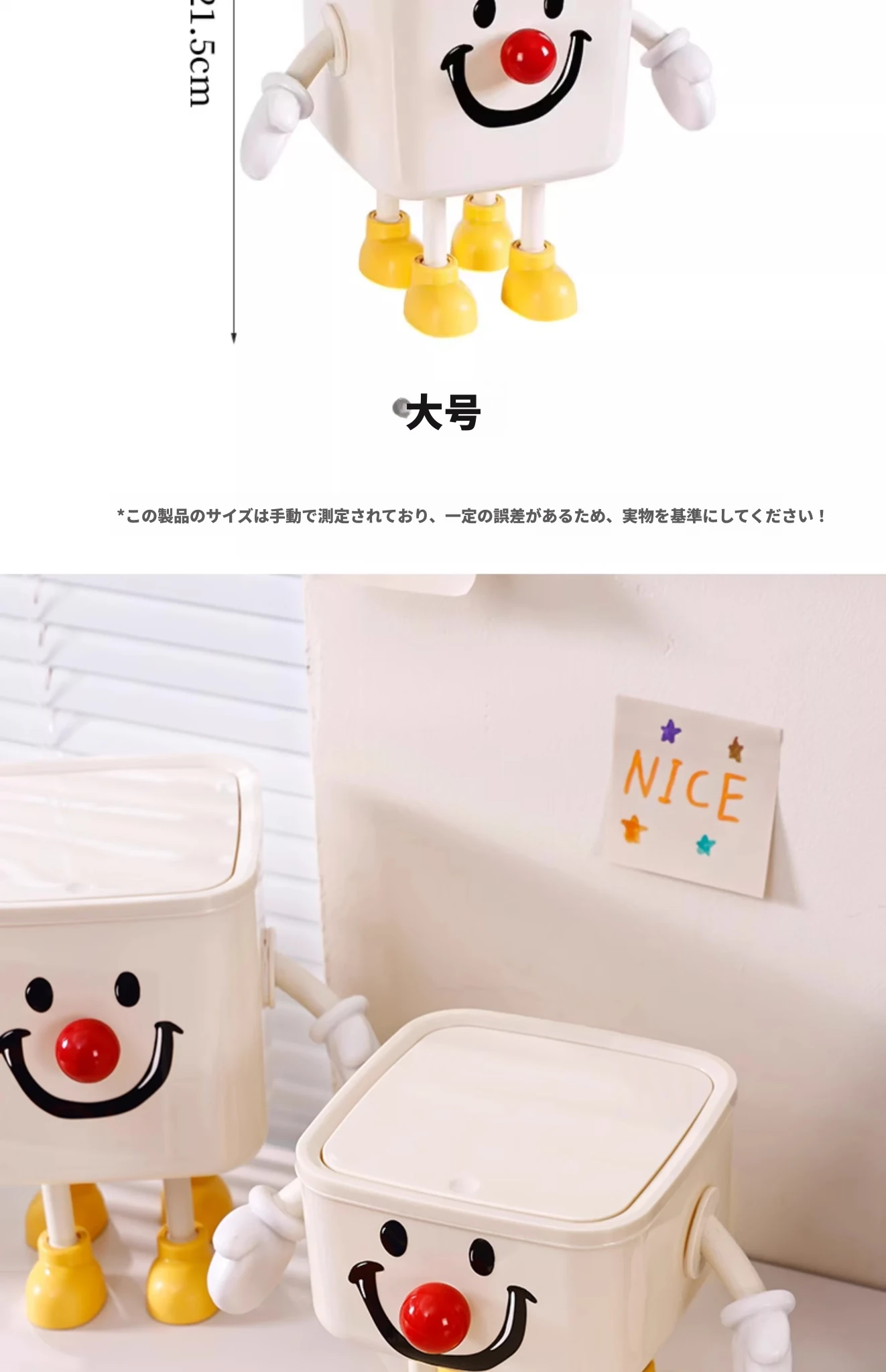 ミスターデザインのかわいいカートゥーンミニデスクゴミ箱!DIYで楽しむ、プッシュ式のふた付きペーパーバスケット。おしゃれで機能的なインテリアアイテムで、あなたのテーブルをスッキリ!
