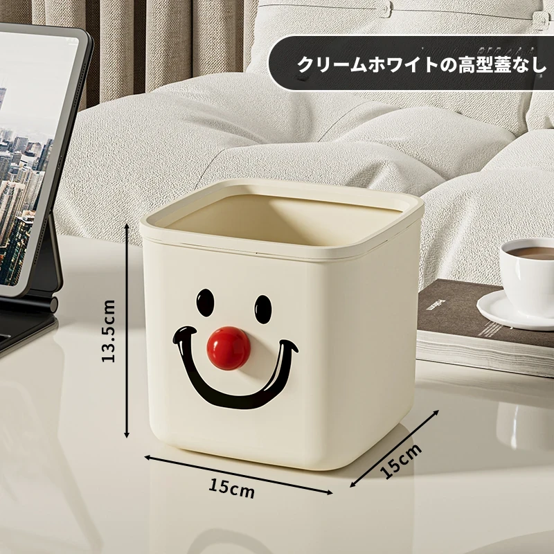 クリームホワイト高タイプ無蓋【ピエロのゴミ箱】