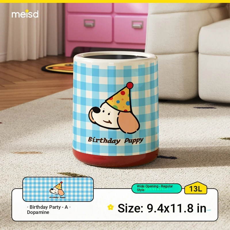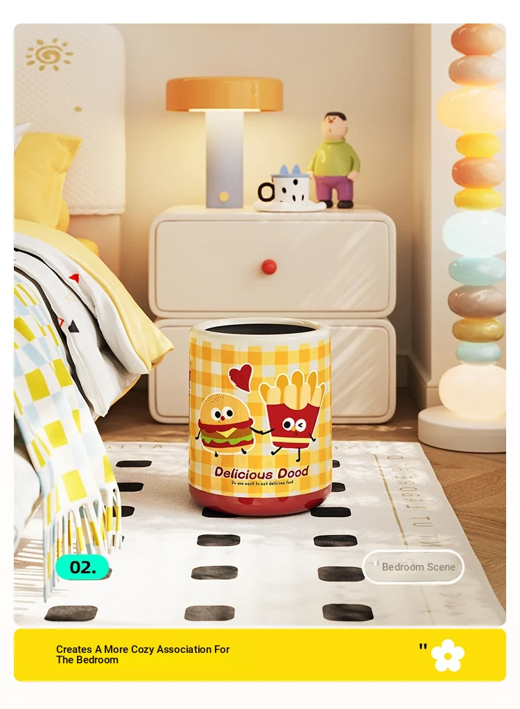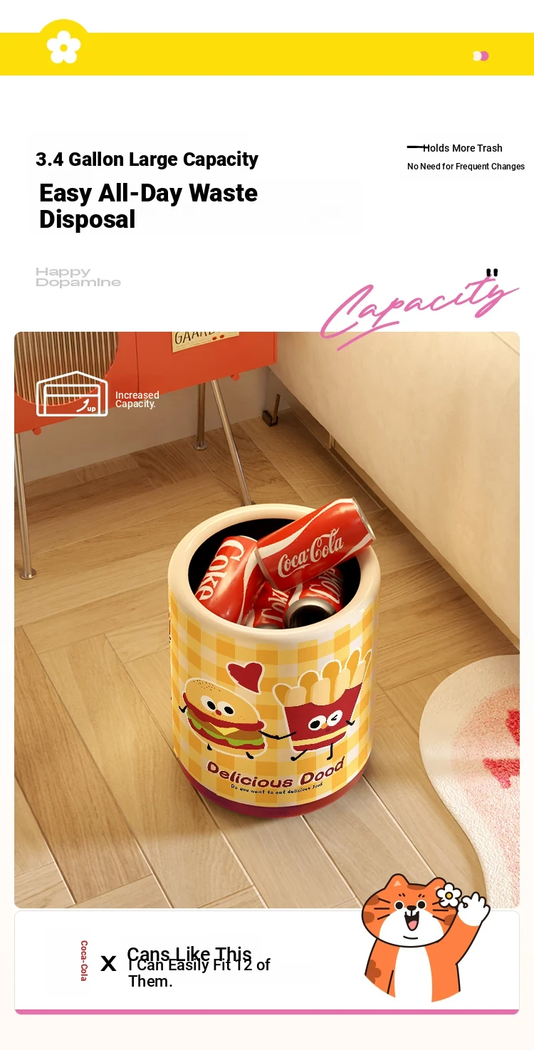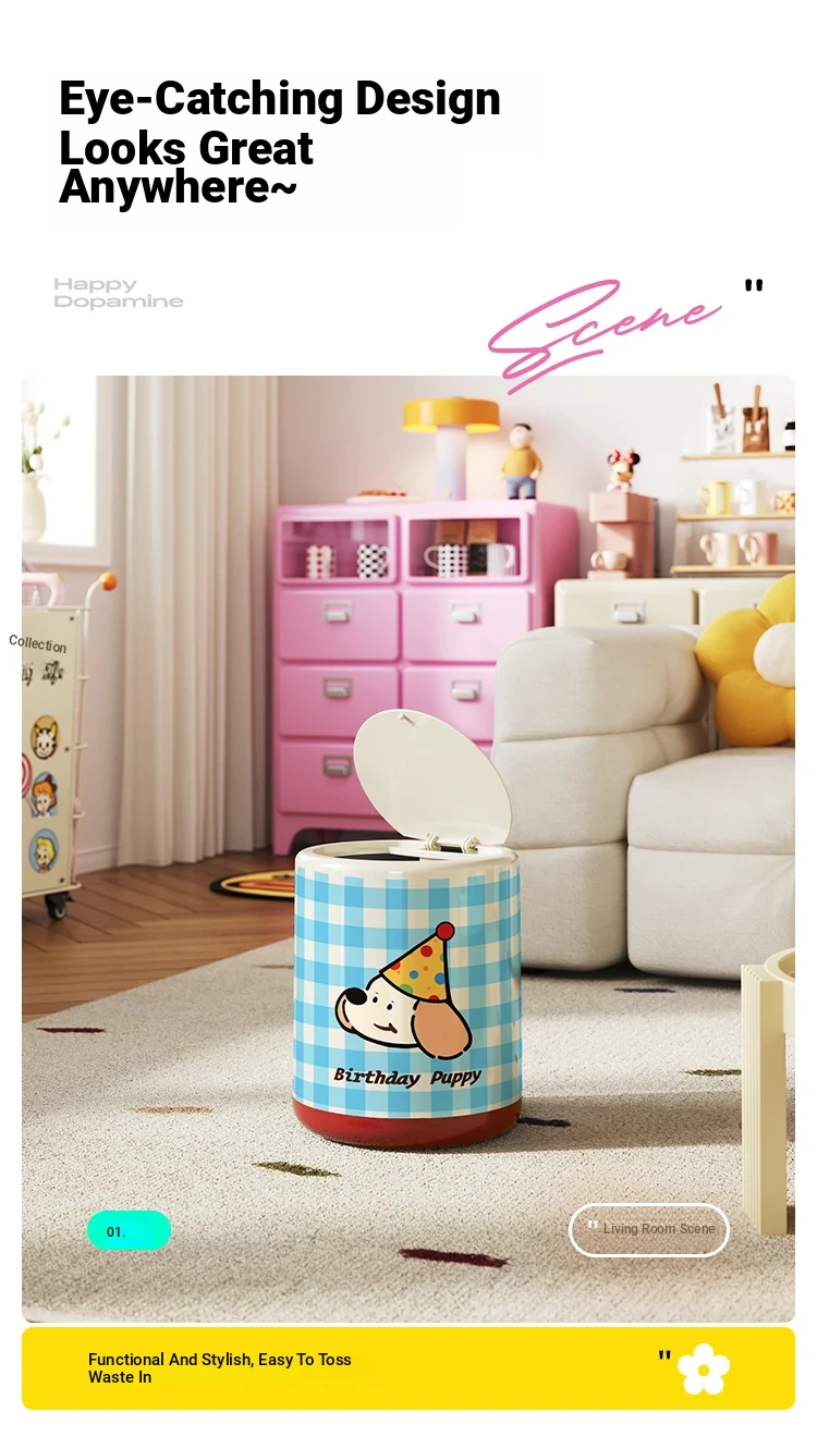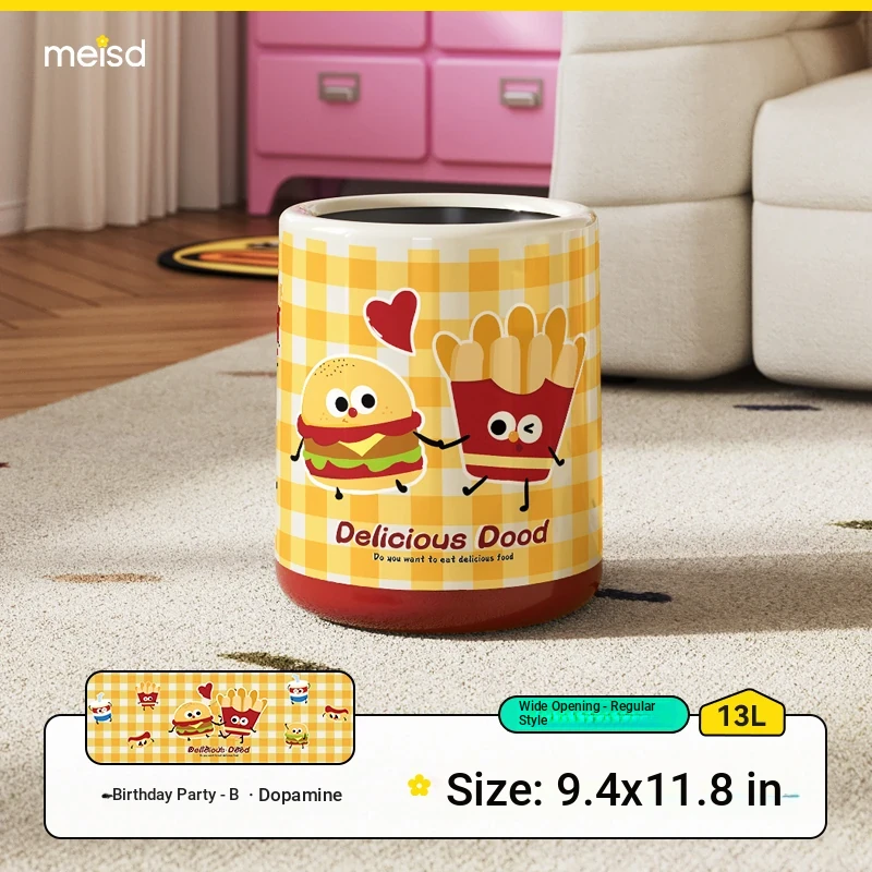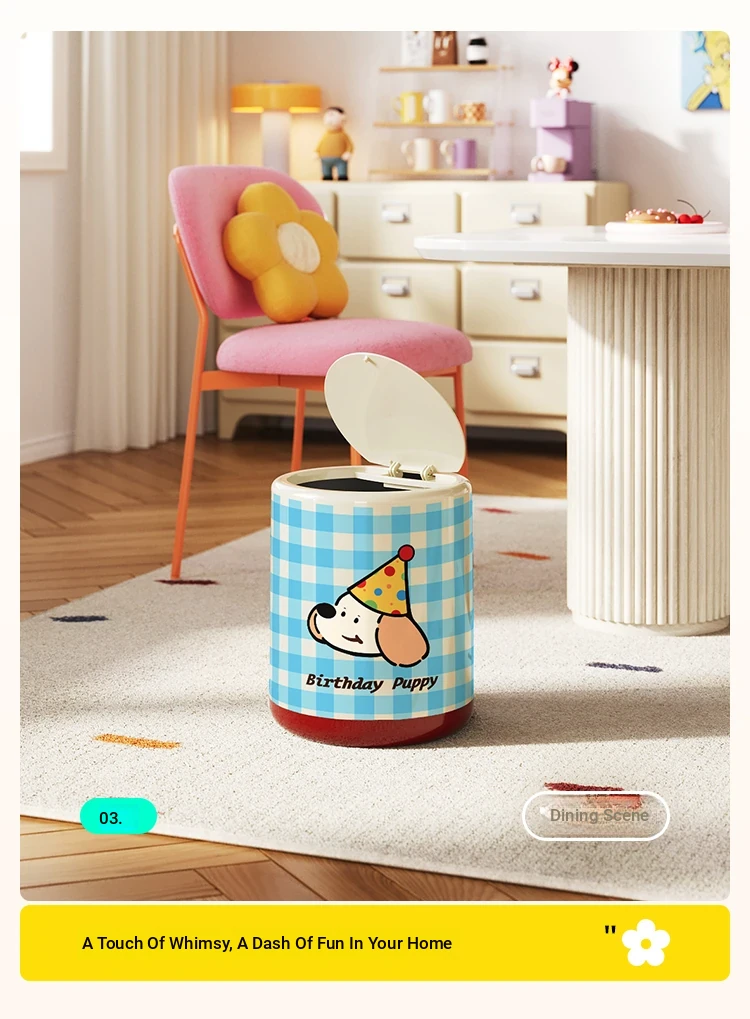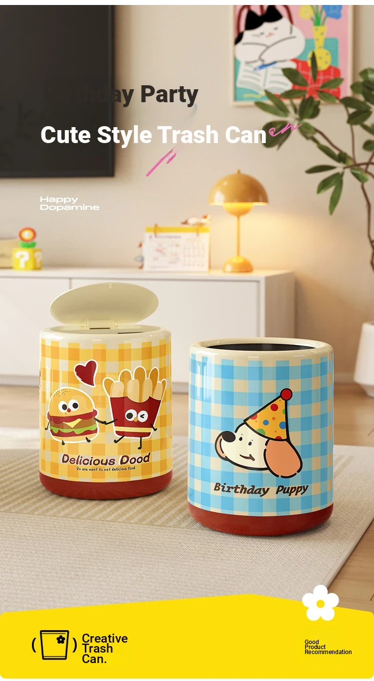 Meisdar Cartoon Lid Trash Can - Large Capacity for Home Use, Perfect for Living Room, Kitchen, and Bathroom - Stylish Cream Color for a Fun and Functional Touch!