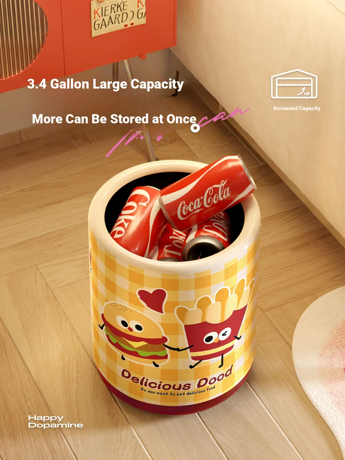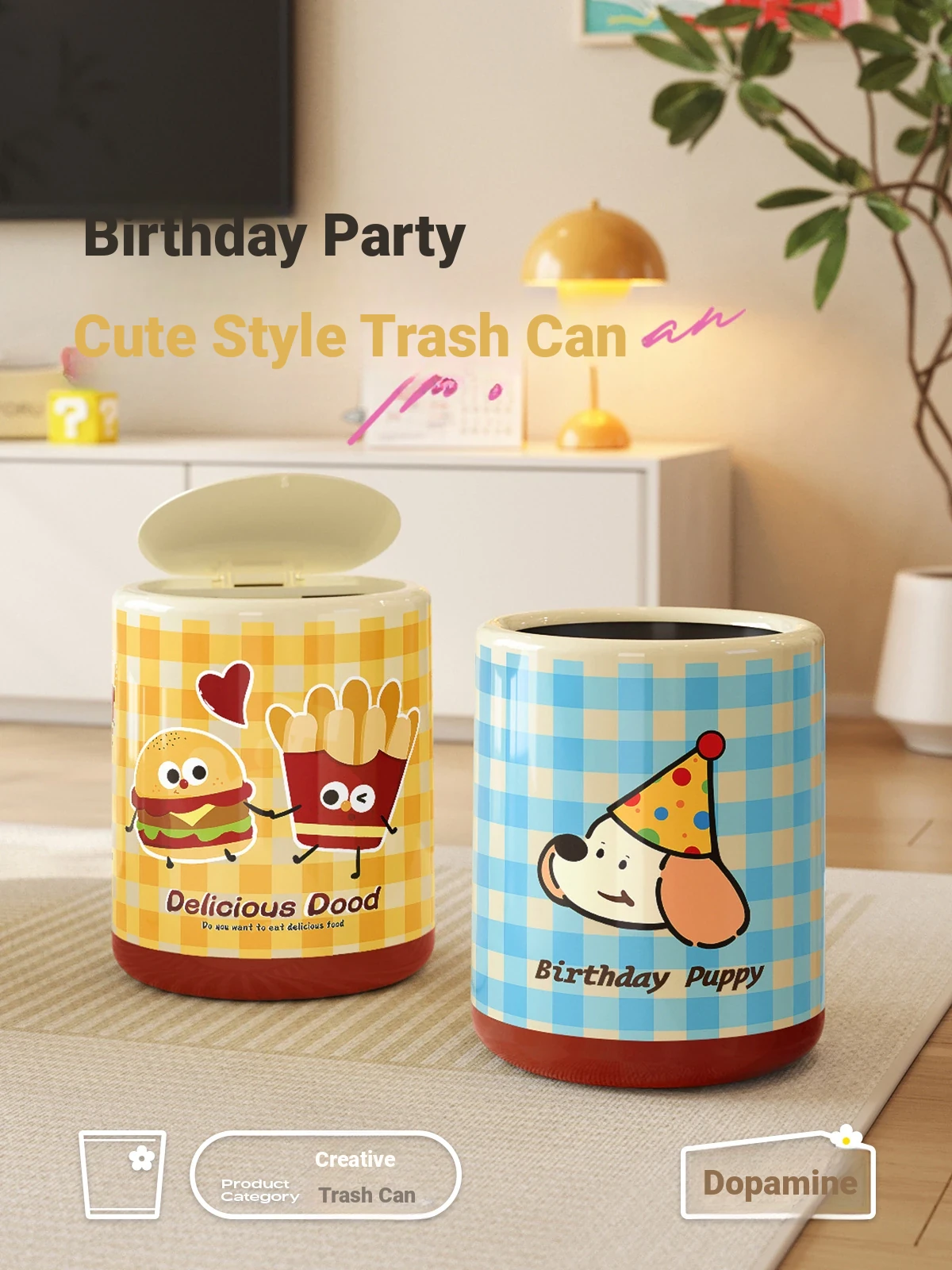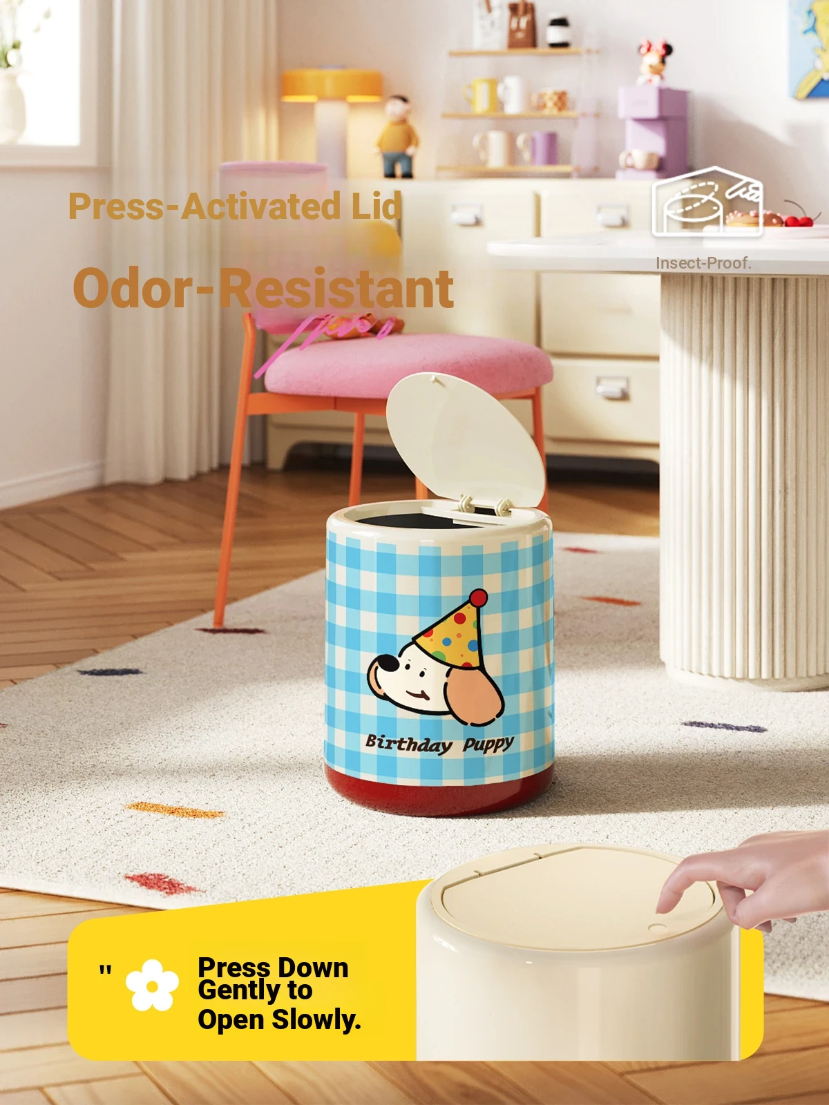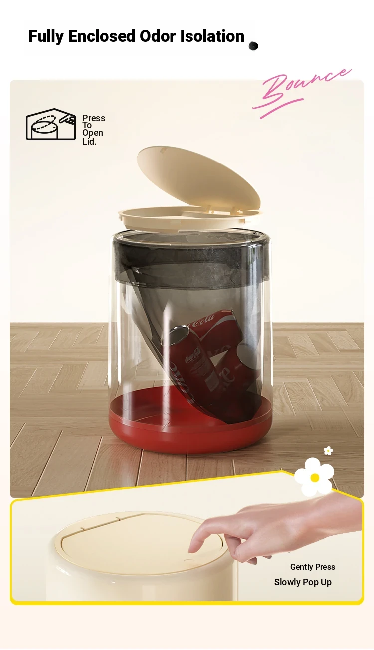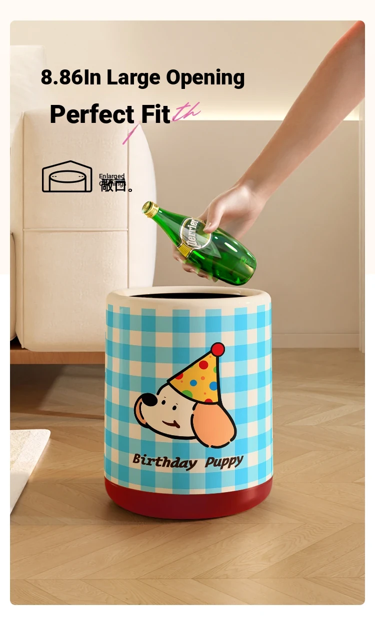 Meisdar Cartoon Lid Trash Can - Large Capacity for Home Use, Perfect for Living Room, Kitchen, and Bathroom - Stylish Cream Color for a Fun and Functional Touch!