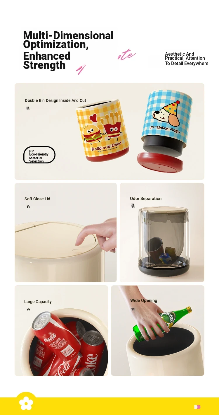 Internal and external double barrel design⭐Hidden Trash Bag