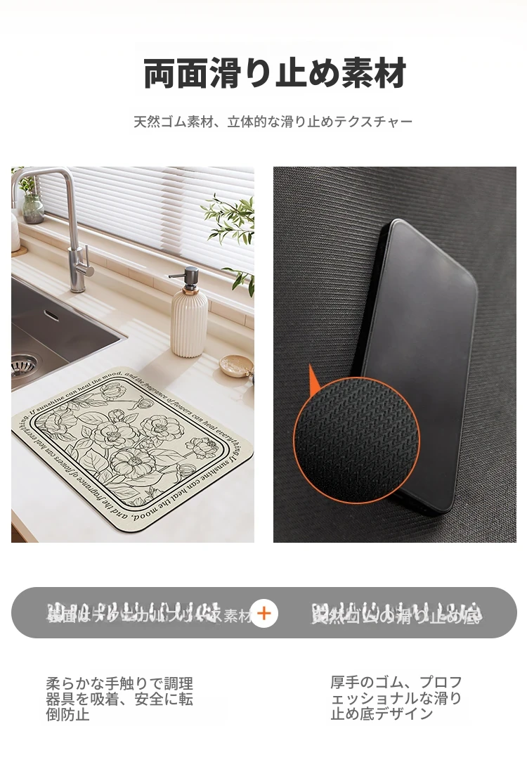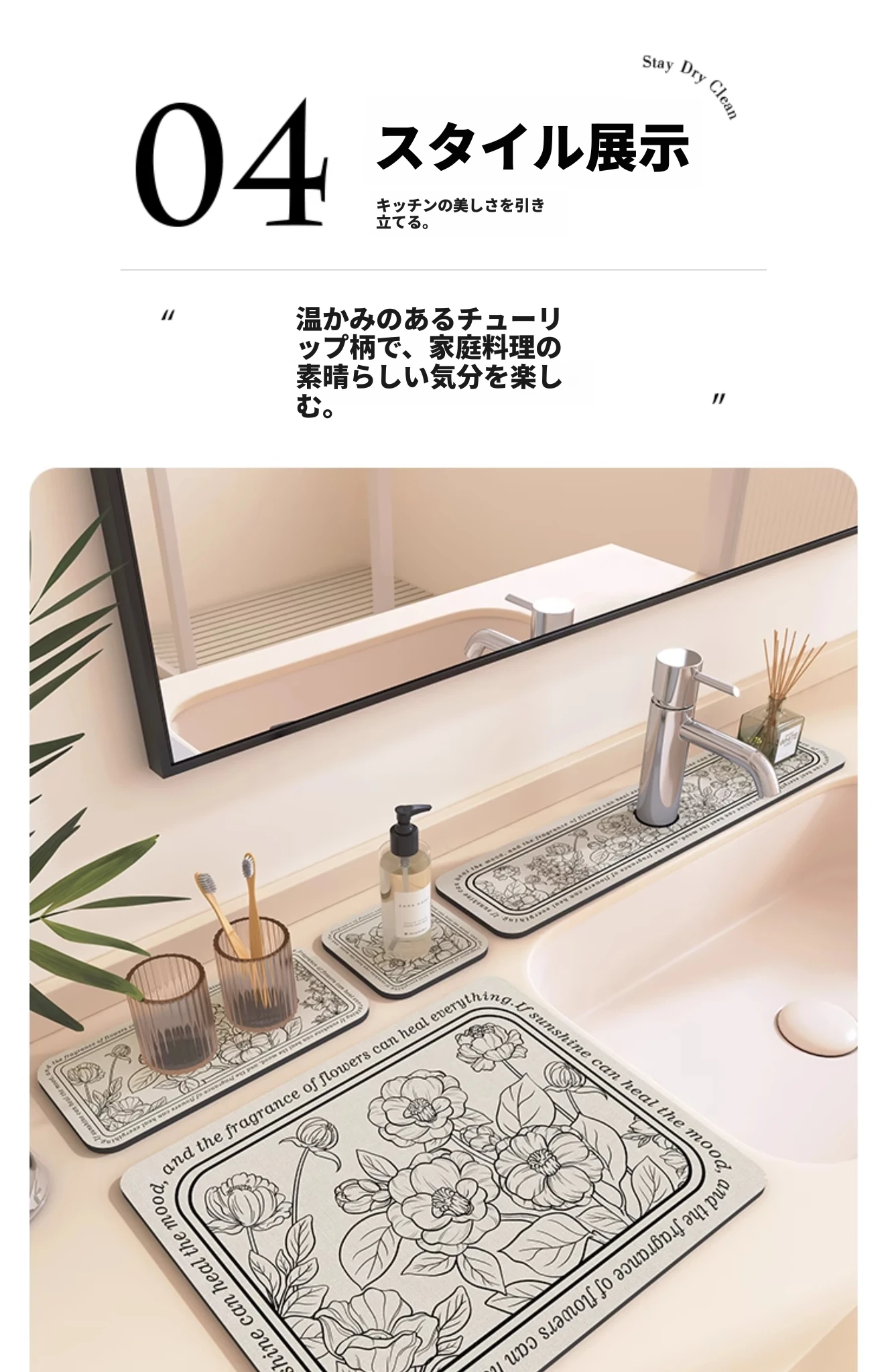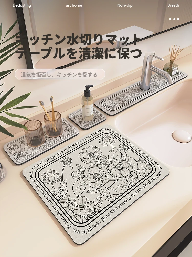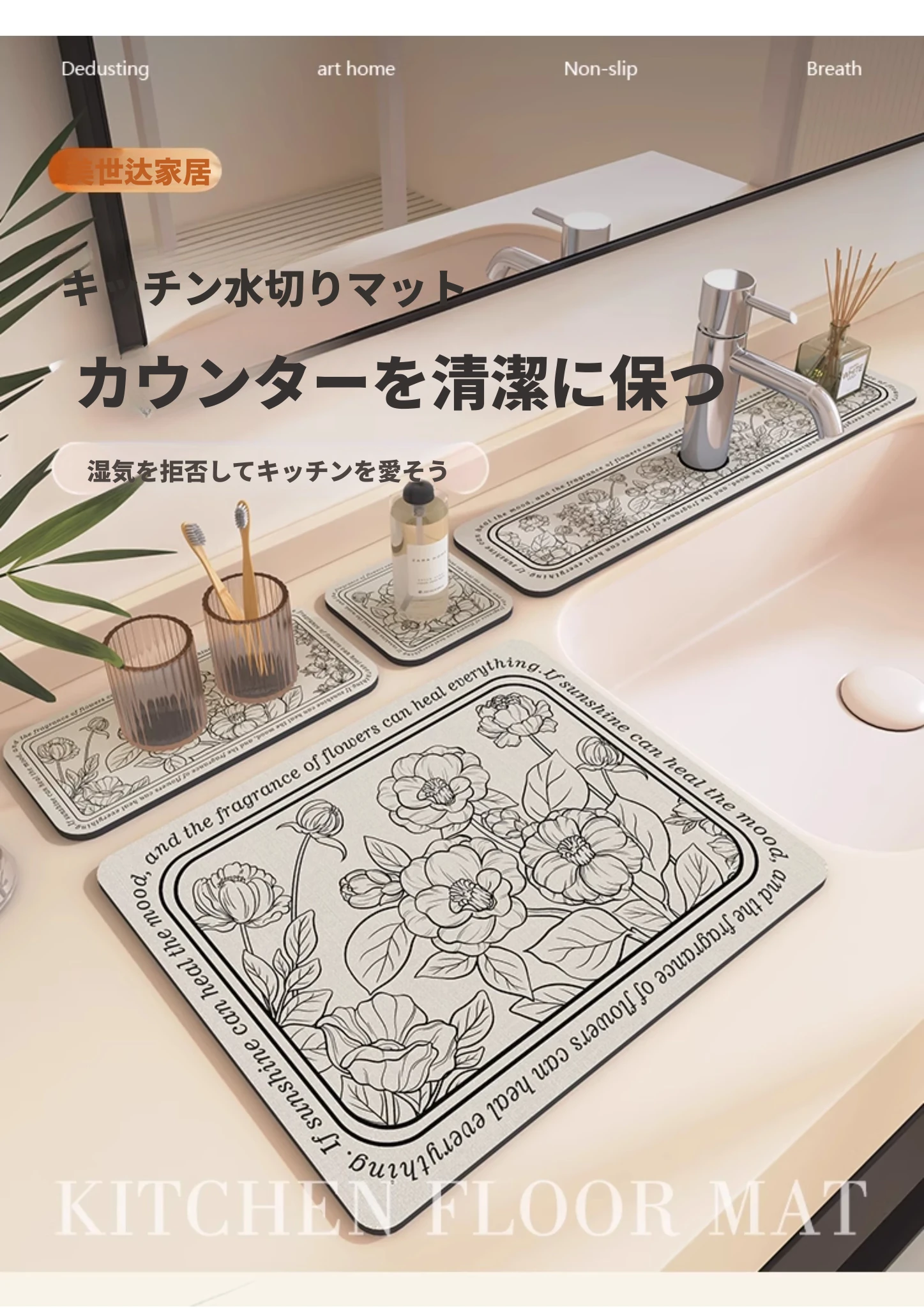 美世达速乾吸水マット - キッチンや洗面台に最適!水がすぐに吸収され、いつでも清潔で快適な空間を実現。歯ブラシカップやバスルームにもぴったり!