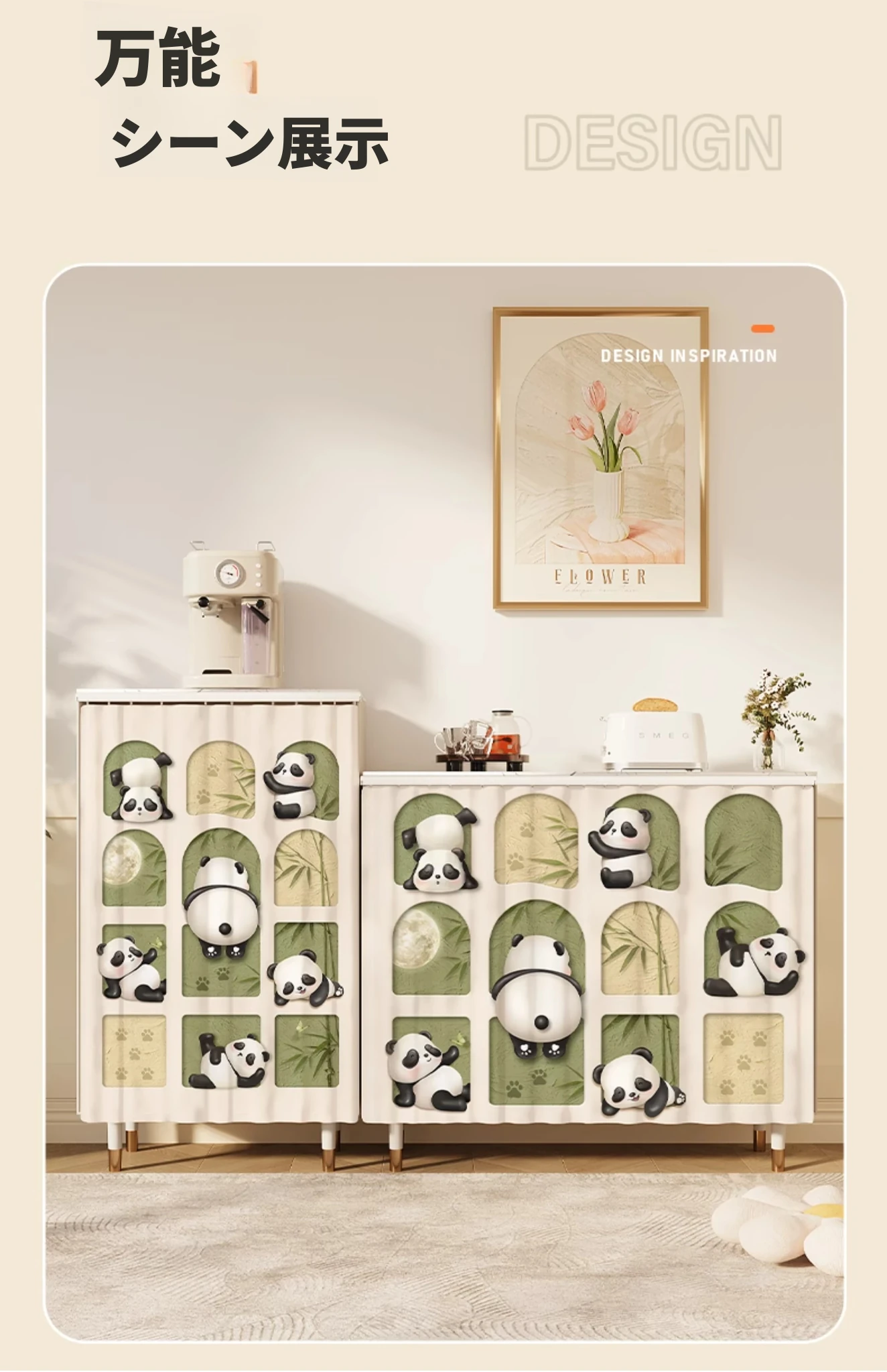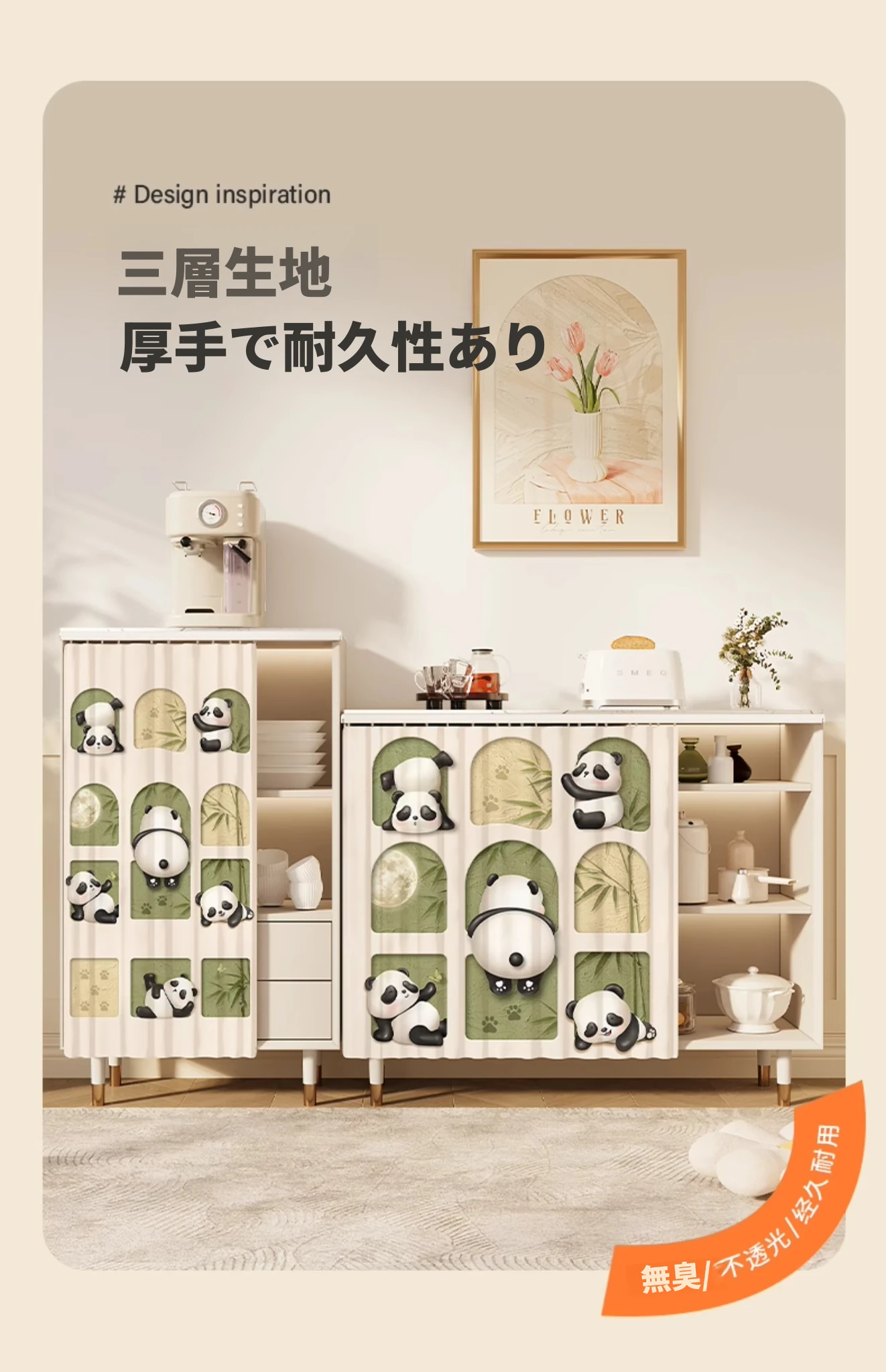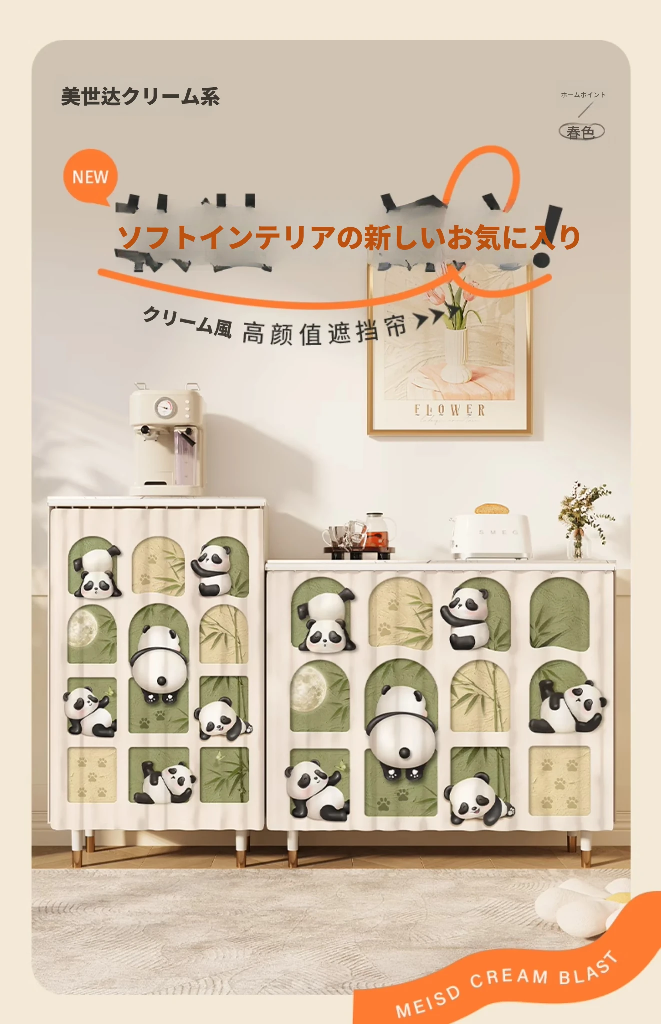 美世达 小熊猫 収納キャビネット用カーテン - おしゃれで可愛いデザイン、靴箱や雑貨をスマートに隠す防塵カーテン!扉なしで簡単アクセス、生活空間をスッキリ整える必需品です。