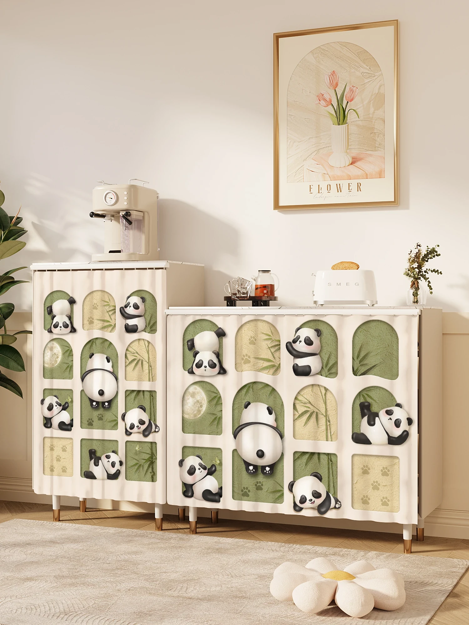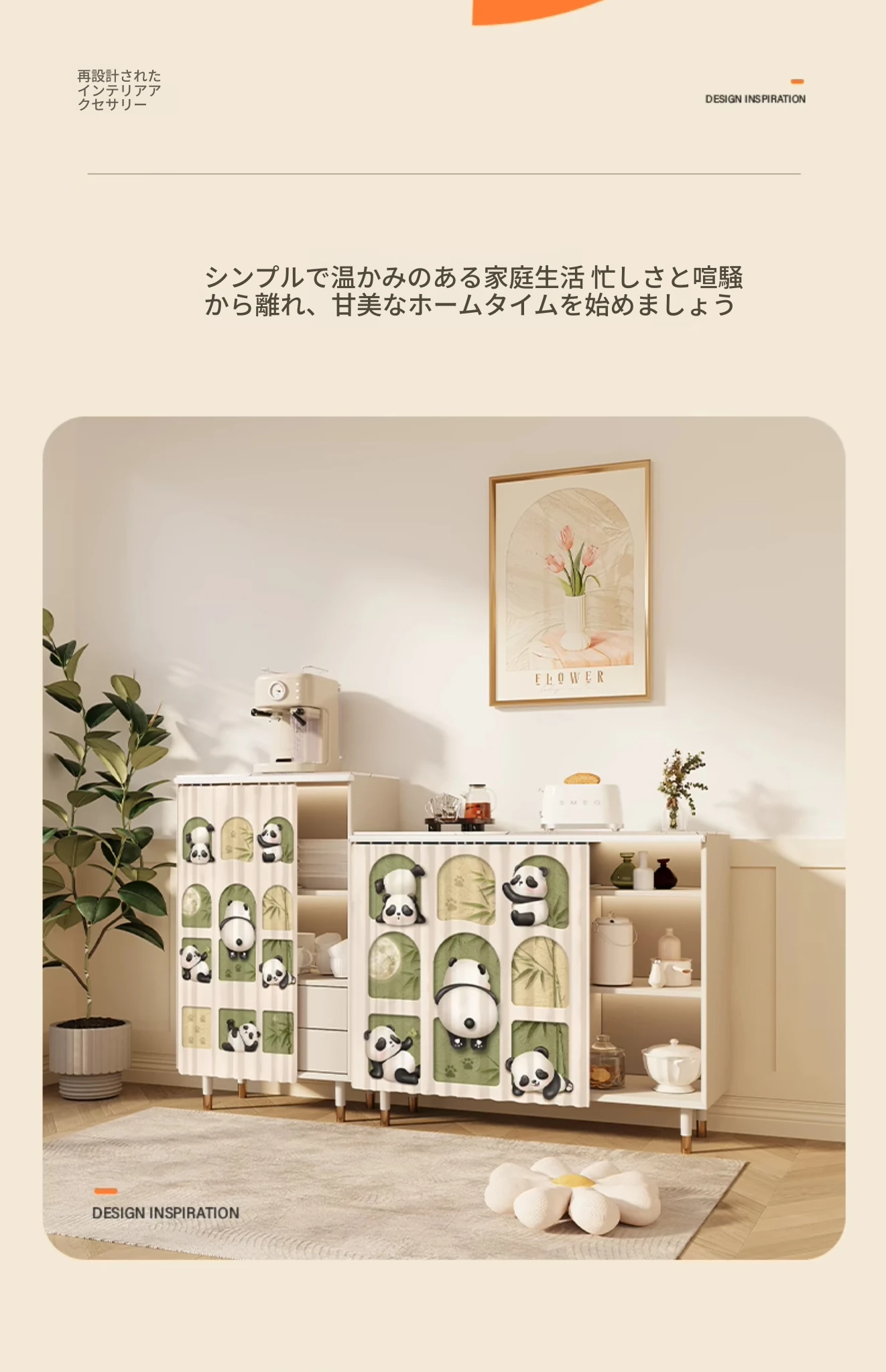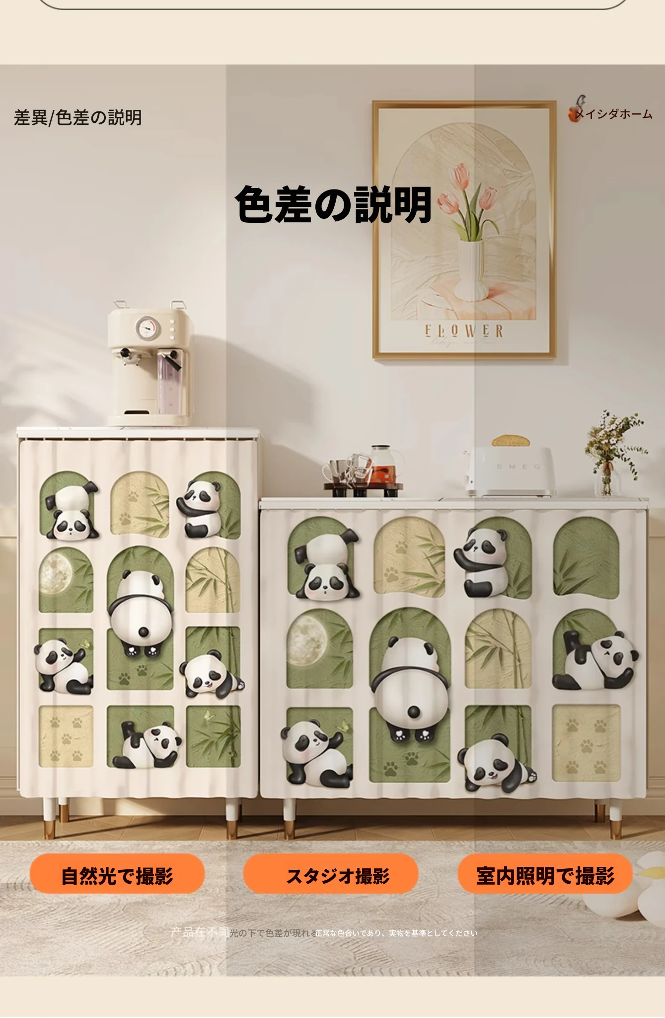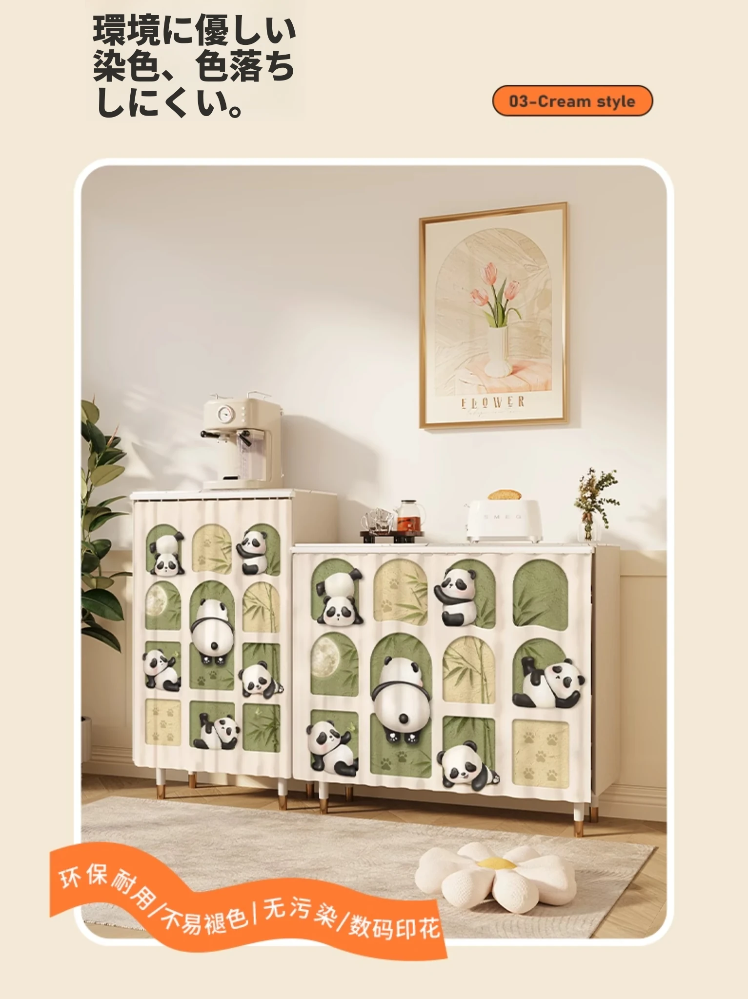美世达 小熊猫 収納キャビネット用カーテン - おしゃれで可愛いデザイン、靴箱や雑貨をスマートに隠す防塵カーテン!扉なしで簡単アクセス、生活空間をスッキリ整える必需品です。