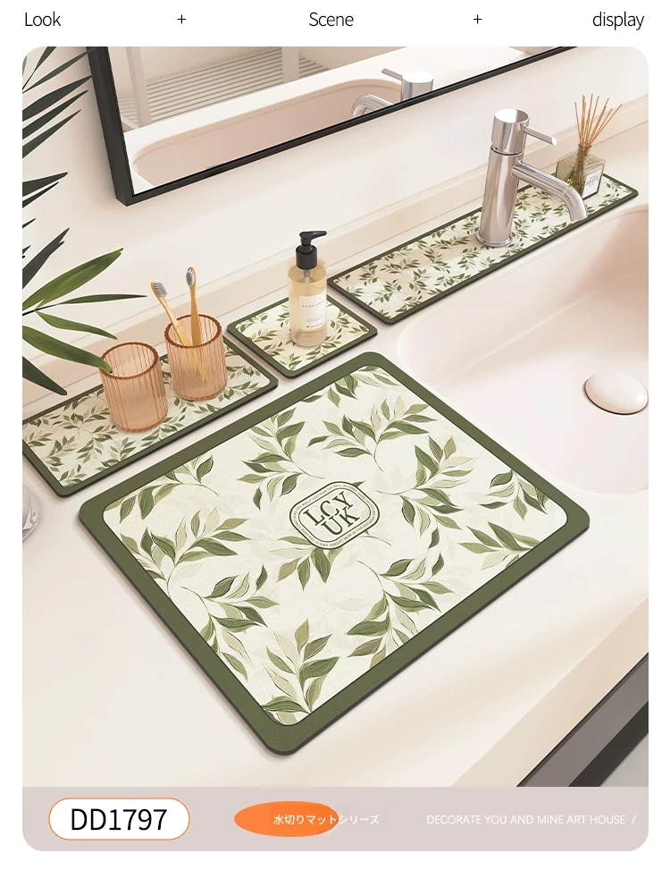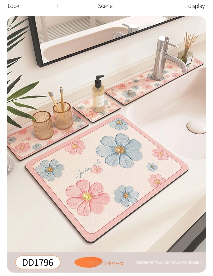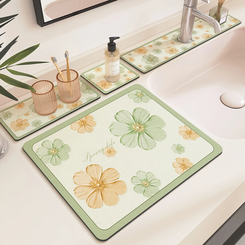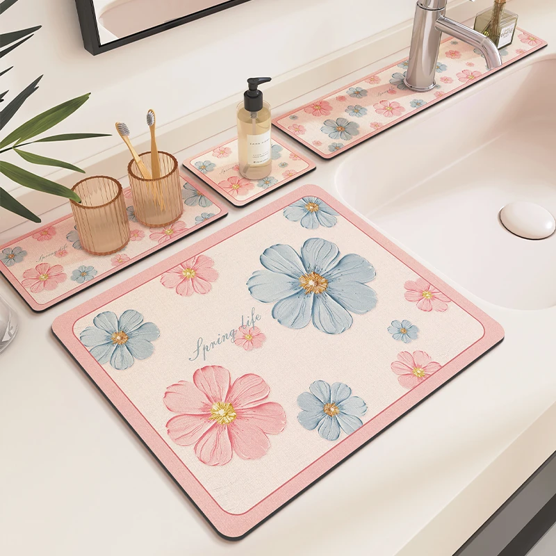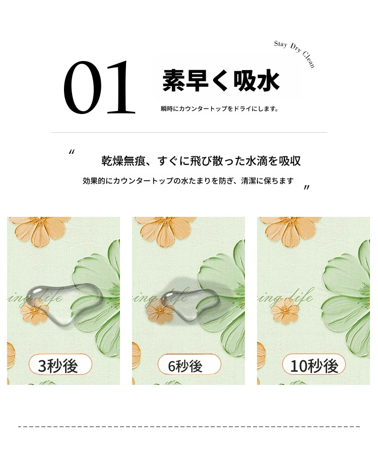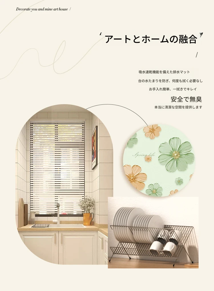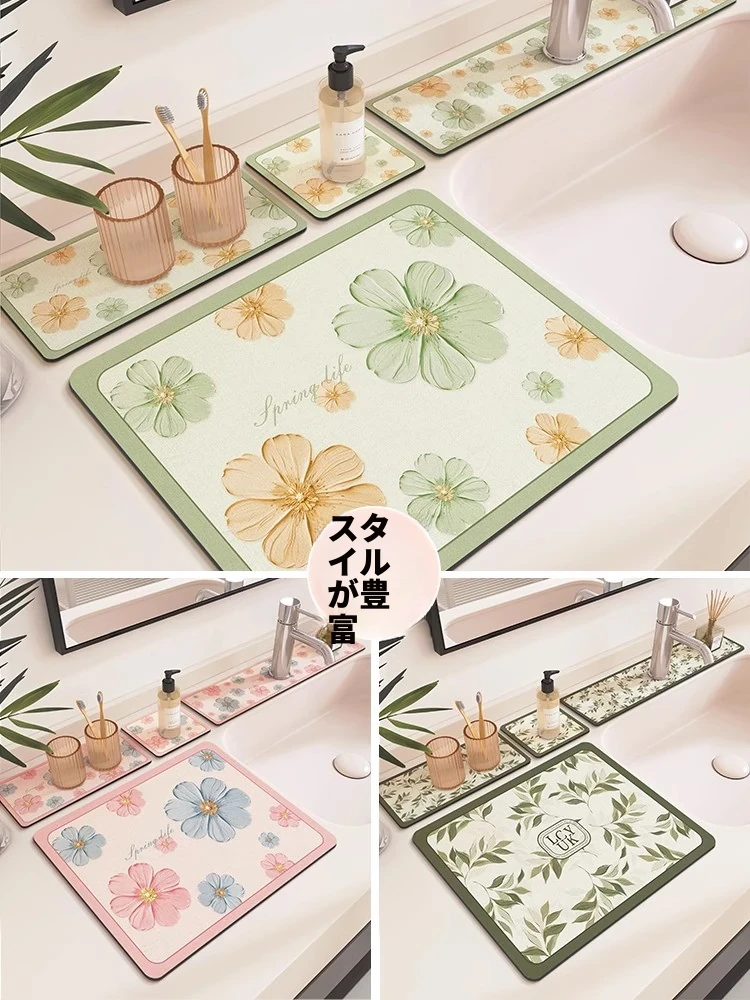 美世达キッチンシンク用吸水マット - カット可能な花柄デザイン、狭いスペースにもフィット!防水・防油汚れで、清潔なキッチンを実現。おしゃれで機能的なアイテムで、毎日の洗い物も楽しく!