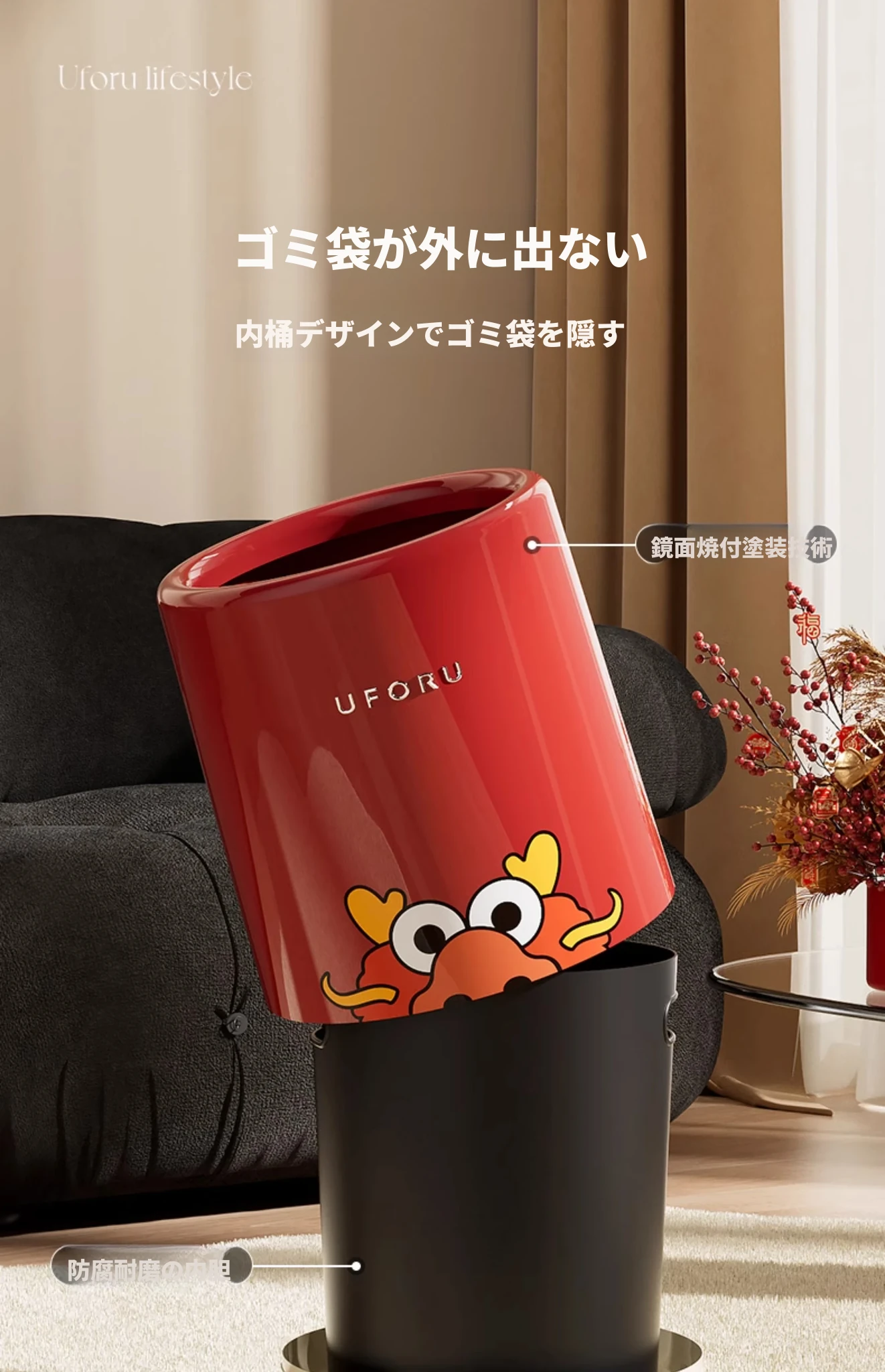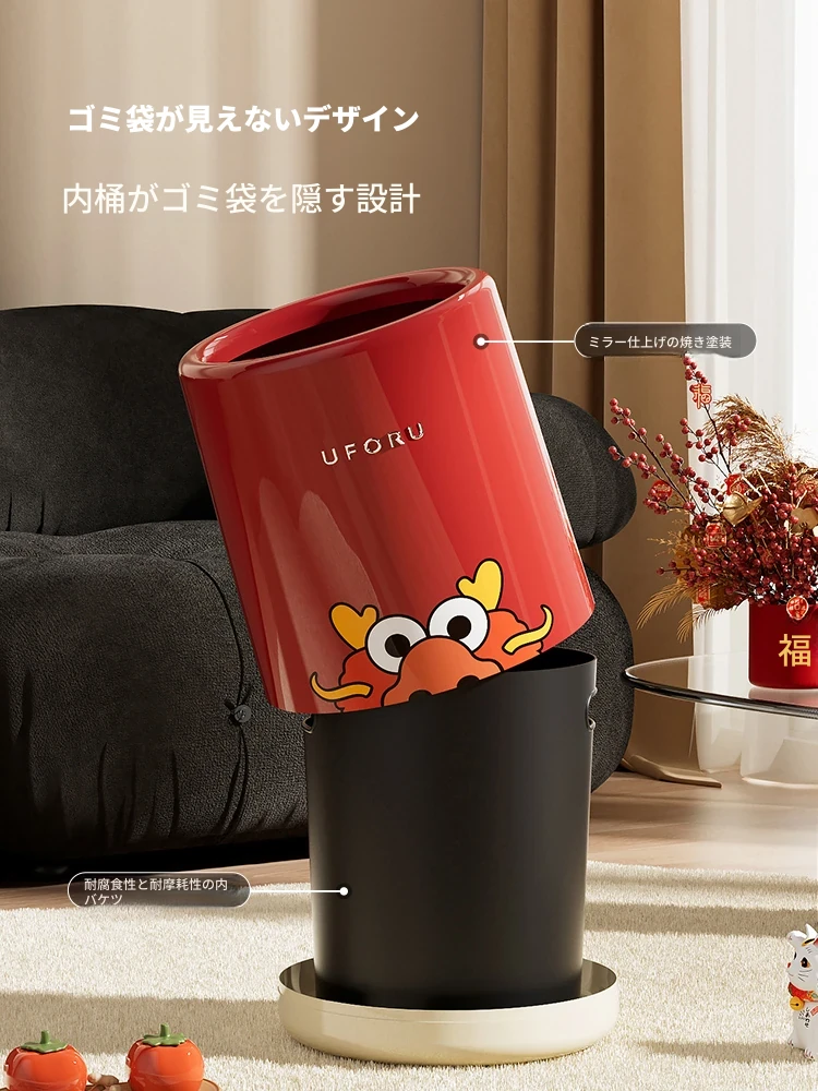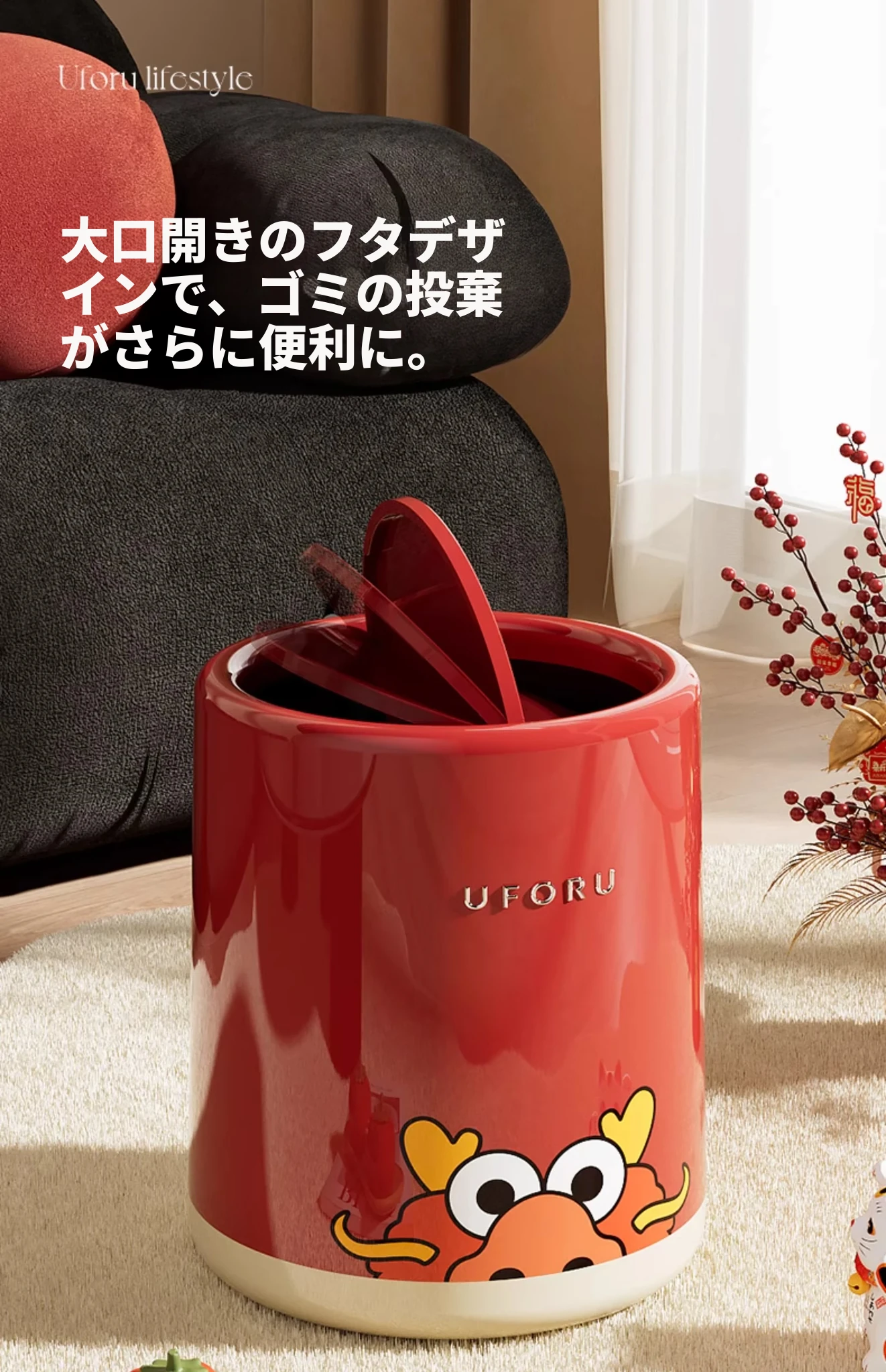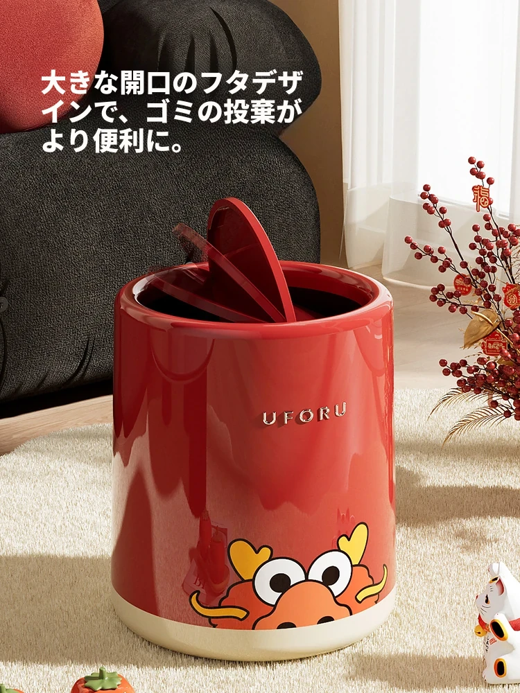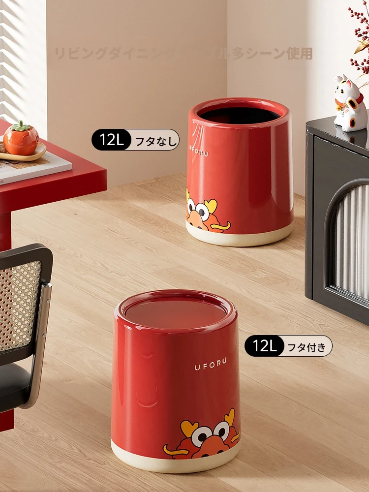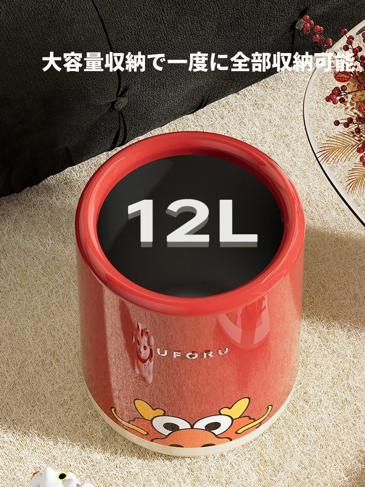 メイシダ龍年新春モデル 大容量ゴミ箱 - 蓋付き、押しボタン式、リビング・寝室・トイレに最適!おしゃれで実用的なデザインで、家中をスッキリ整頓!