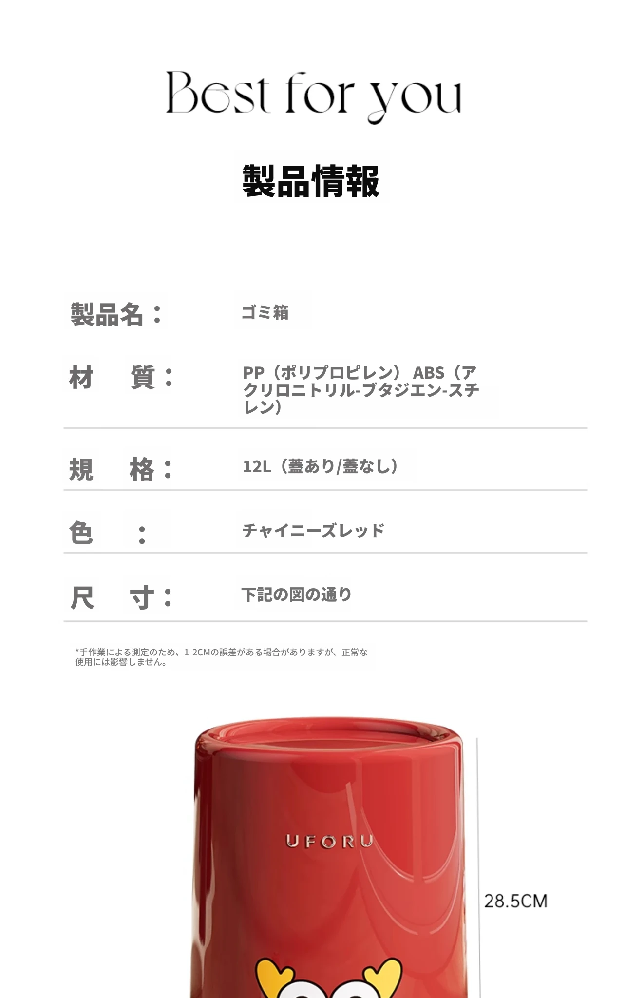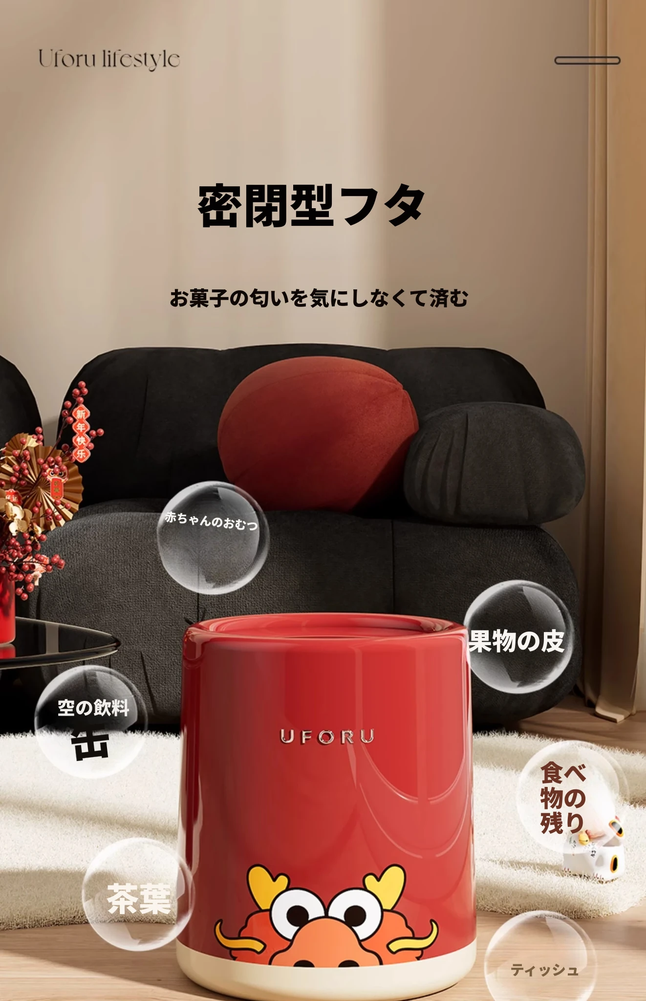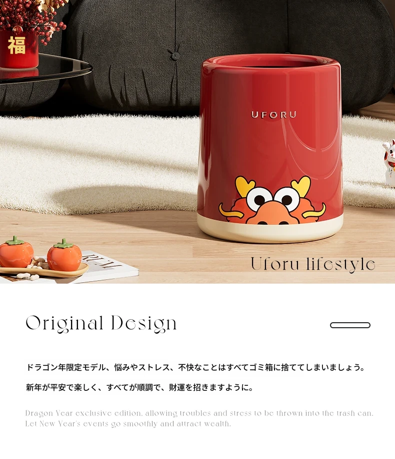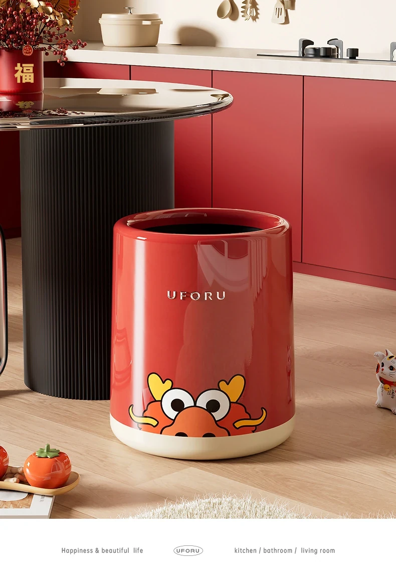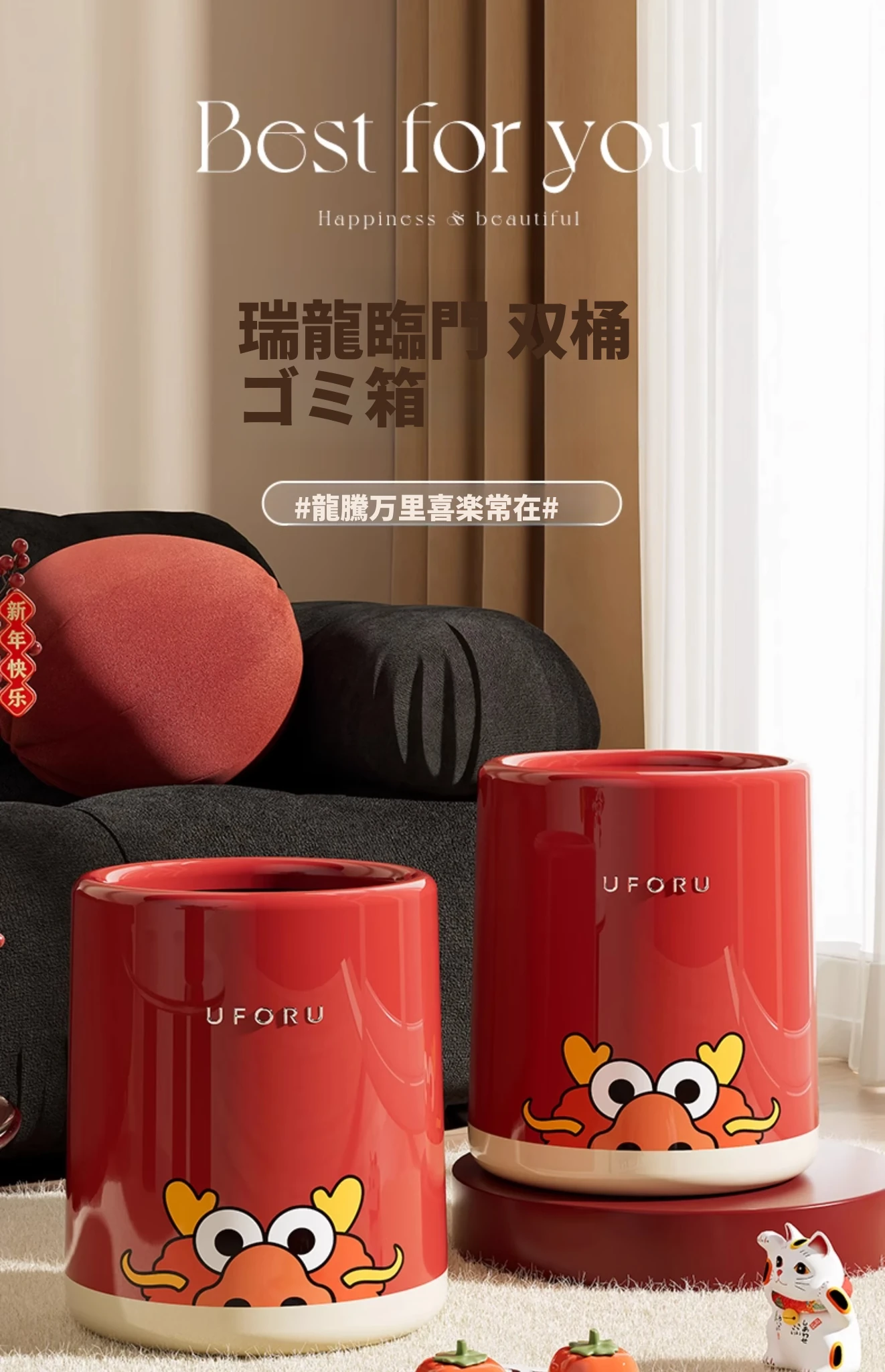 メイシダ龍年新春モデル 大容量ゴミ箱 - 蓋付き、押しボタン式、リビング・寝室・トイレに最適!おしゃれで実用的なデザインで、家中をスッキリ整頓!