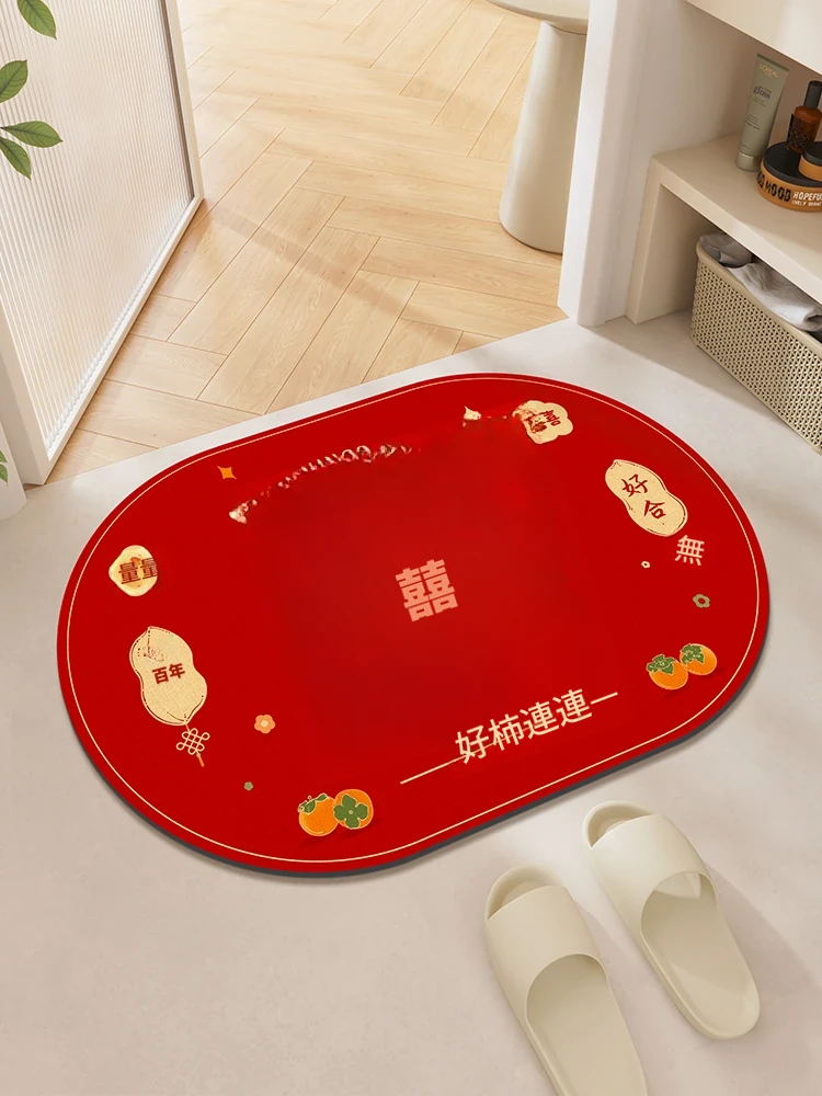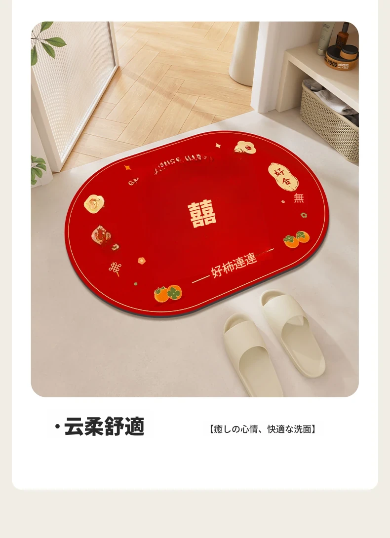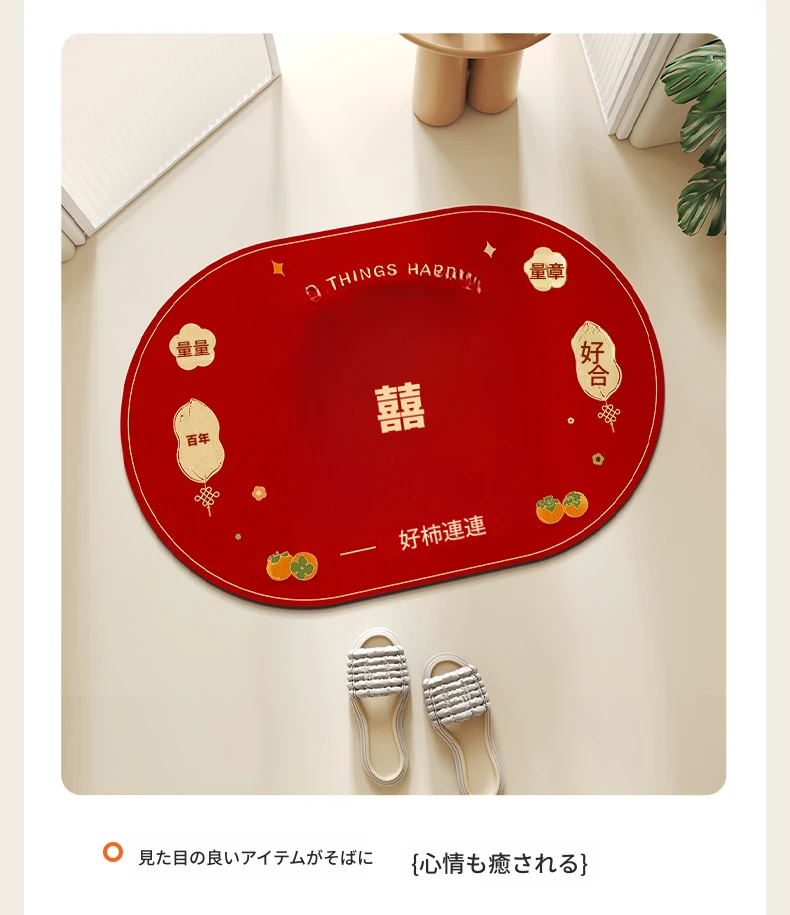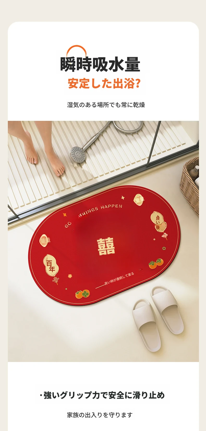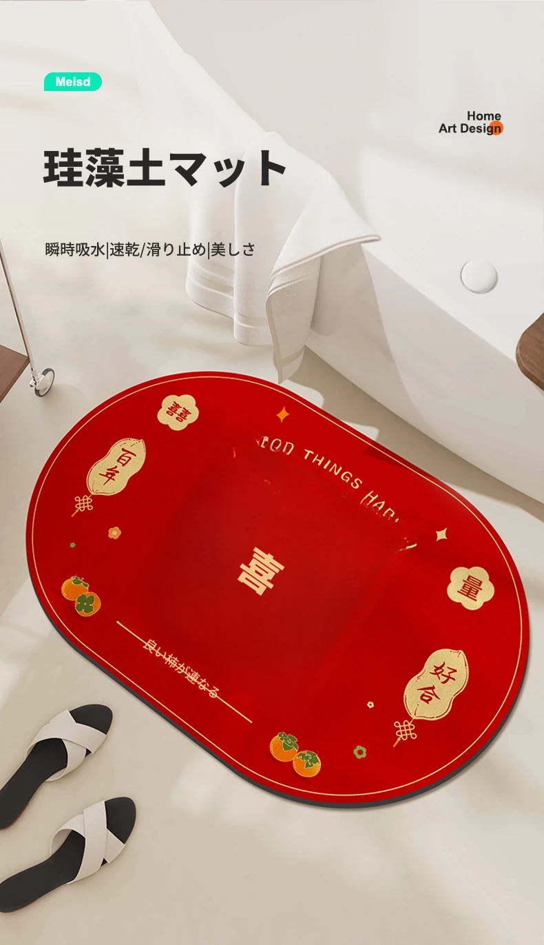 美世达の赤いお祝いバスルーム吸水マット - 滑り止め付き、家庭用新婚カーペット、速乾性のある快適な足元マット!おしゃれで実用的、あなたのバスルームを華やかに彩ります!