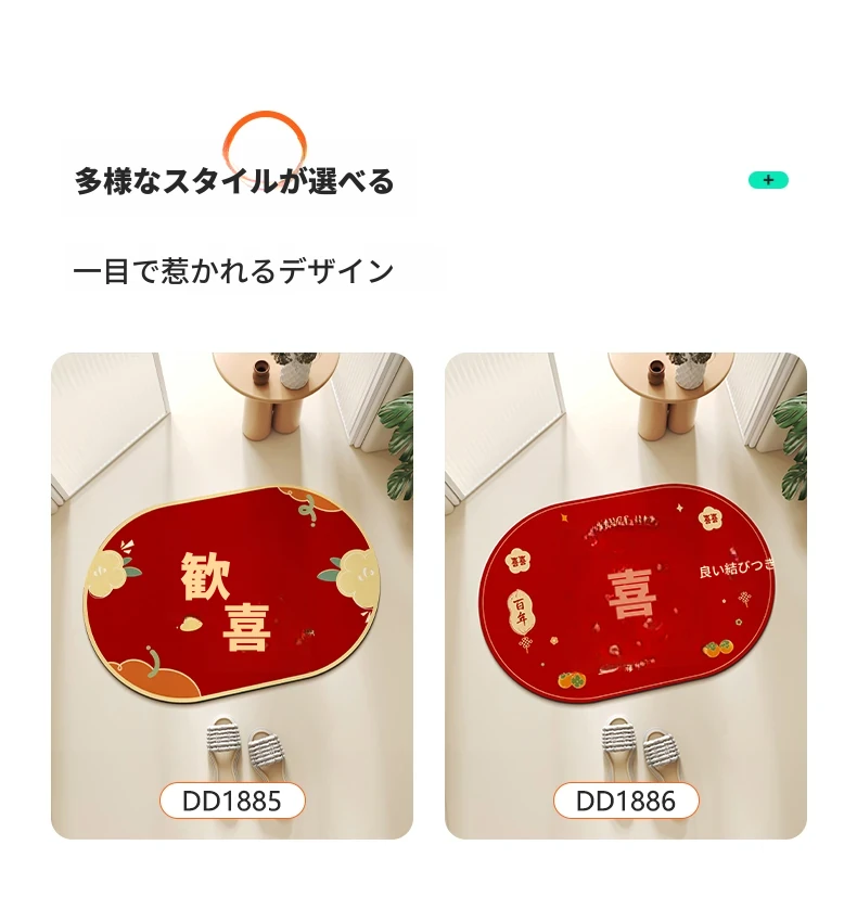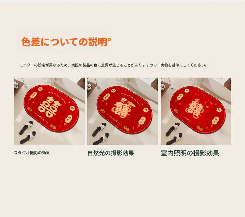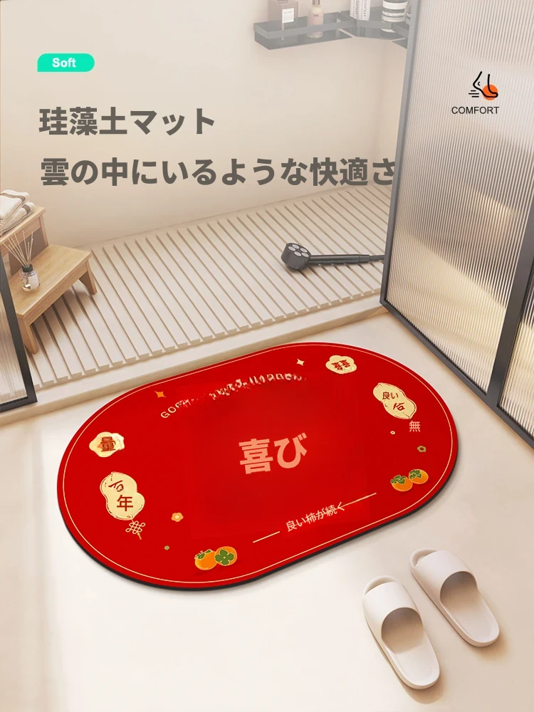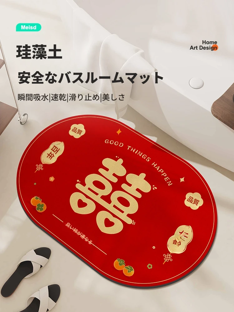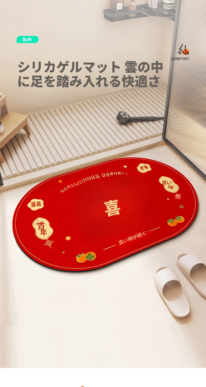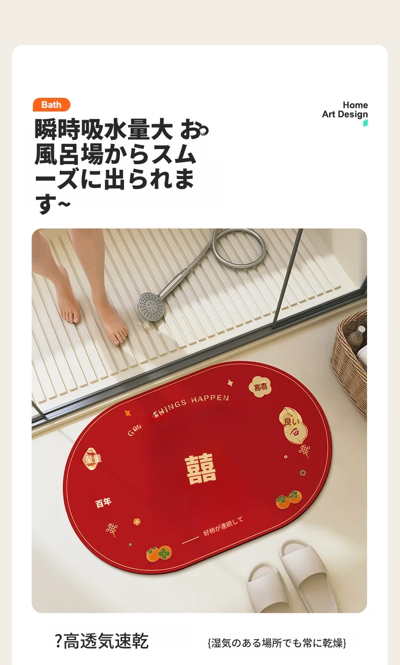 美世达の赤いお祝いバスルーム吸水マット - 滑り止め付き、家庭用新婚カーペット、速乾性のある快適な足元マット!おしゃれで実用的、あなたのバスルームを華やかに彩ります!