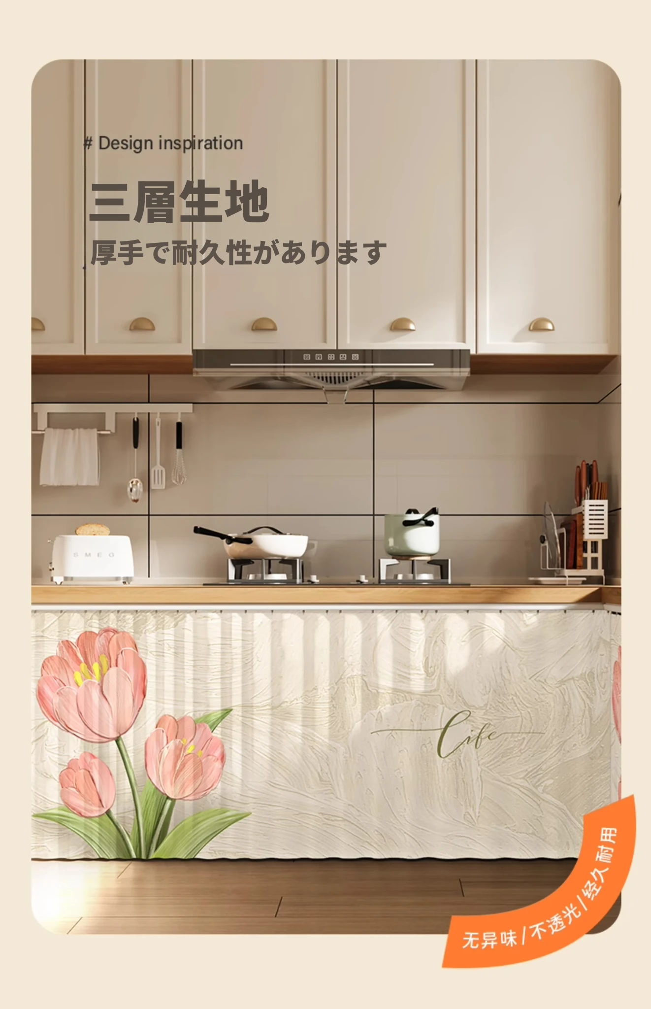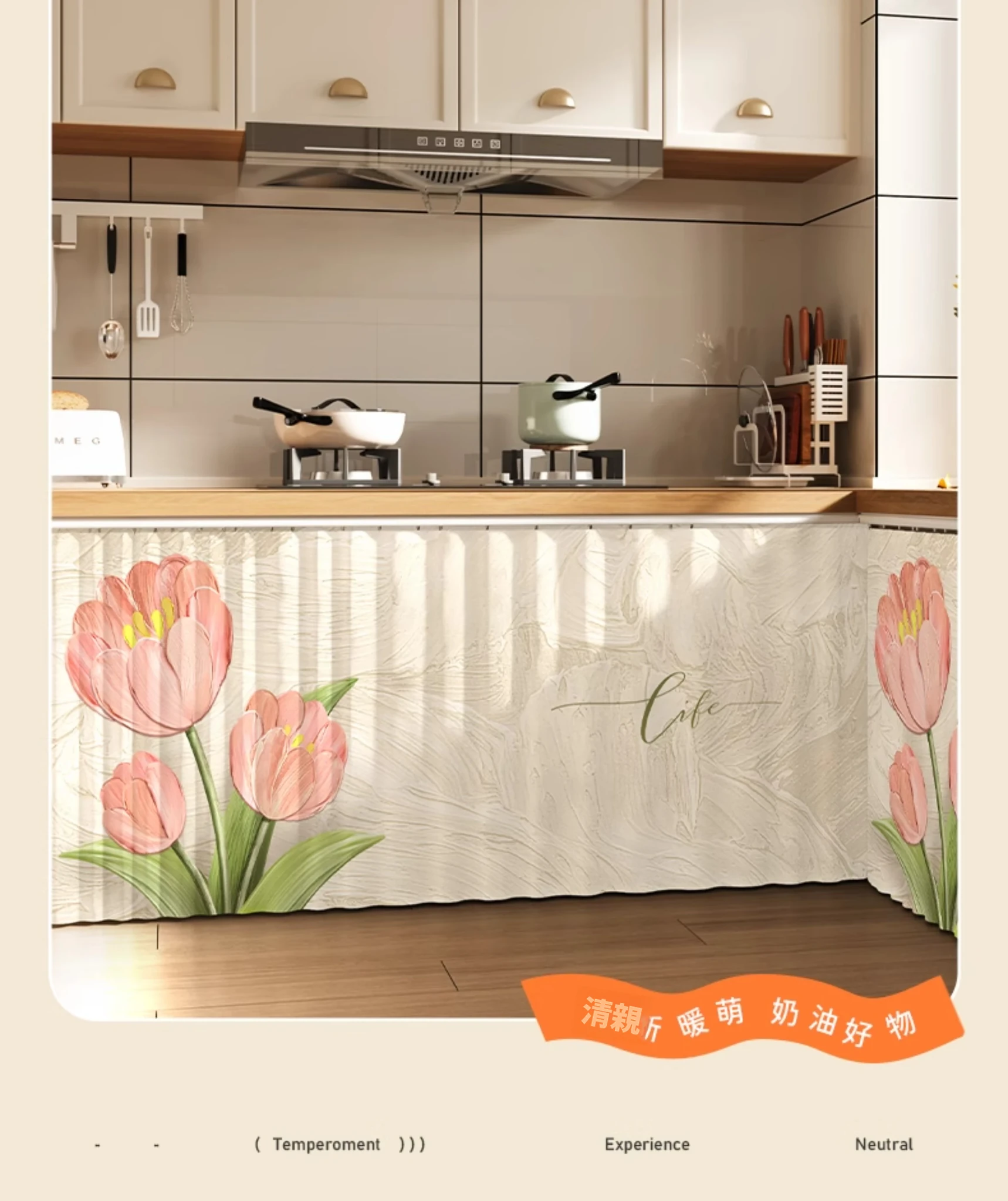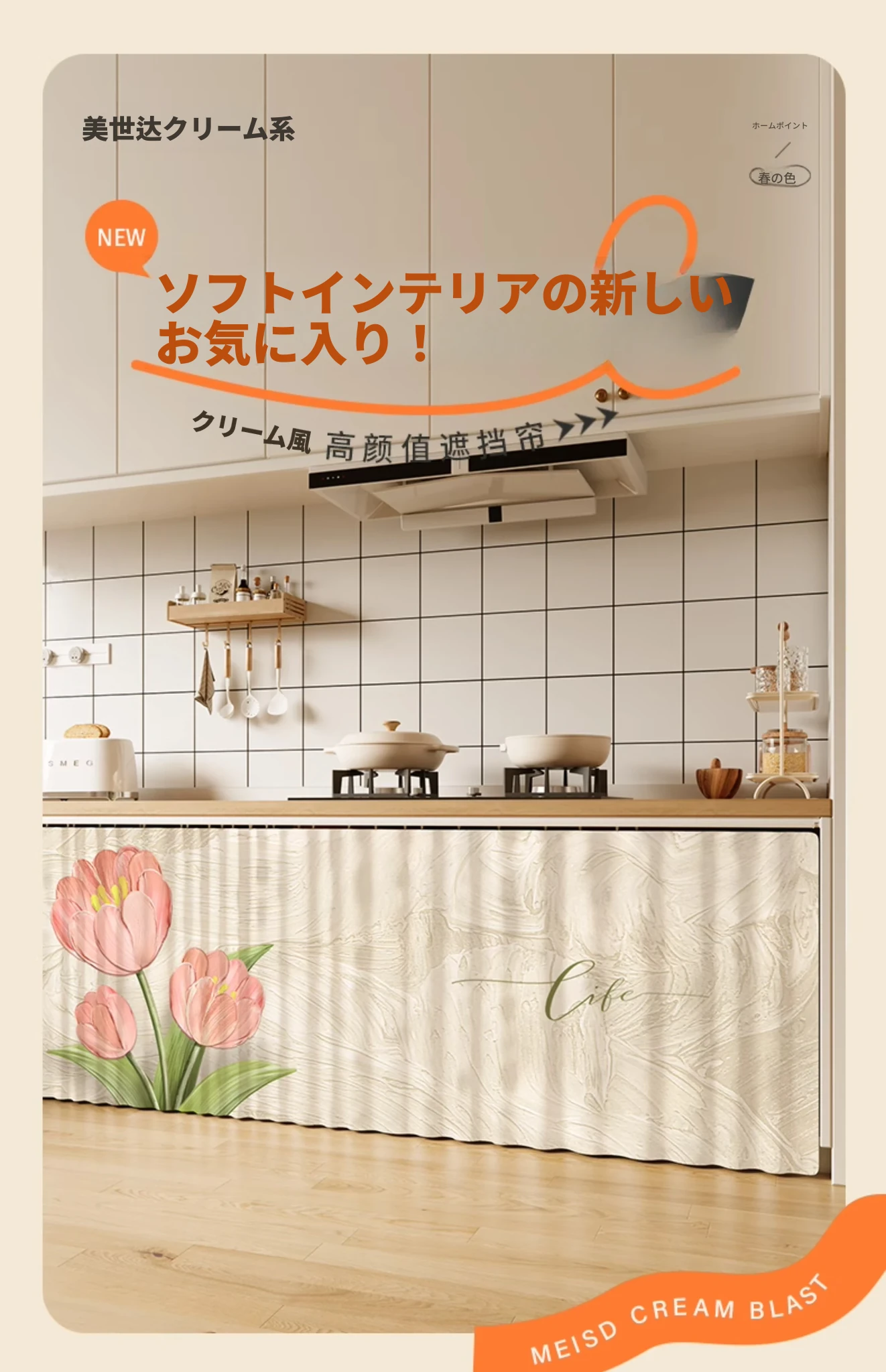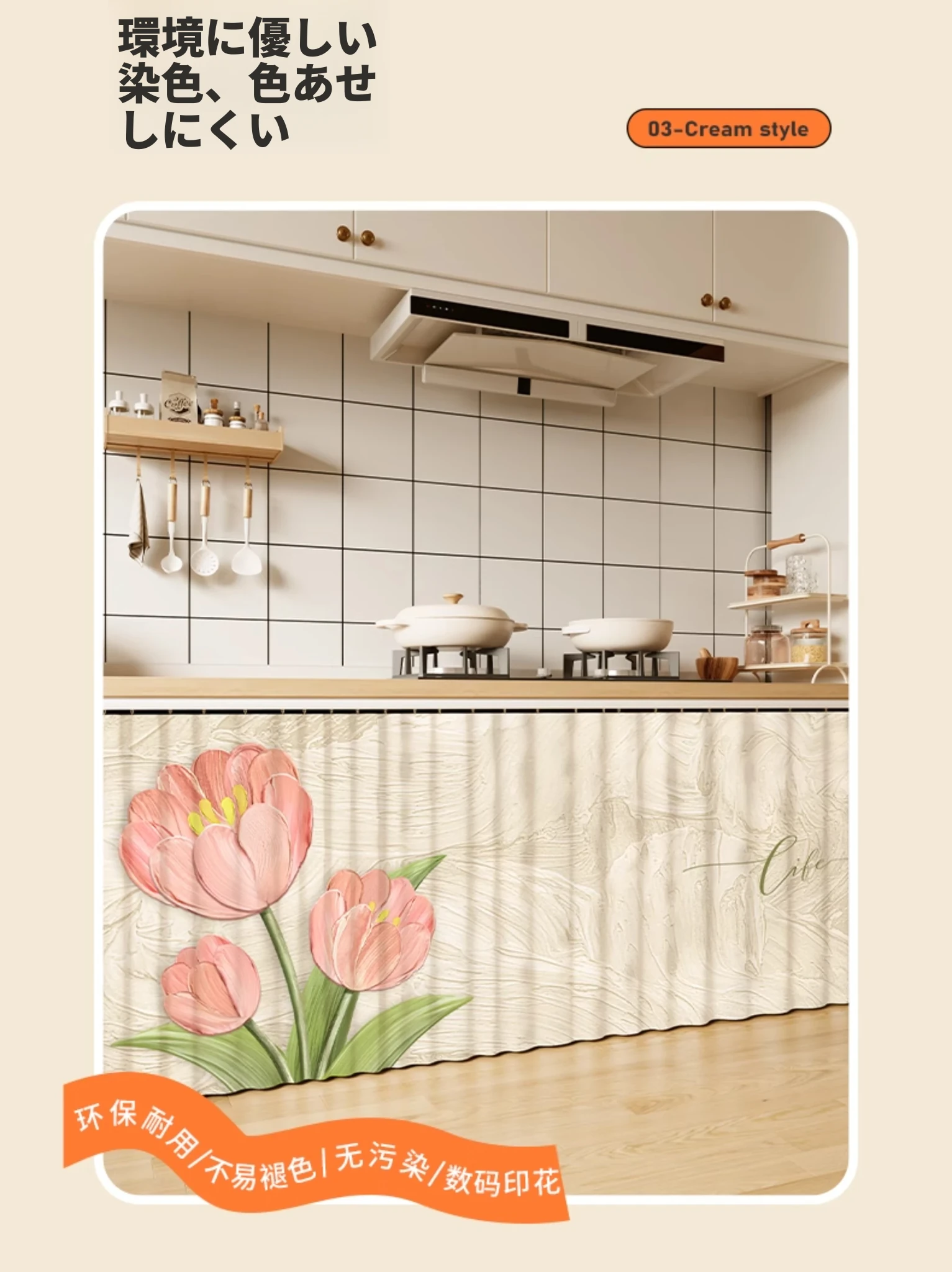 ミスターダキッチンキャビネット用カーテン - ネジ不要で取り付け簡単!防塵・防水で、シューズキャビネットや収納棚をスタイリッシュに隠します。美しいデザインで、散らかりを防ぎ、インテリアを引き立てます!