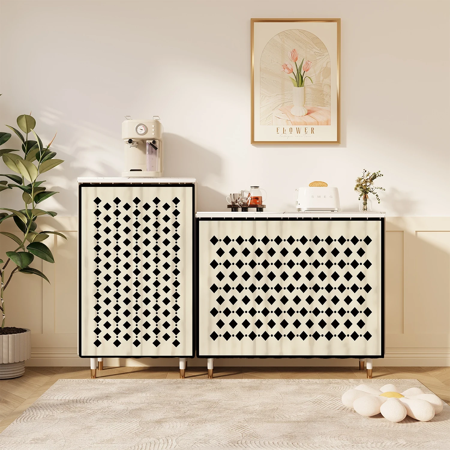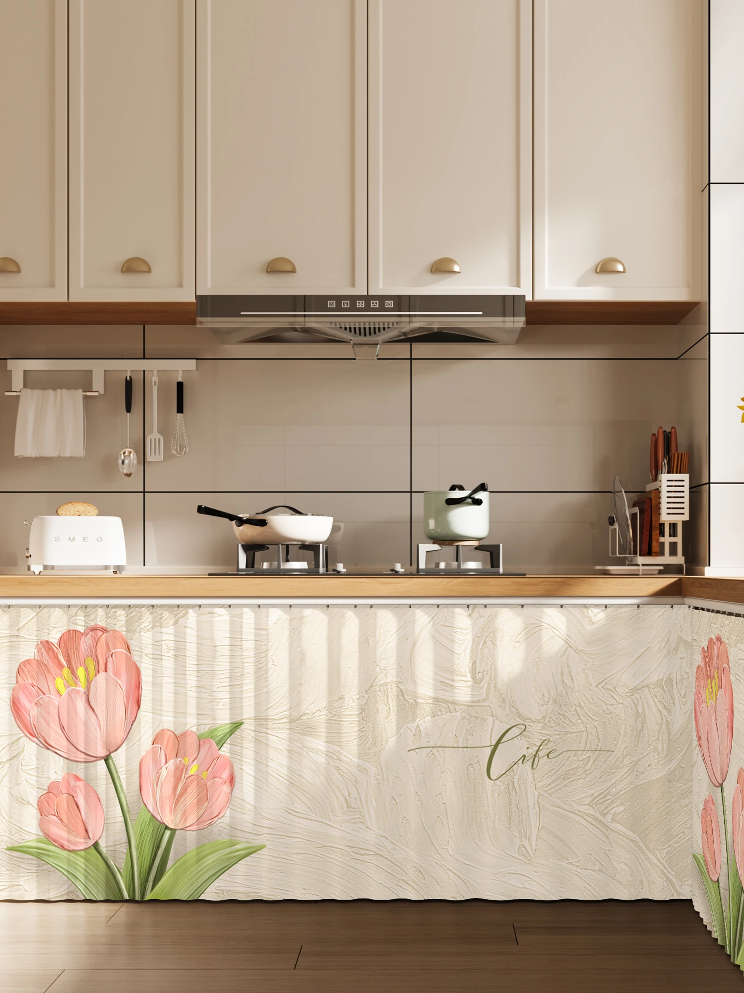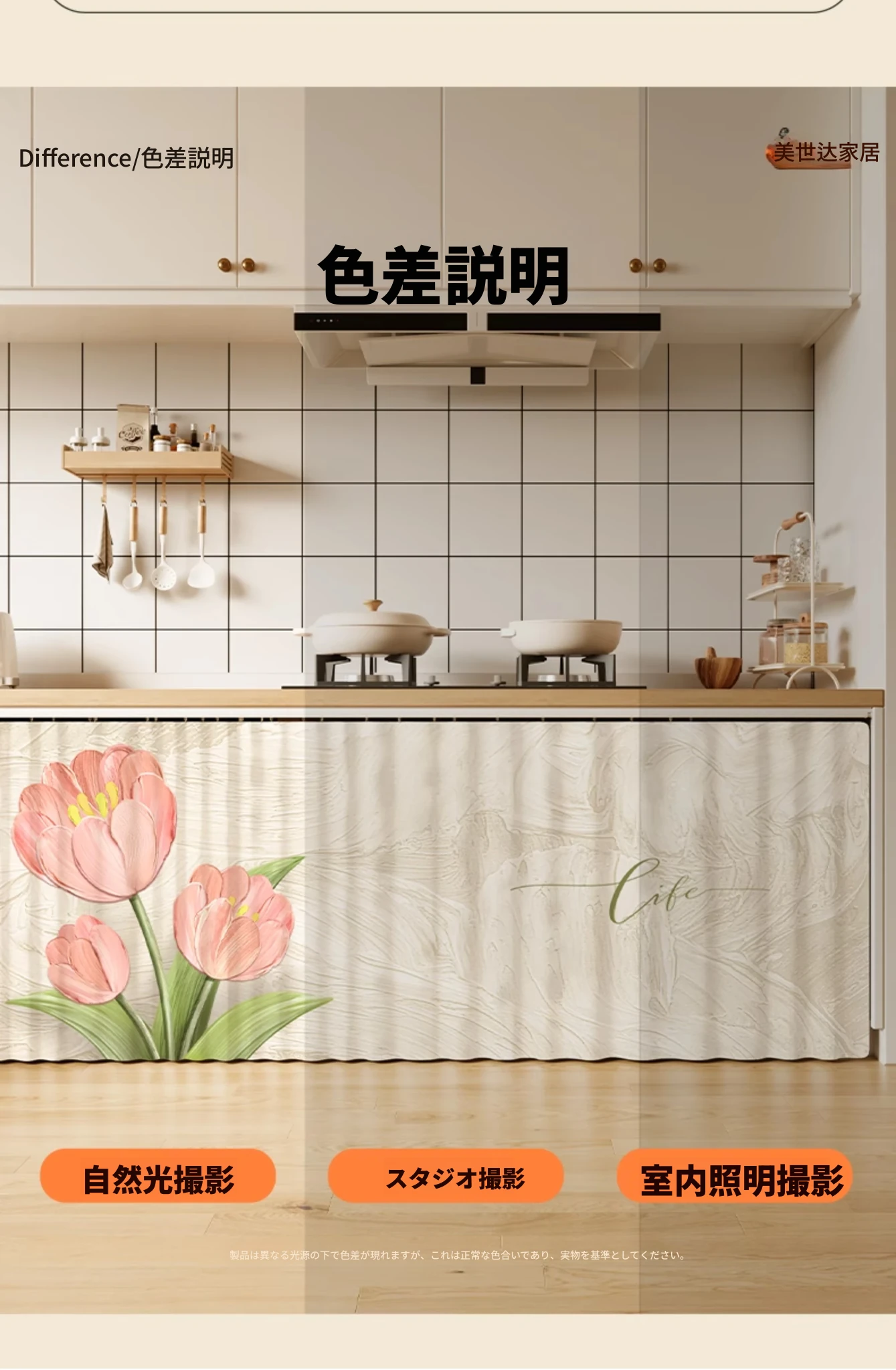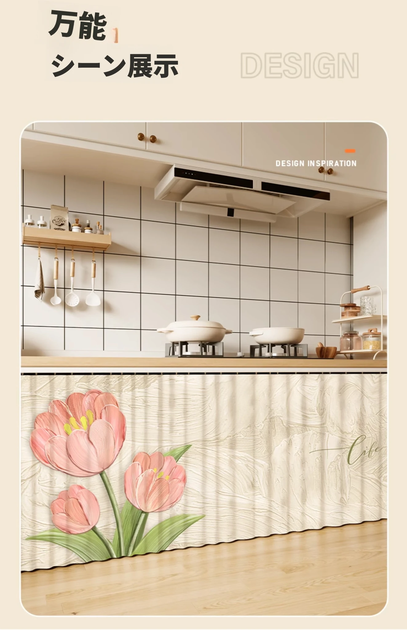 ミスターダキッチンキャビネット用カーテン - ネジ不要で取り付け簡単!防塵・防水で、シューズキャビネットや収納棚をスタイリッシュに隠します。美しいデザインで、散らかりを防ぎ、インテリアを引き立てます!