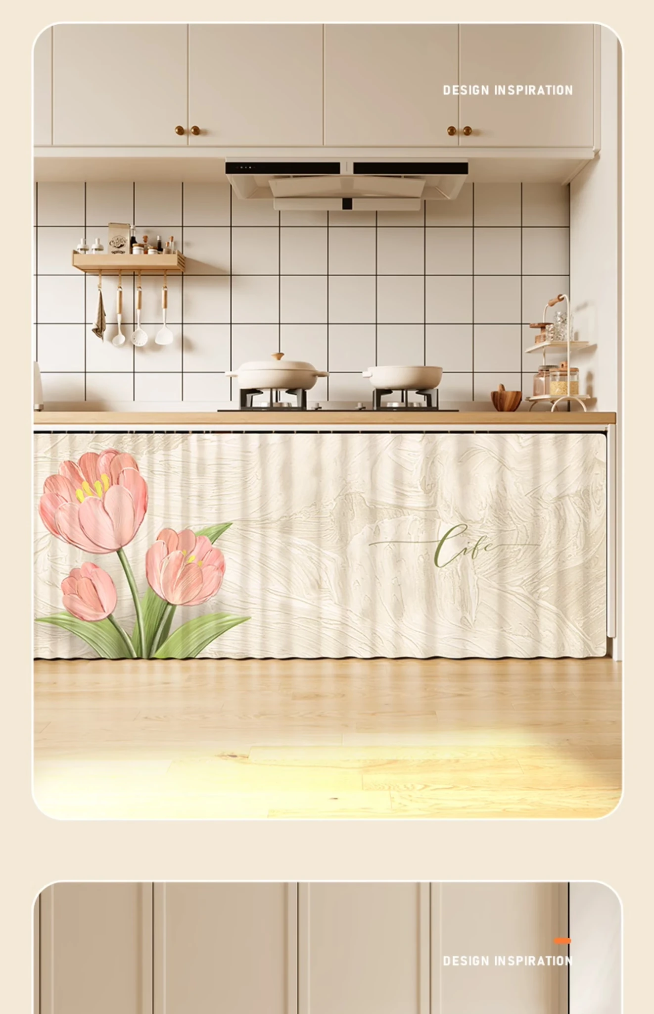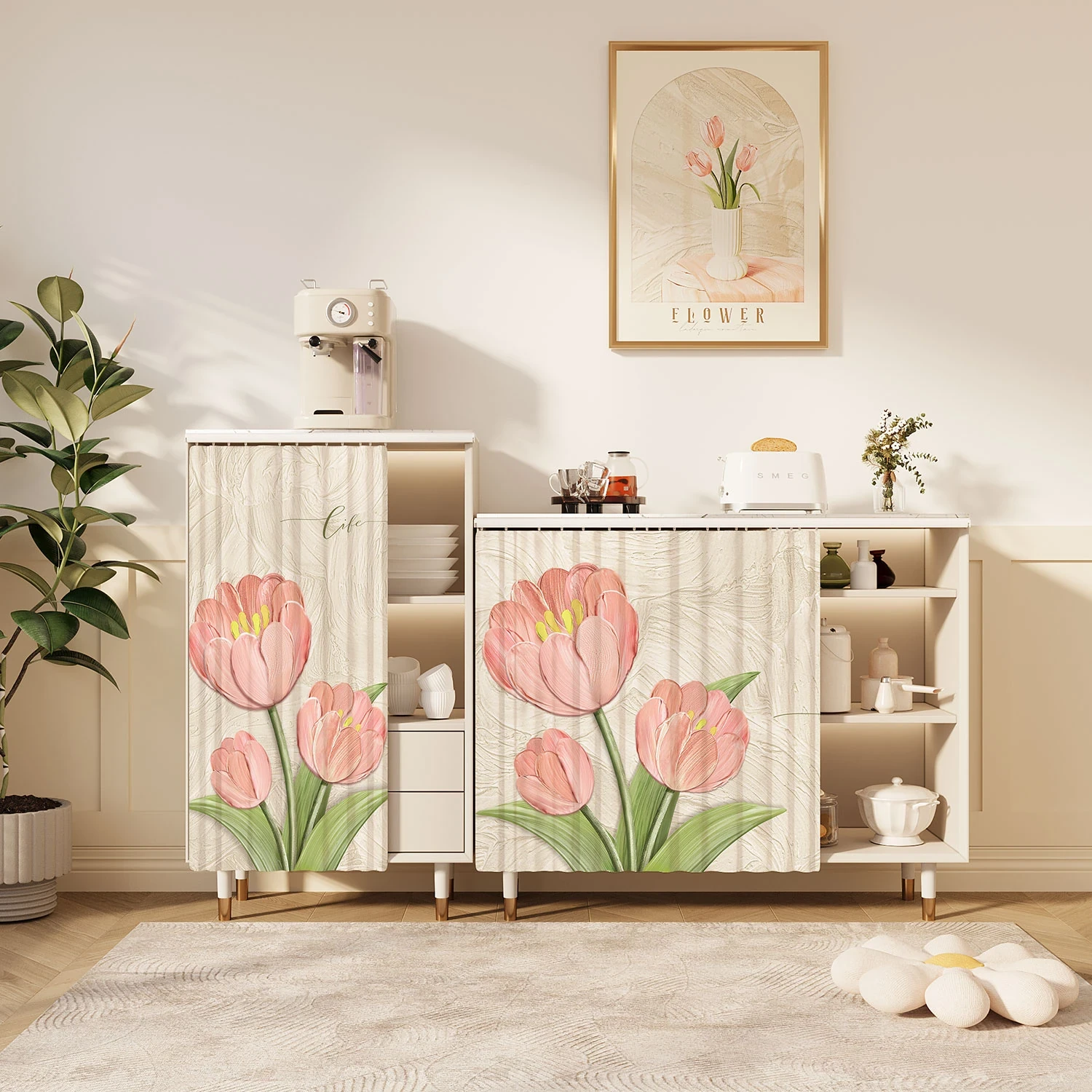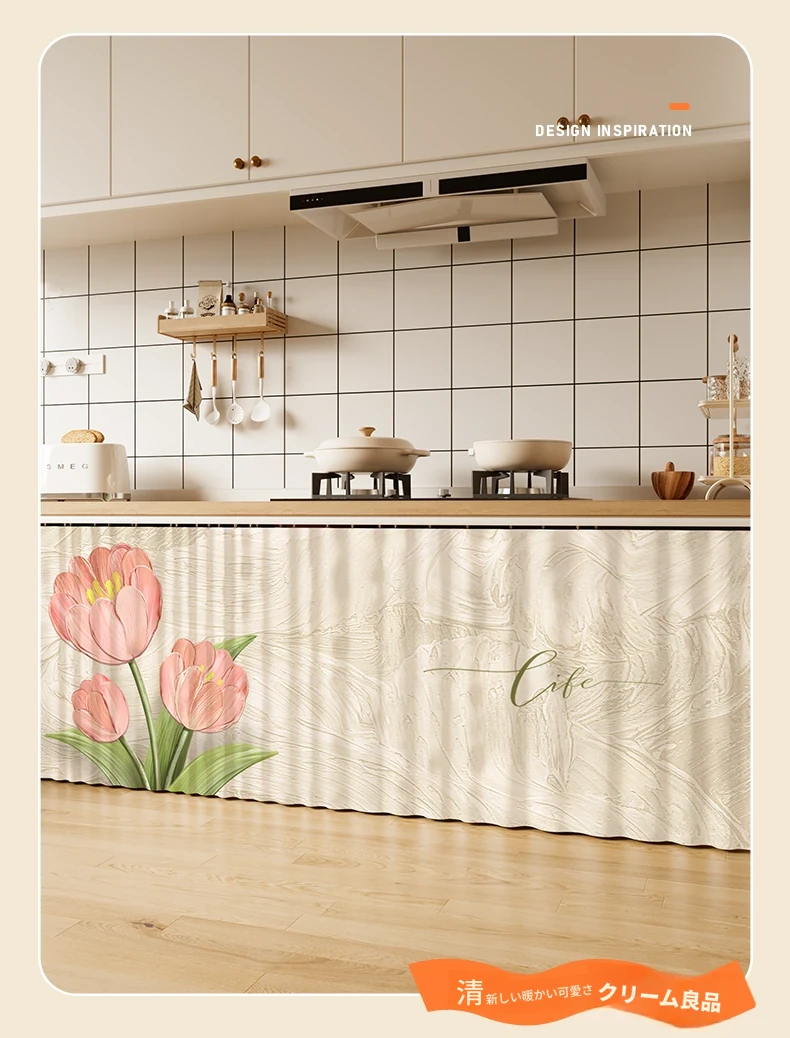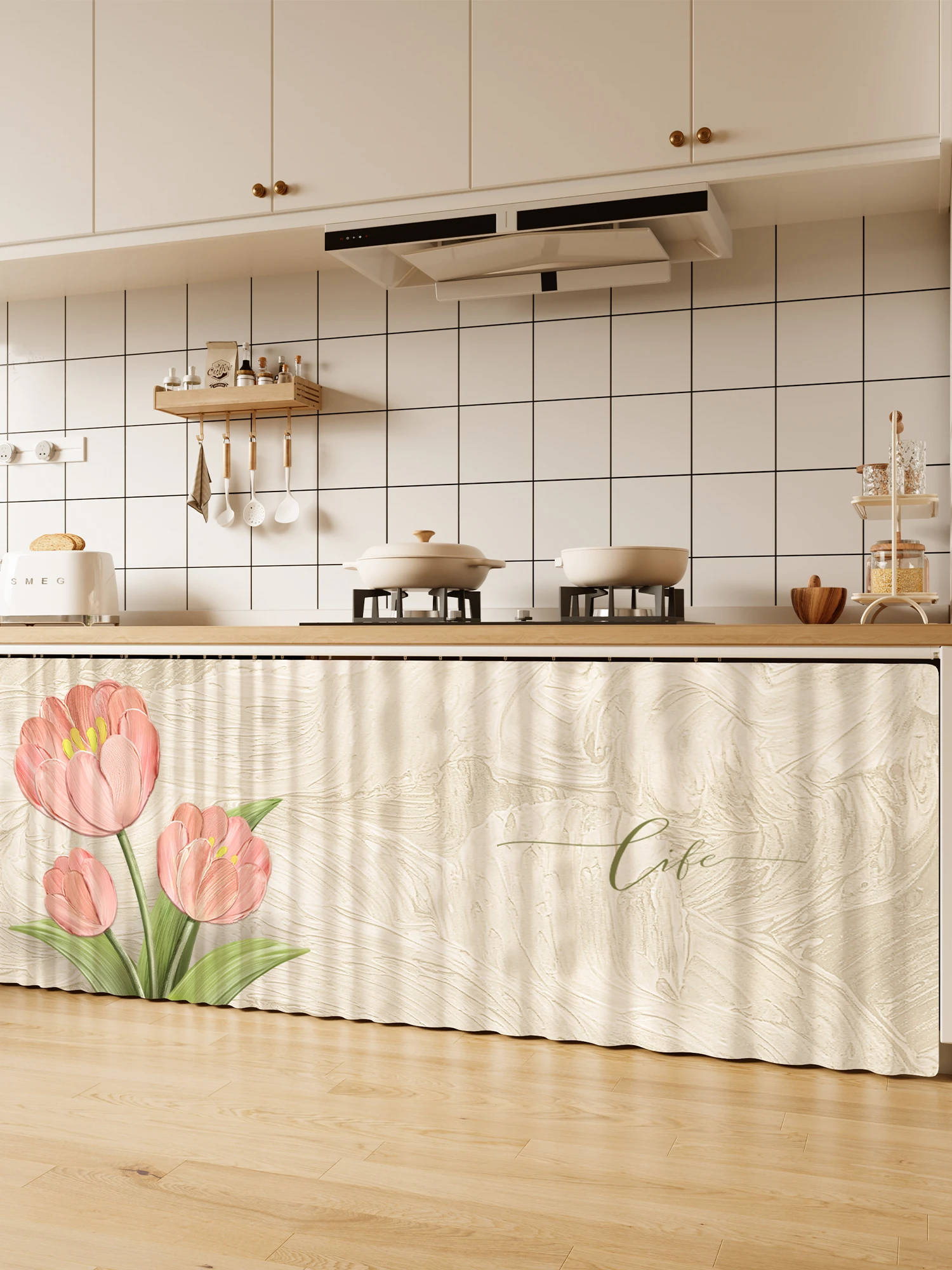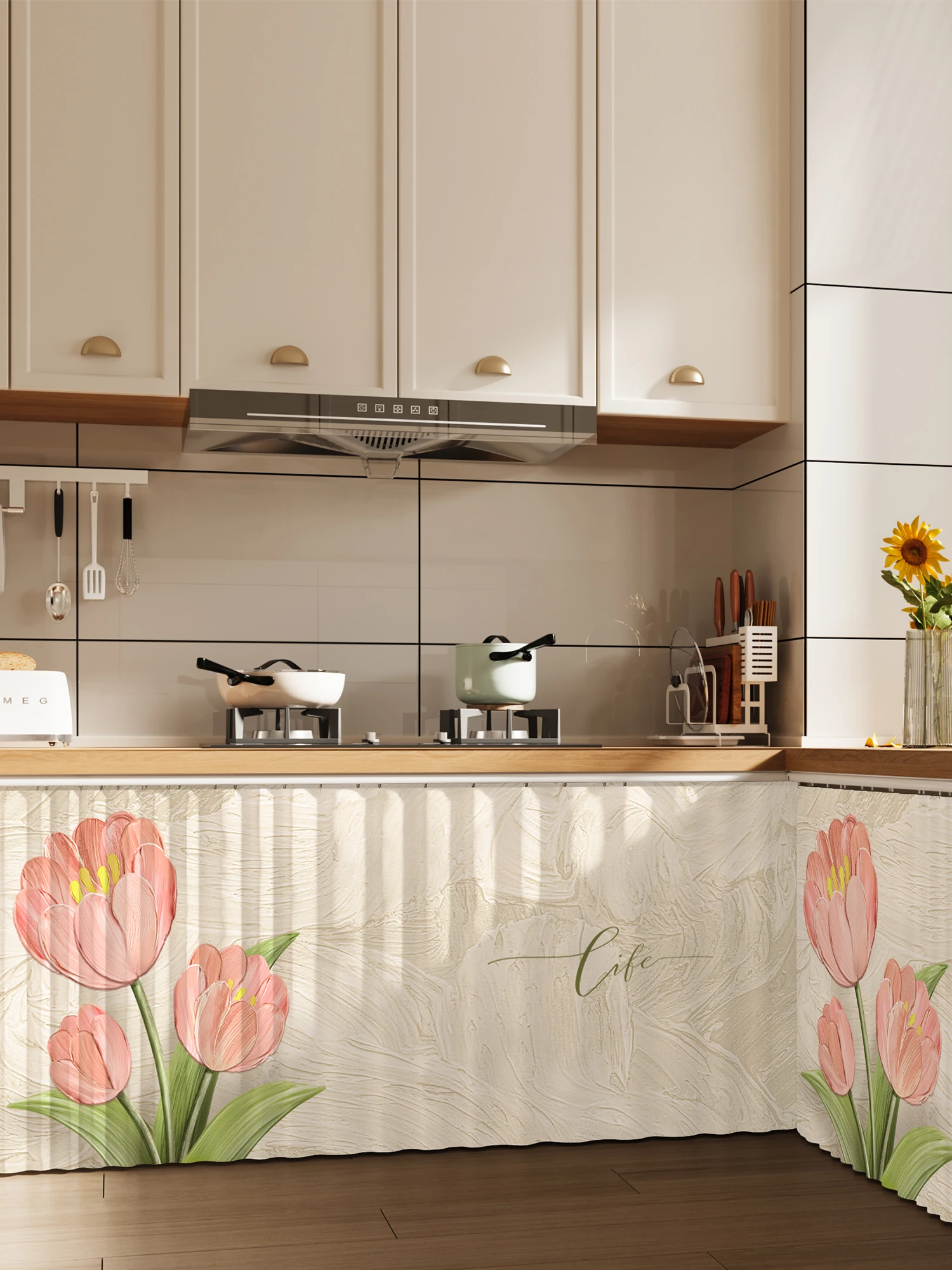 ミスターダキッチンキャビネット用カーテン - ネジ不要で取り付け簡単!防塵・防水で、シューズキャビネットや収納棚をスタイリッシュに隠します。美しいデザインで、散らかりを防ぎ、インテリアを引き立てます!