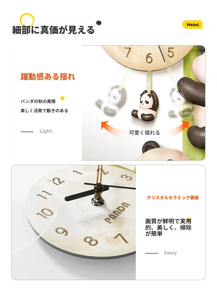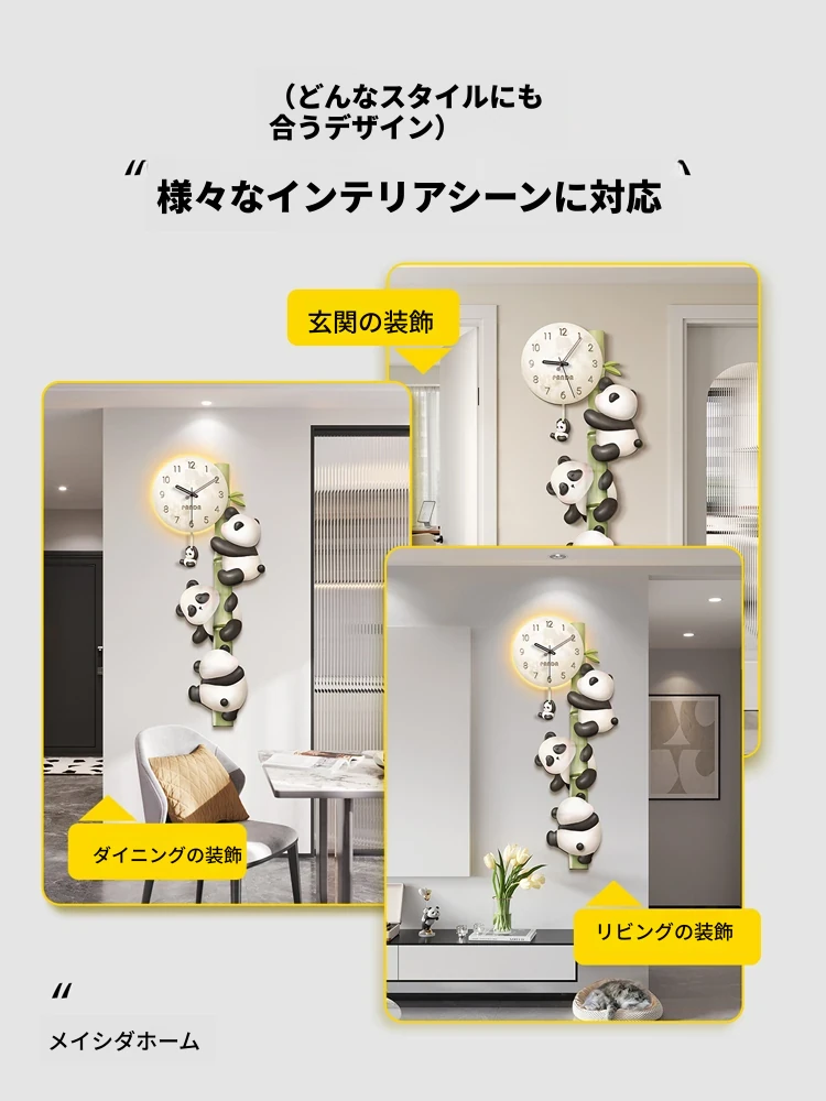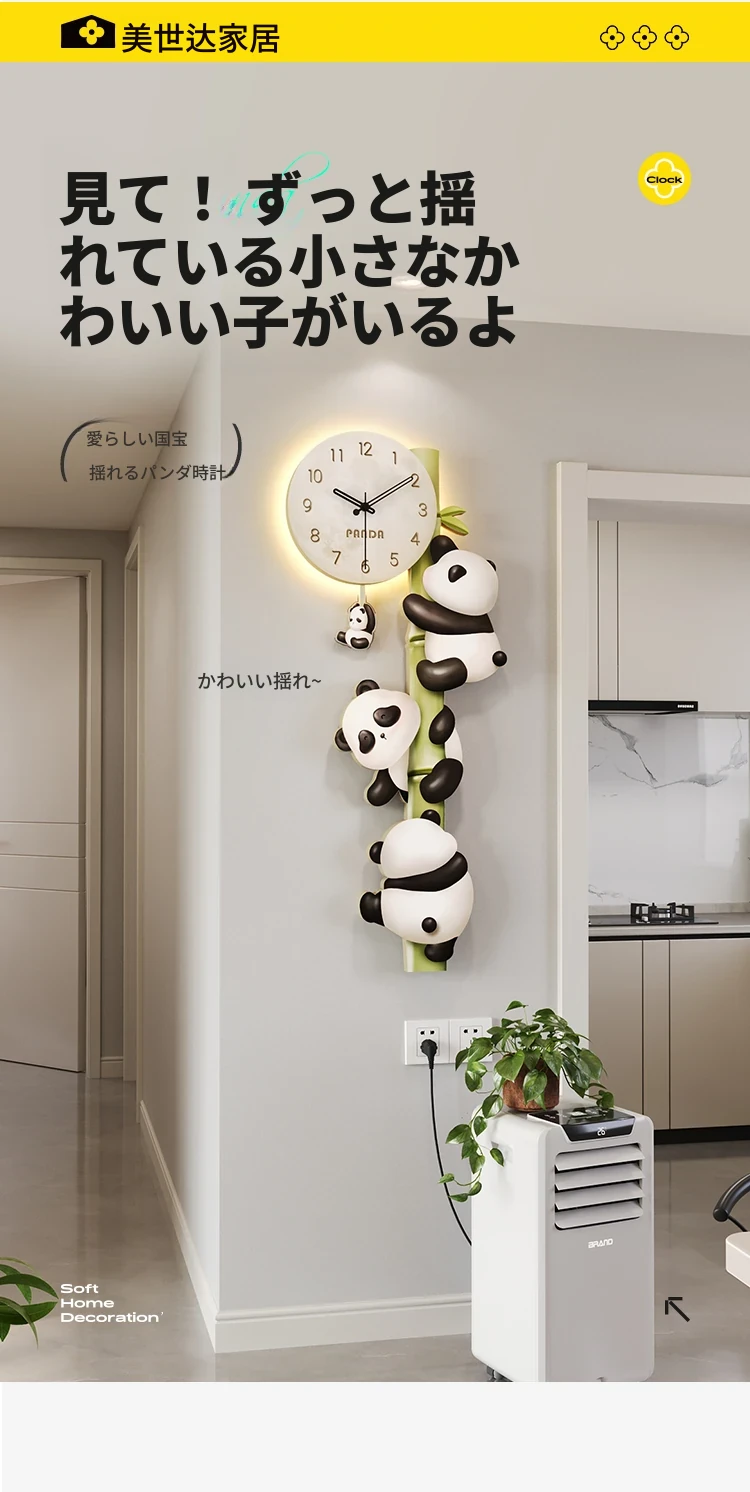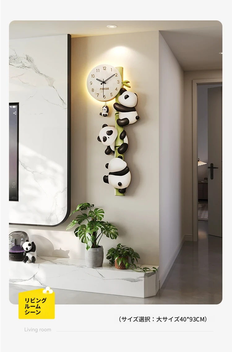 美世达パンダ掛け時計|おしゃれなリビング装飾|廊下や通路にぴったりの壁掛けアート|テレビ背景にも最適な時計!あなたの空間を華やかに彩ります。