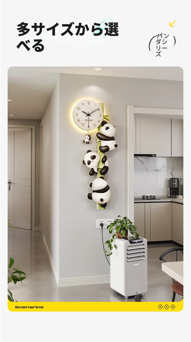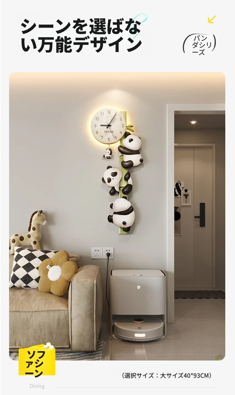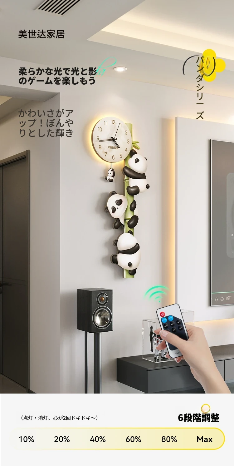 美世达パンダ掛け時計|おしゃれなリビング装飾|廊下や通路にぴったりの壁掛けアート|テレビ背景にも最適な時計!あなたの空間を華やかに彩ります。