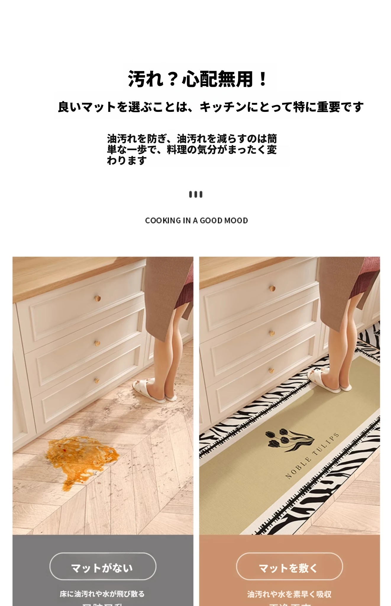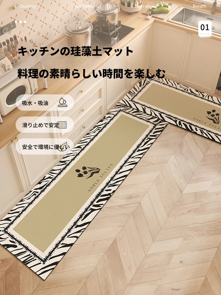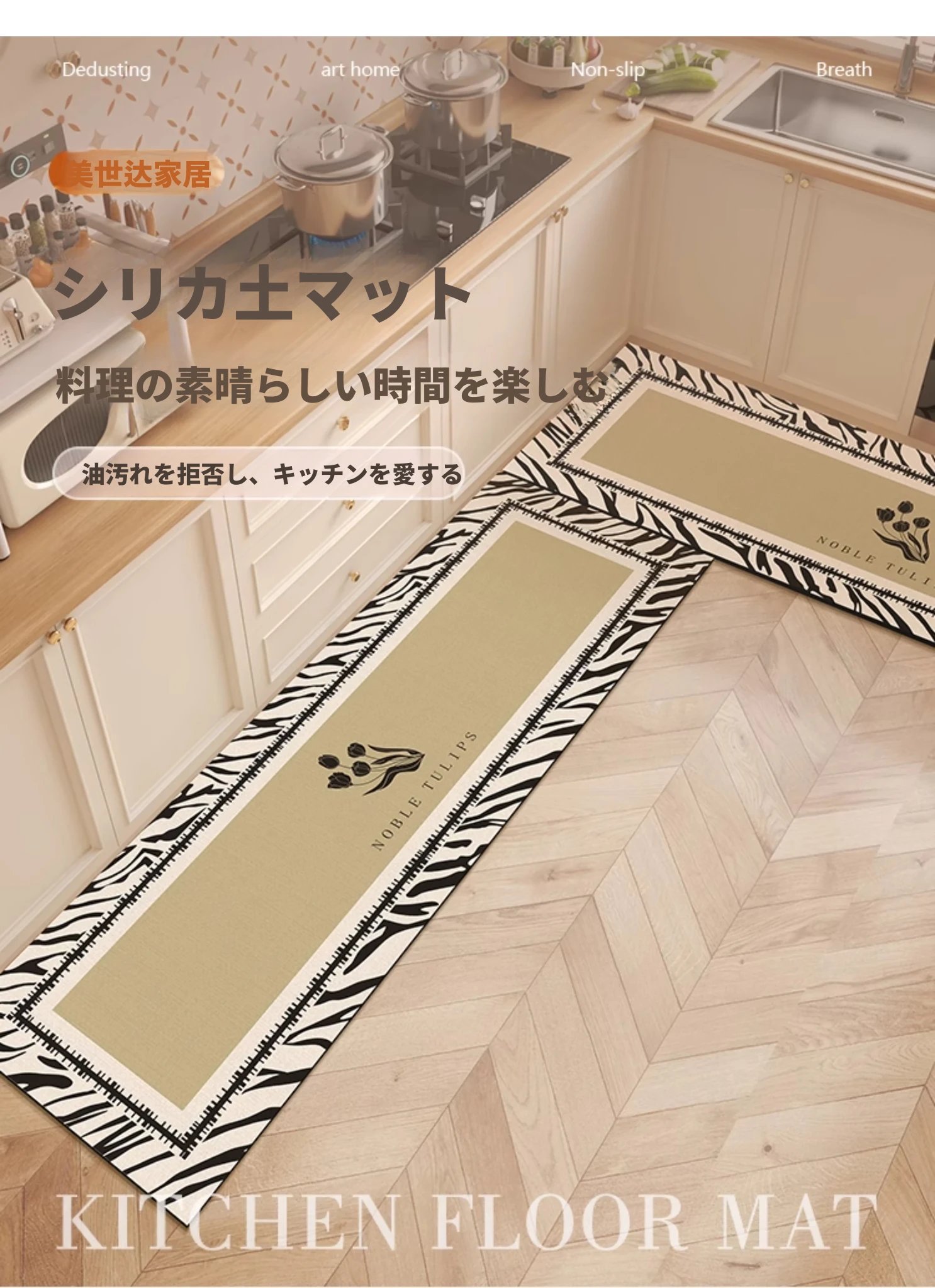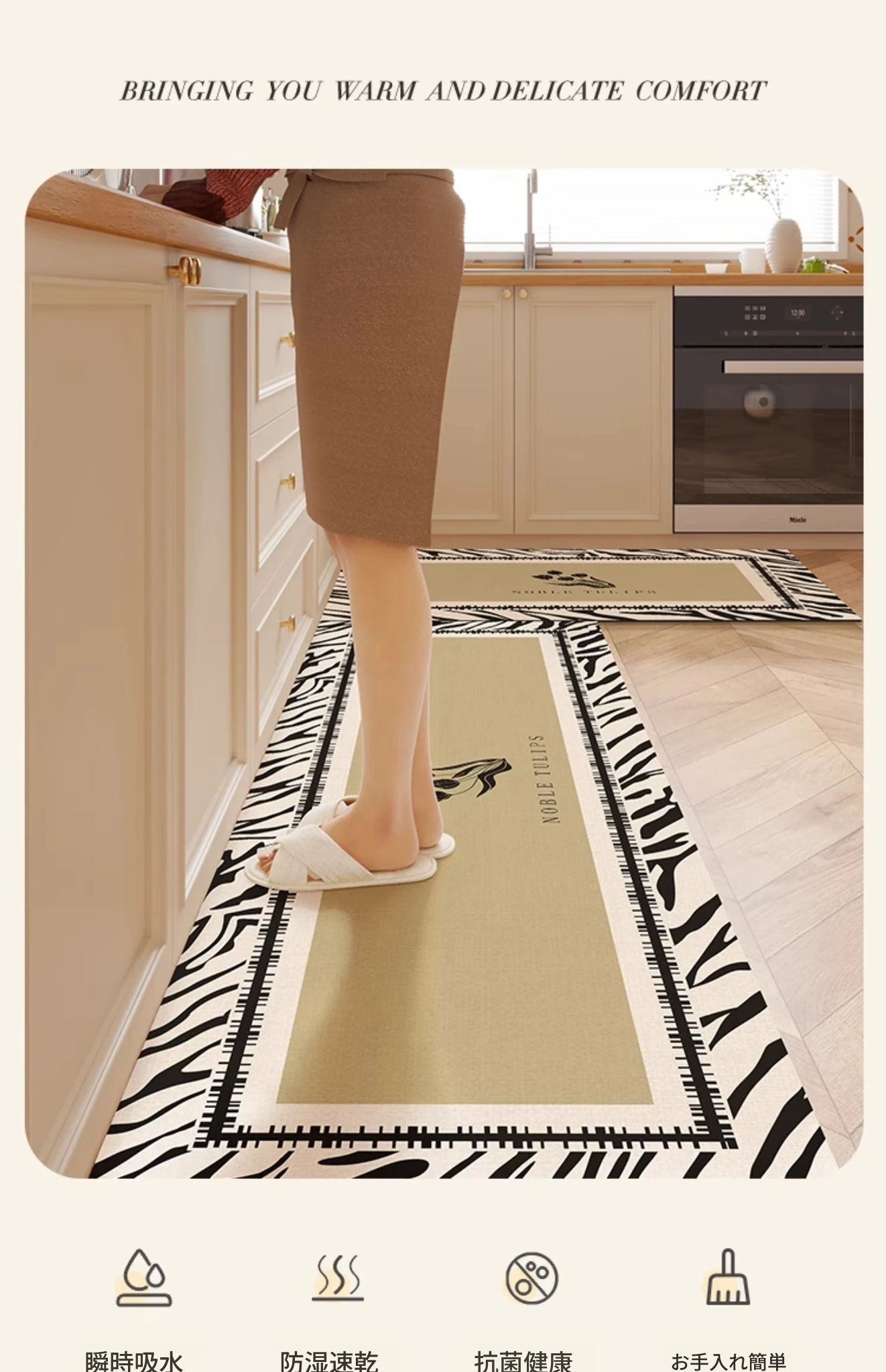 メイシーダ速乾キッチン防滑マット|吸水性抜群・汚れに強い・油汚れ防止!洗濯不要のソフトマットで、快適なキッチンライフを実現!